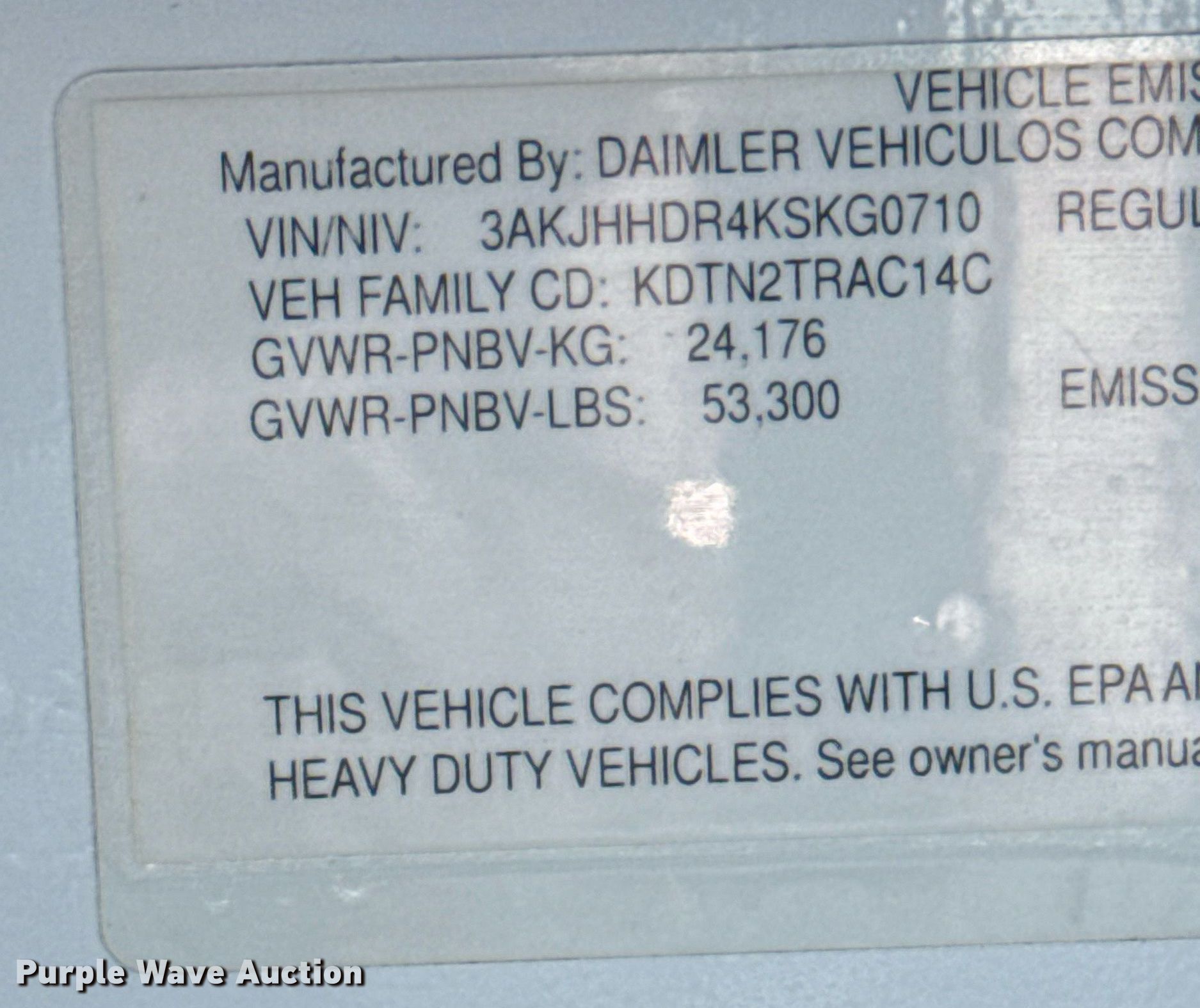 Take a look at this used 2019 Freightliner Cascadia semi truck being sold on December 31st, 2024 in the SOLD! December 31 Truck and Trailer Auction made by Freightliner. Take a look at all of the item information below or take a look at similar auctions for Trucks.