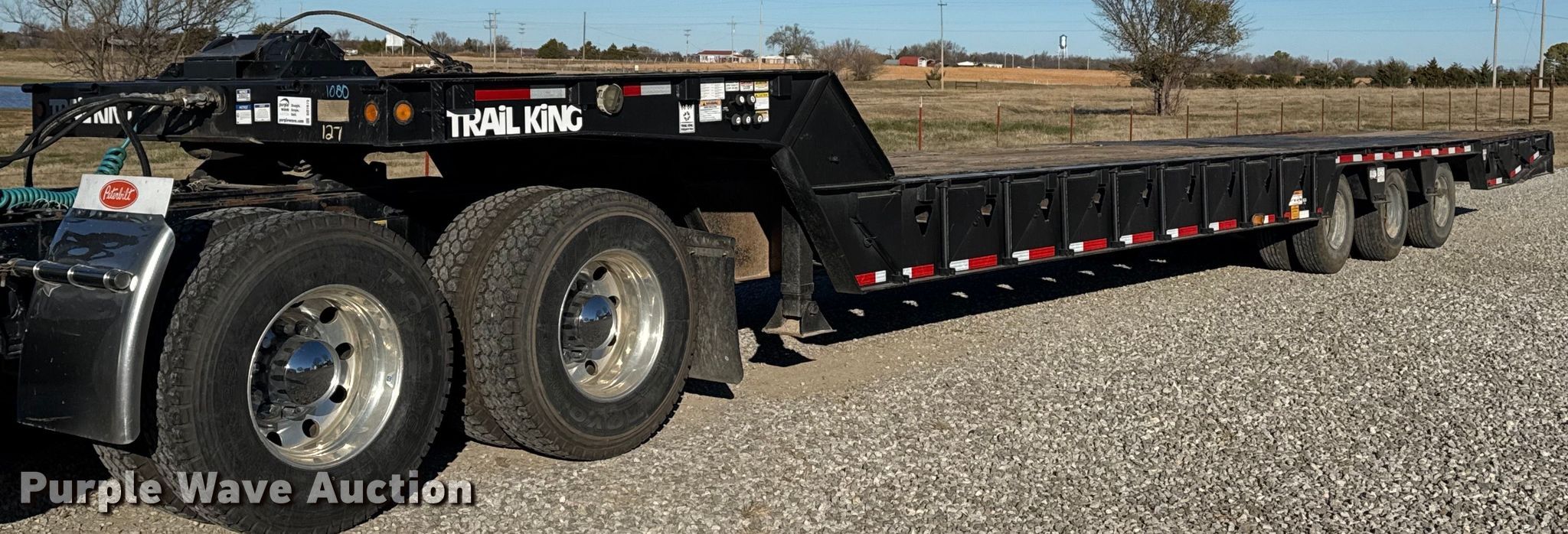 Purple Wave is selling a used Equip. Trailer in Oklahoma. This item is a 1999 Trail King TK110HT-483 hydraulic tail equipment trailer with the following: VIN: 1TKA04836XM126482