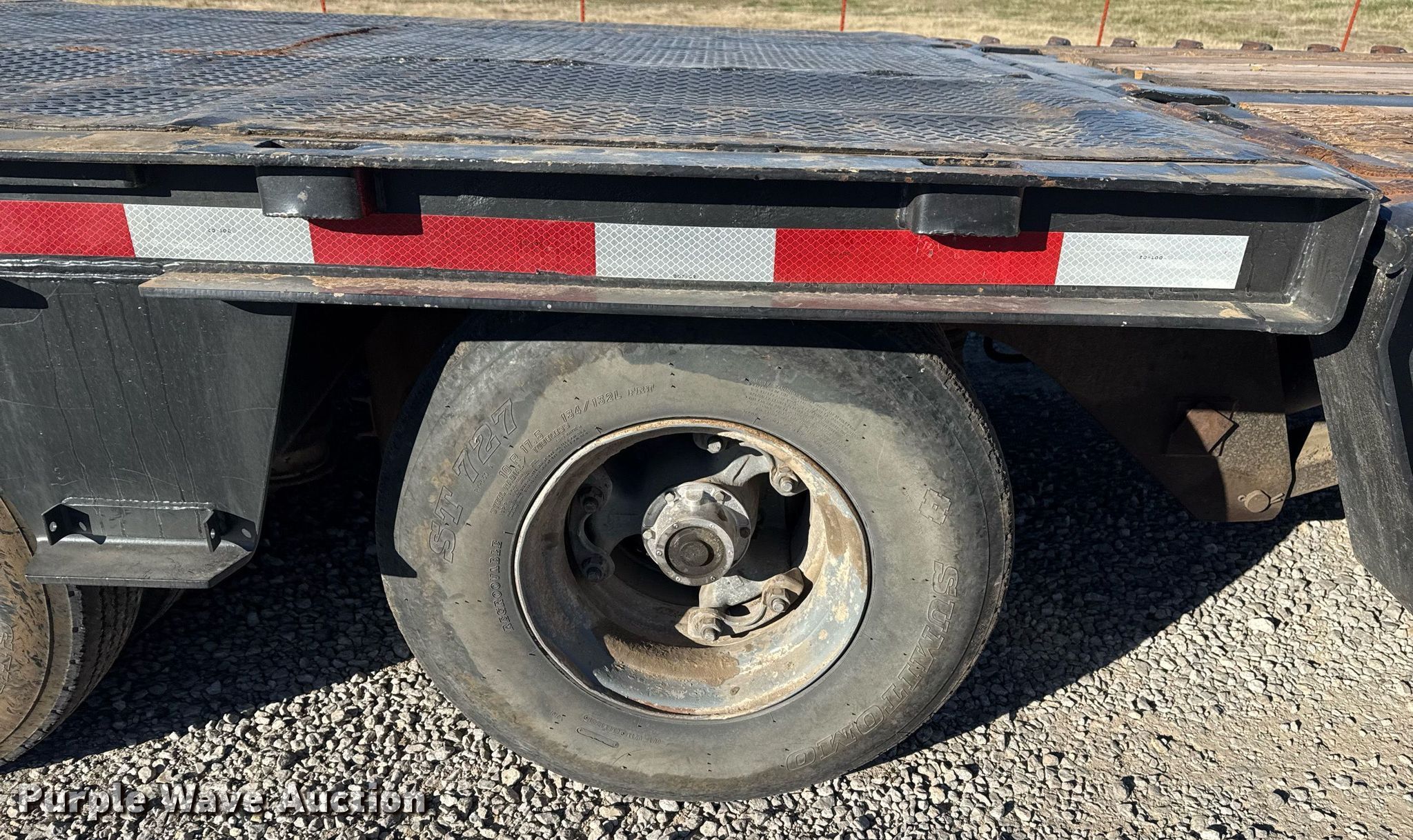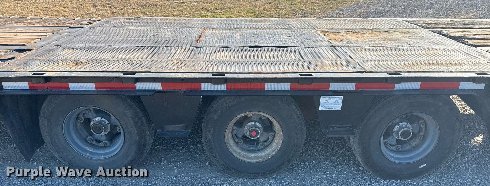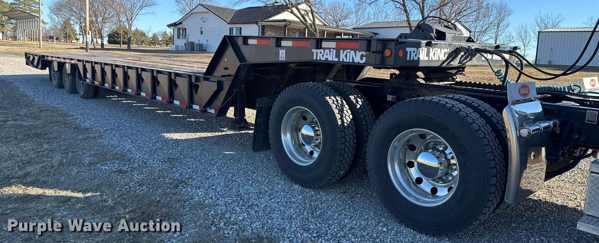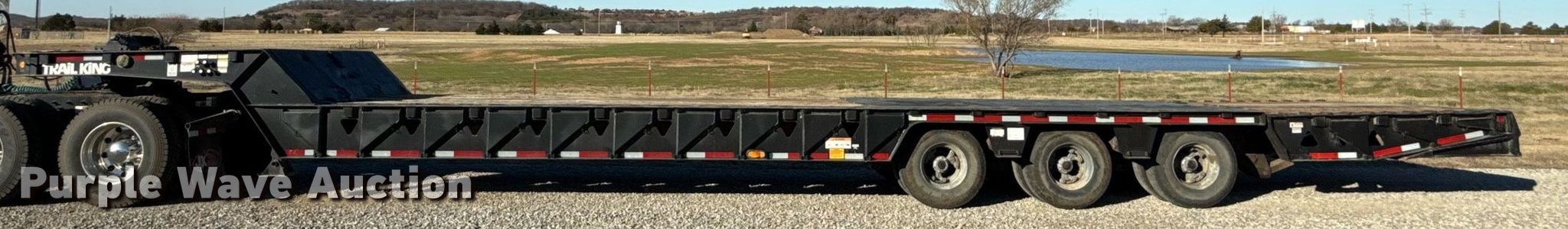 1999 Trail King TK110HT-483 hydraulic tail equipment trailer. VIN: 1TKA04836XM126482. Dimensions Overall: 48' L x 102" W, Deck: 30' L x 90" W, Top deck length: 8', Hydraulic tail length: 8'. Features Deck type: Steel, Wood, Outriggers: Swing-out Board size: 12", Winch Braden Winch Co.. Chassis Landing gear: Dual, Suspension: Air, Brakes: Air, Axles: Triple, GVWR: 129,860 lbs, GAWR: 17,640 lbs. Tires Steel wheels, Size: 10R17.5. Notes Semi not included. View repairs. Oklahoma title. Title distribution may be delayed up to 14 days from verification of funds. W & W Inc.. Wynona, OK 74084