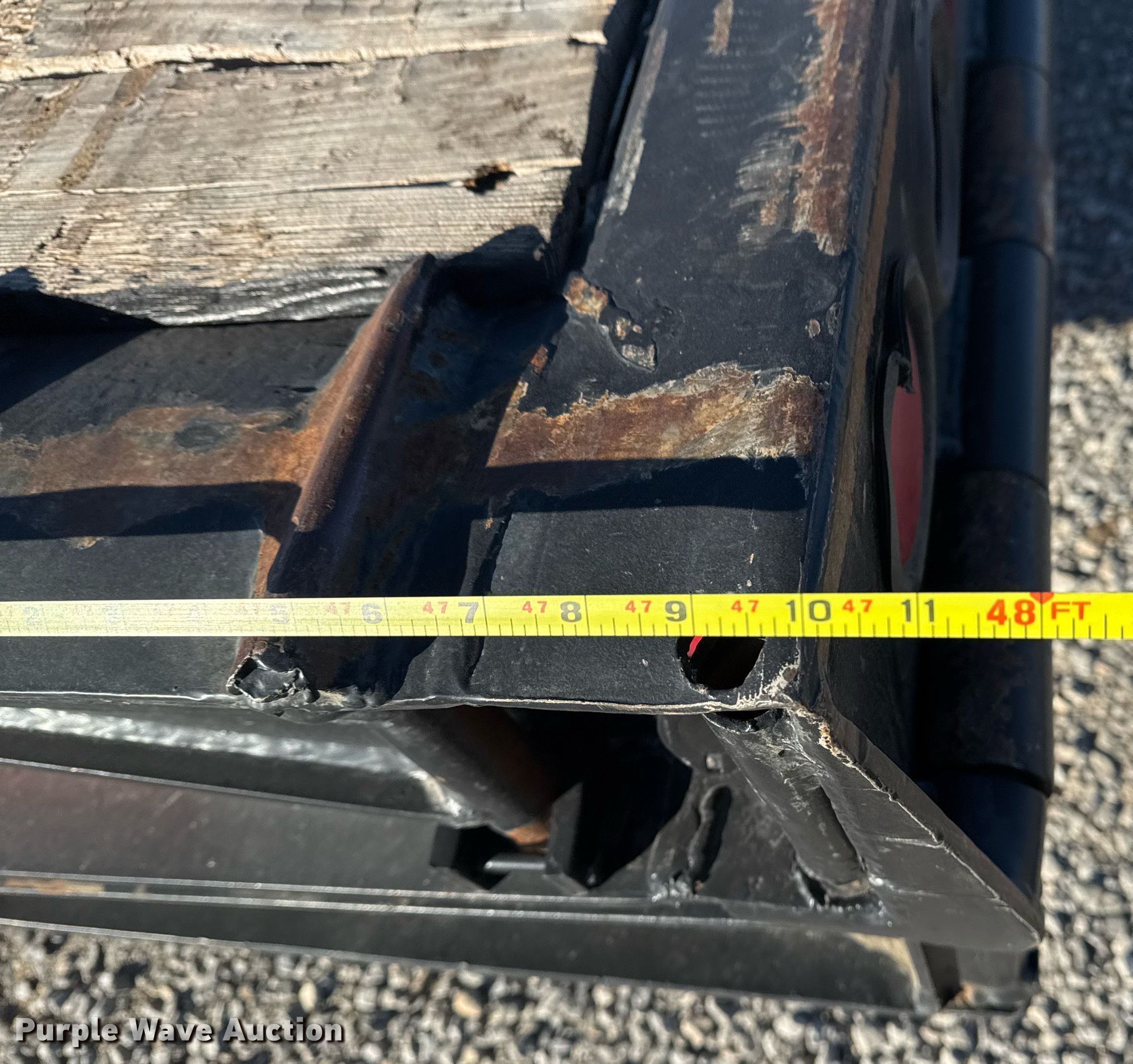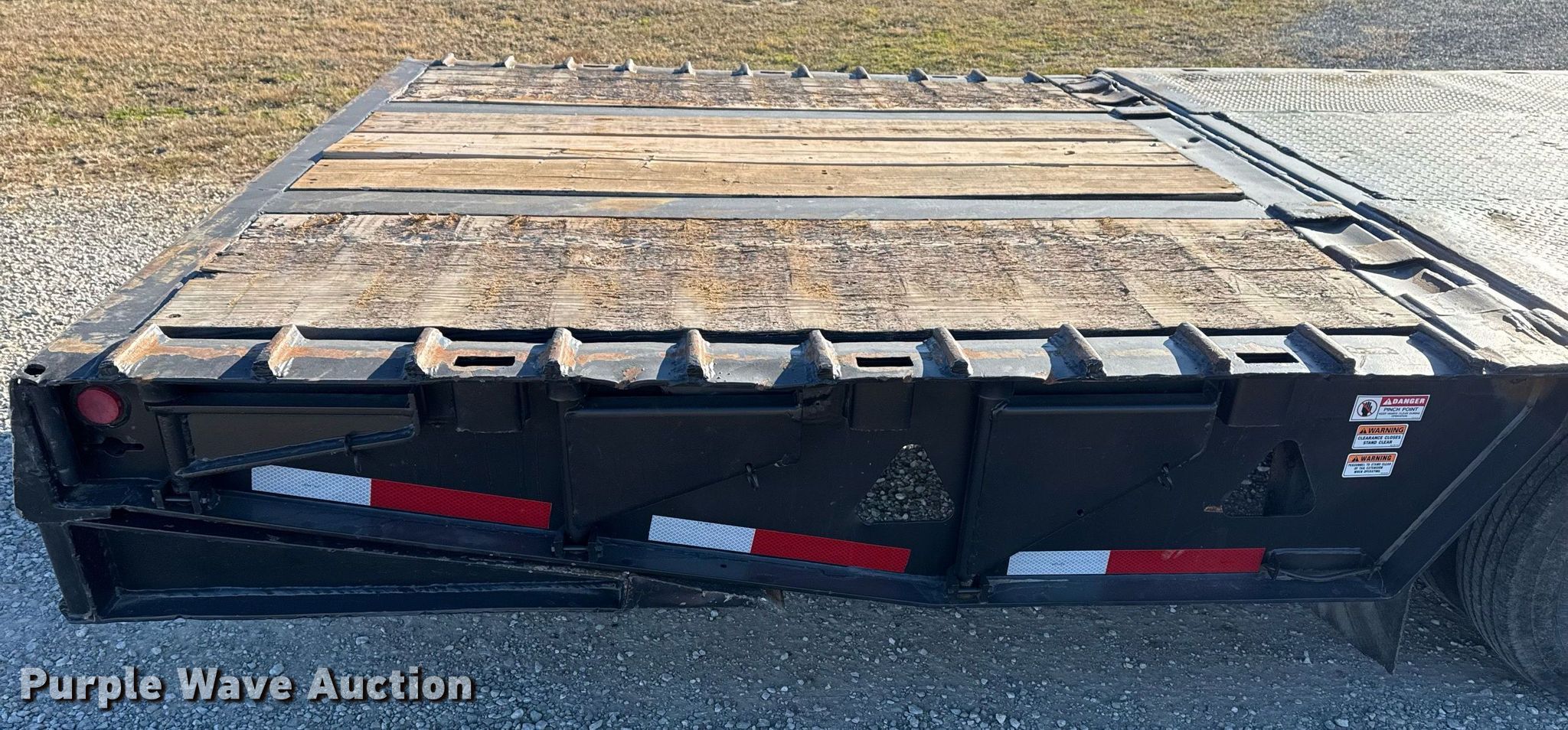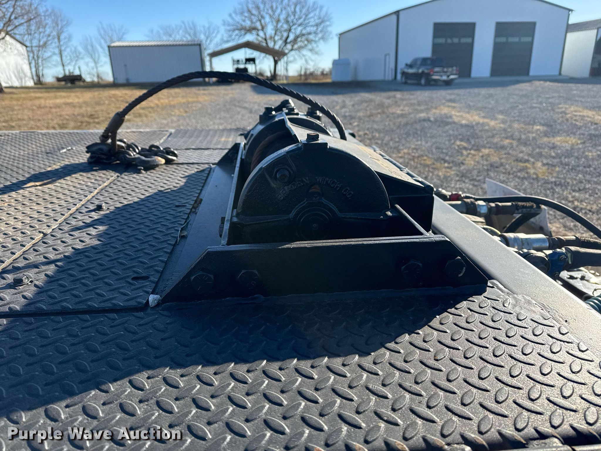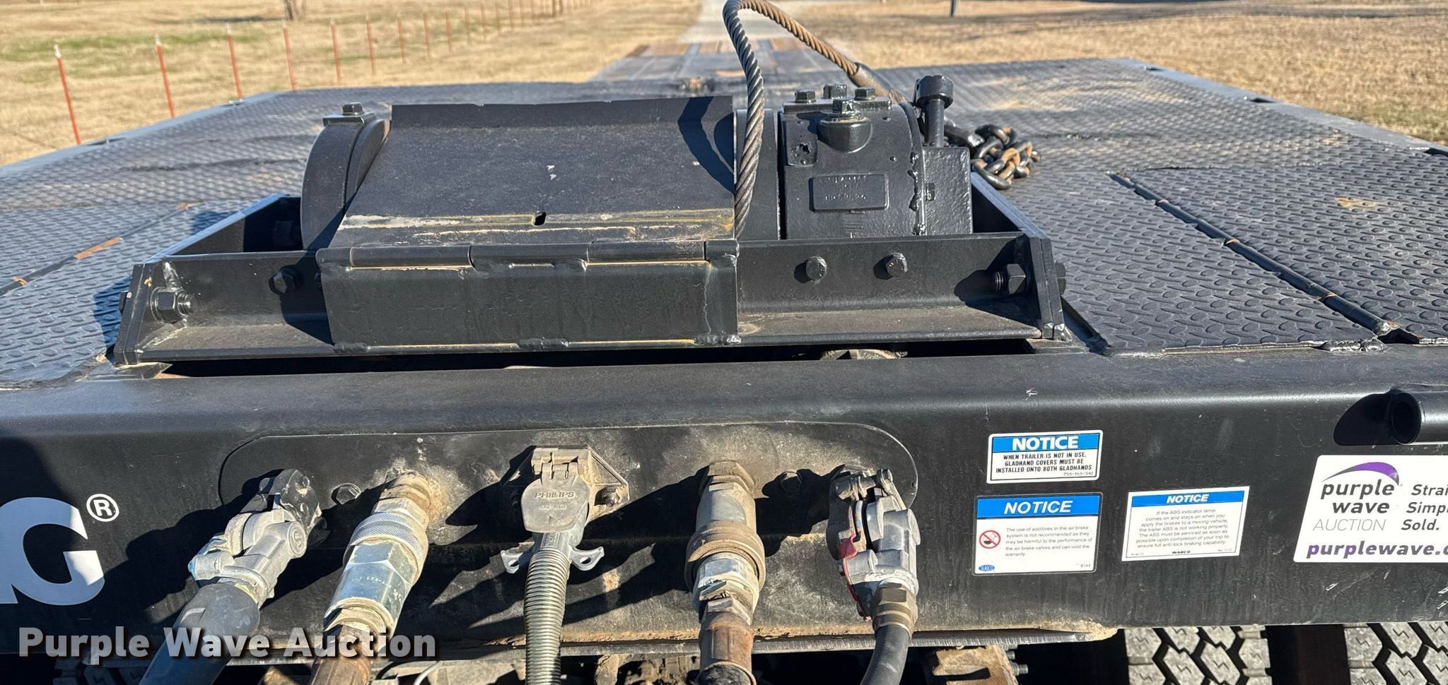 1999 Trail King TK110HT-483 hydraulic tail equipment trailer. VIN: 1TKA04836XM126482. Dimensions Overall: 48' L x 102" W, Deck: 30' L x 90" W, Top deck length: 8', Hydraulic tail length: 8'. Features Deck type: Steel, Wood, Outriggers: Swing-out Board size: 12", Winch Braden Winch Co.. Chassis Landing gear: Dual, Suspension: Air, Brakes: Air, Axles: Triple, GVWR: 129,860 lbs, GAWR: 17,640 lbs. Tires Steel wheels, Size: 10R17.5. Notes Semi not included. View repairs. Oklahoma title. Title distribution may be delayed up to 14 days from verification of funds. W & W Inc.. Wynona, OK 74084