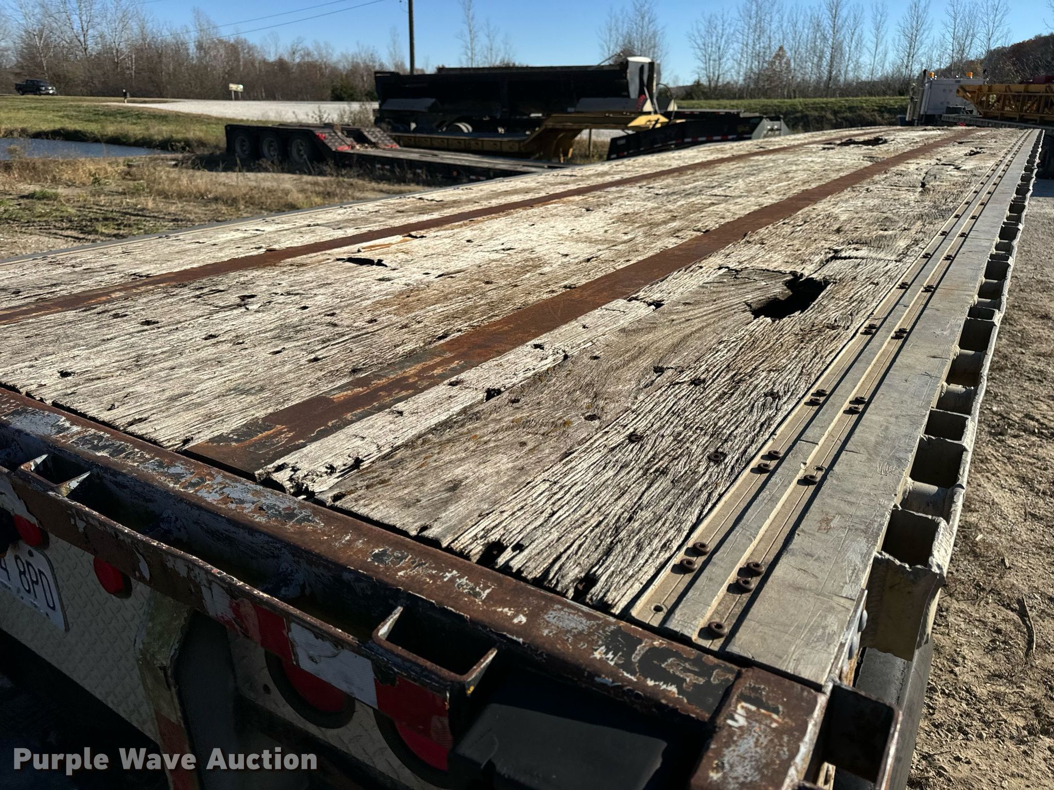 1998 Fontaine Ultra flatbed trailer. VIN: 13N148302W1578974. Dimensions Overall: 48' 2" L x 96" W, Deck: 47' 9" L x 92" W. Features Deck type: Wood. Chassis Landing gear: Dual, Suspension: Air, Brakes: Air, Axles: Spread. Tires Steel wheels, Size: 295/75R22.5. Missouri title. Title distribution may be delayed up to 14 days from verification of funds. Widel Inc.. Blackwater, MO 65322