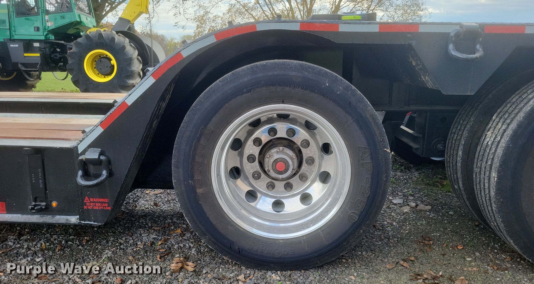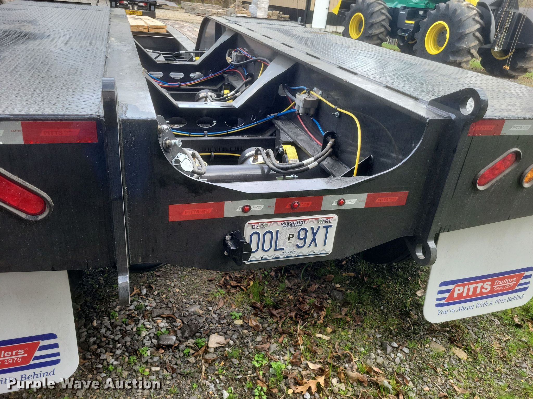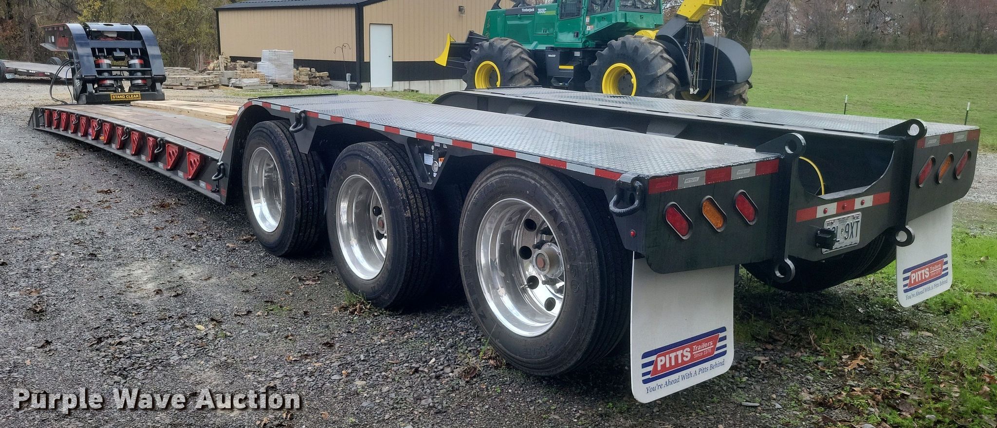 2023 Pitts Contender LB55-22DC lowboy equipment trailer. VIN: 5JYLB5535PPP25944. Dimensions Overall: 52' 5" L x 102" W, Deck: 26' 5" L x 126" W, Rear deck length: 14' 9", Deck height: 22". Features Deck type: Steel, Wood, Outriggers: Swing-out Board size: 12", Neck type: Detachable, Self-contained hydraulics, Hydraulic controls: Manual. Chassis Suspension: Air, Brakes: Air, Axles: Triple, GVWR: 132,500 lbs, GAWR: 20,000 lbs, Rear axle raises. Tires Aluminum wheels, Steel wheels, Size: 275/70R22.5 Outside dual aluminum wheels, Inside dual steel wheels. Notes (4) oak planks included 12' 6" L x 12" W. Missouri title. Title distribution may be delayed up to 14 days from verification of funds. C&S Timber LLC. Chaffee, MO 63740