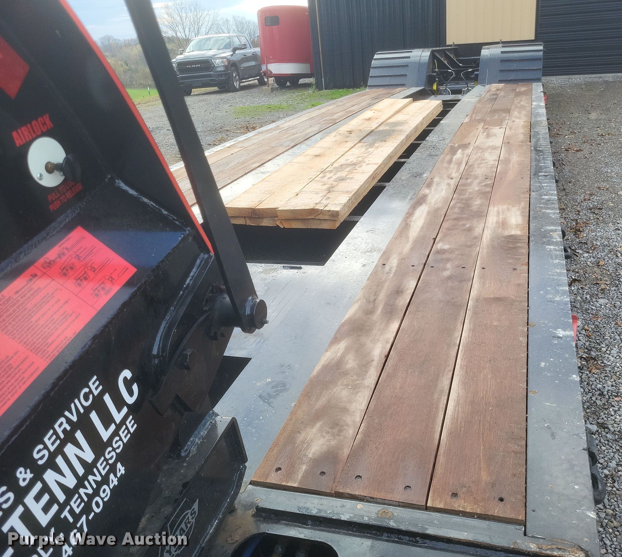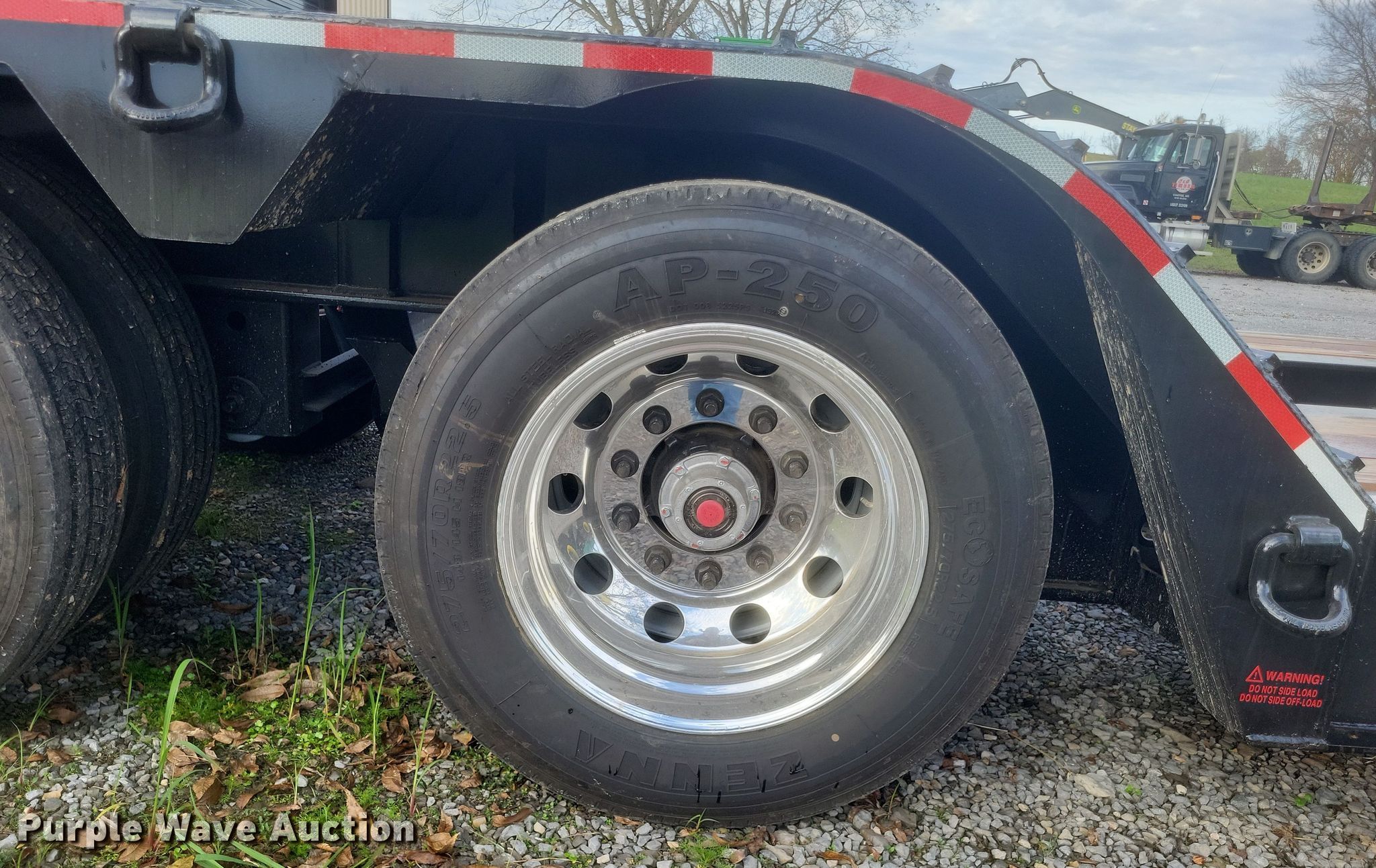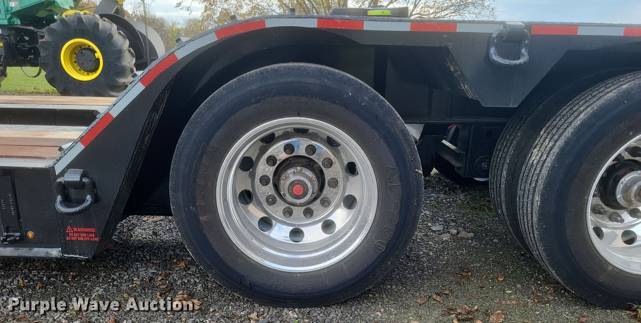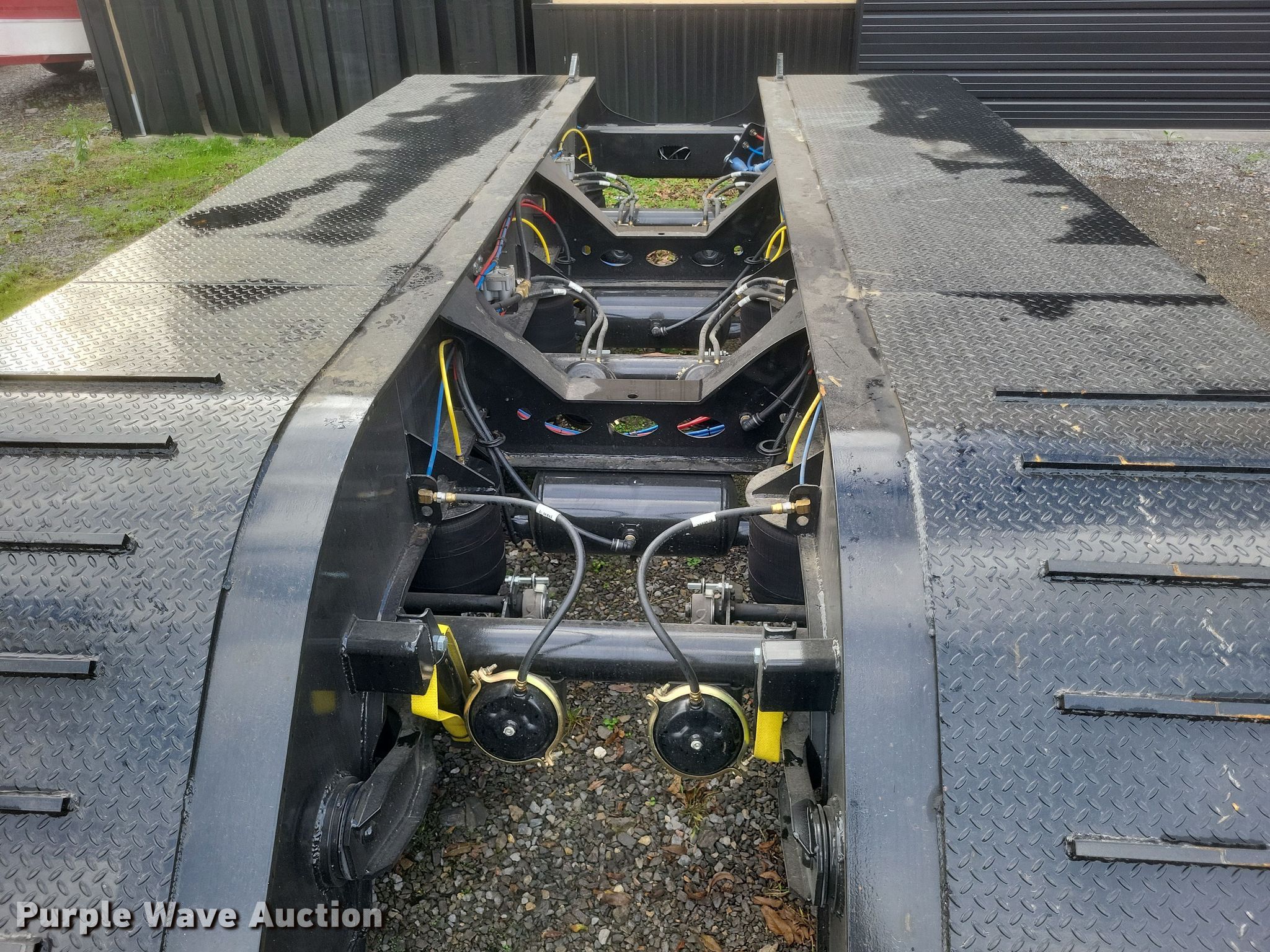2023 Pitts Contender LB55-22DC lowboy equipment trailer. VIN: 5JYLB5535PPP25944. Dimensions Overall: 52' 5" L x 102" W, Deck: 26' 5" L x 126" W, Rear deck length: 14' 9", Deck height: 22". Features Deck type: Steel, Wood, Outriggers: Swing-out Board size: 12", Neck type: Detachable, Self-contained hydraulics, Hydraulic controls: Manual. Chassis Suspension: Air, Brakes: Air, Axles: Triple, GVWR: 132,500 lbs, GAWR: 20,000 lbs, Rear axle raises. Tires Aluminum wheels, Steel wheels, Size: 275/70R22.5 Outside dual aluminum wheels, Inside dual steel wheels. Notes (4) oak planks included 12' 6" L x 12" W. Missouri title. Title distribution may be delayed up to 14 days from verification of funds. C&S Timber LLC. Chaffee, MO 63740