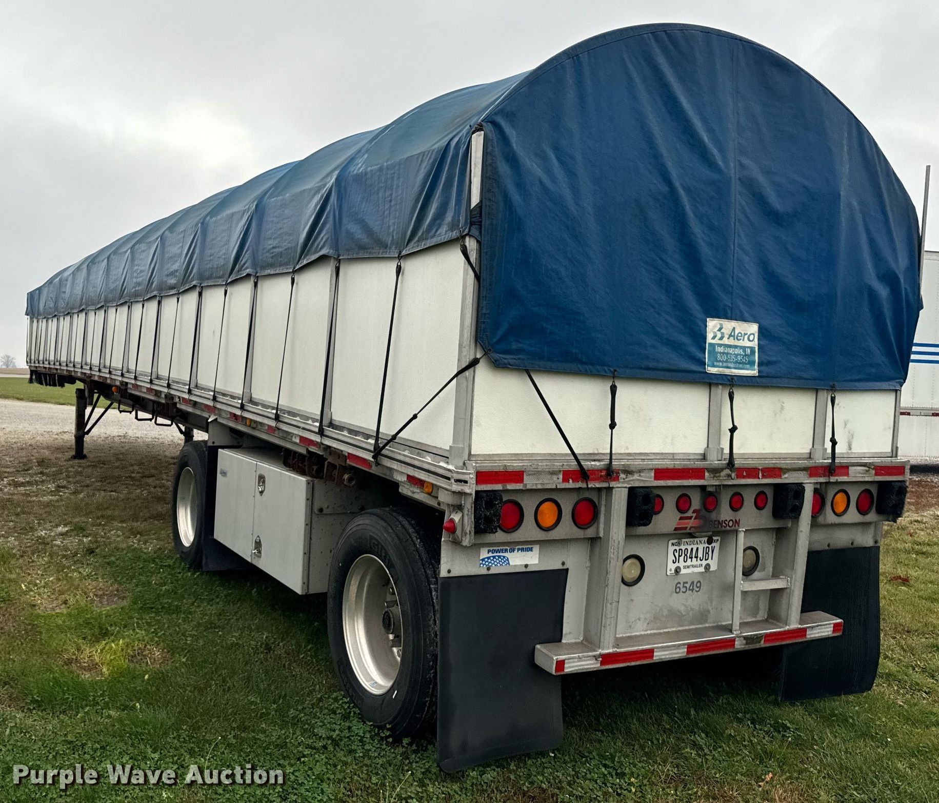 1998 Benson AF4810250 flatbed trailer. VIN: 1NUFT28ZXWMNA0816, Unit #: 6549. Dimensions Overall: 48' L x 102" W, Deck: 98" W, Deck height: 58". Features Deck type: Aluminum, Wood. Chassis Landing gear: Dual, Suspension: Air, Brakes: Air, Axles: Spread, GVWR: 80,000 lbs, GAWR: 20,000 lbs. Features Removable sides, Tarp cover. Indiana title. Title distribution may be delayed up to 30 days from verification of funds. Wilbert Funeral Services. Lynn, IN 47355