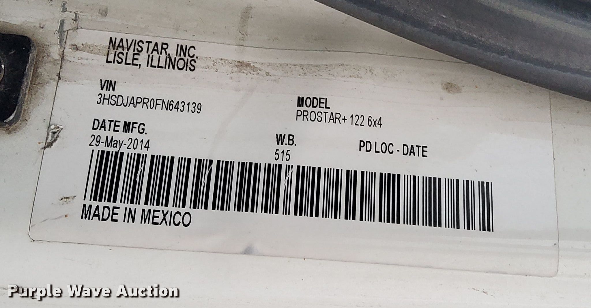 Purple Wave is selling a used Truck Tractor in Indiana. This item is a 2015 International Prostar semi truck with the following: Miles: 841,215 on odometer, Hours: 17,461 on meter, VIN: 3HSDJAPR0FN643139, Unit #: 2940