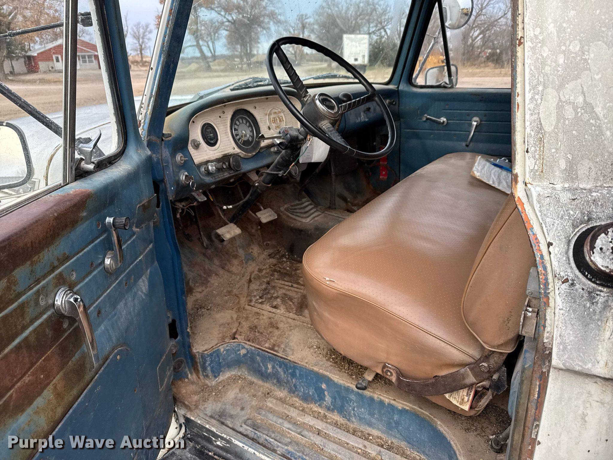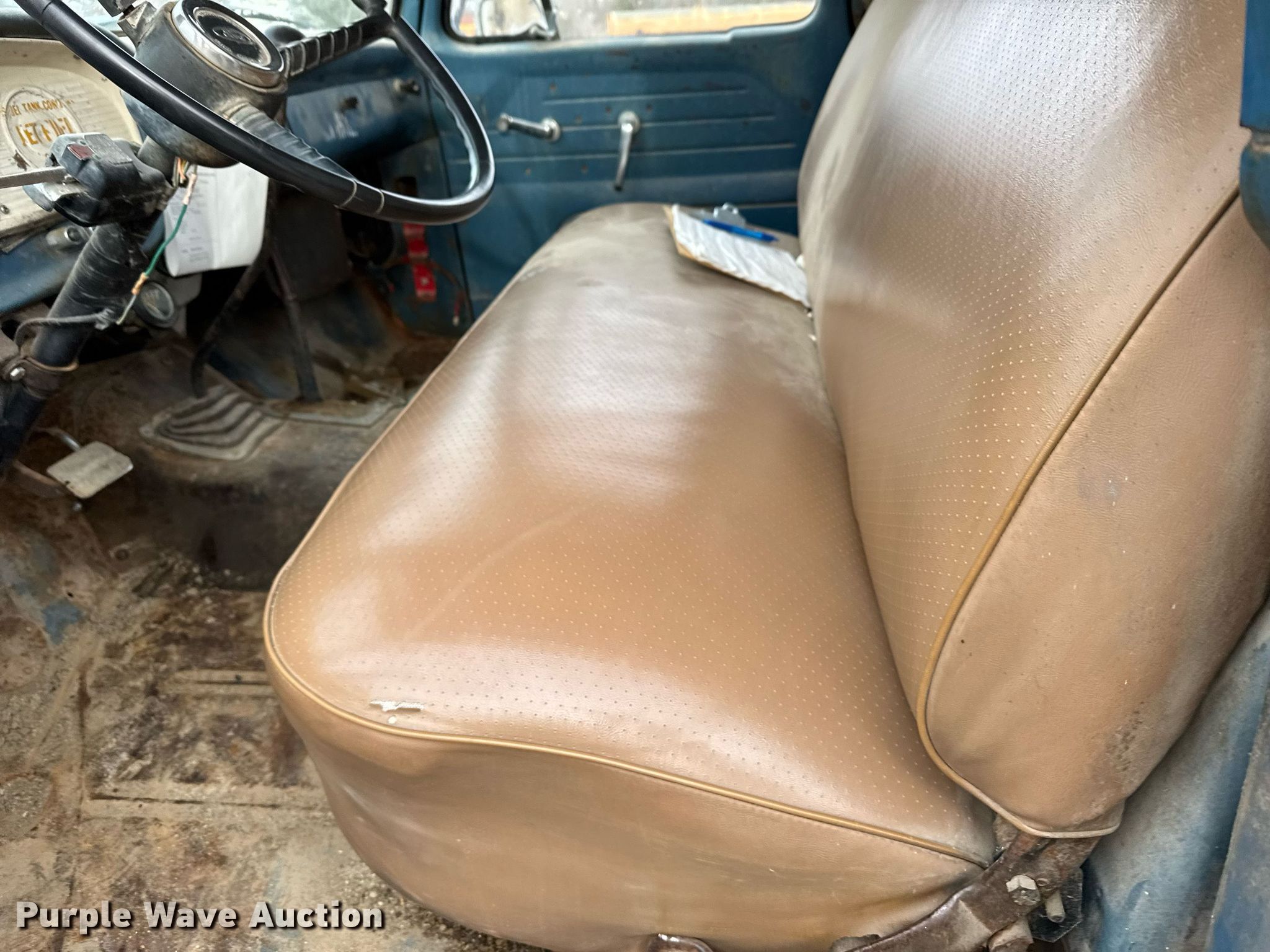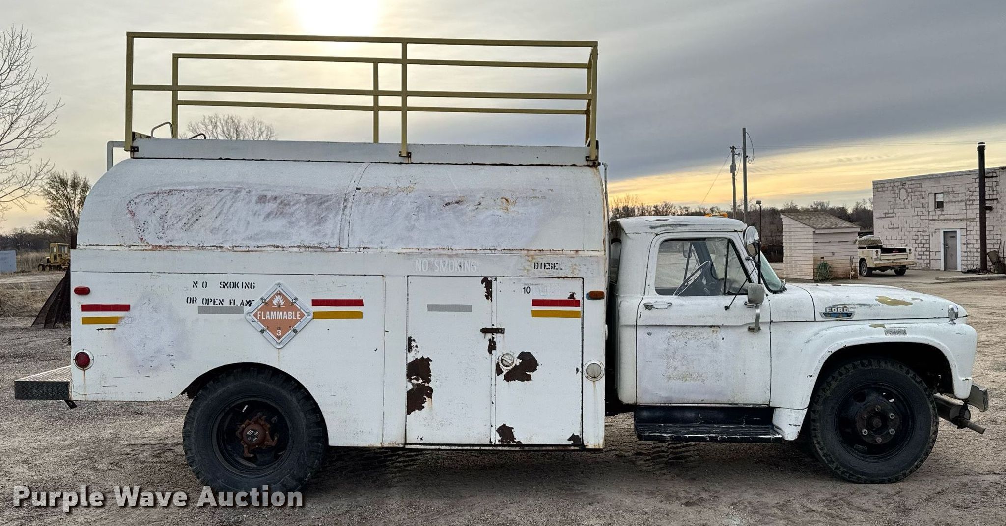 1964 Ford F600 fuel truck. Miles: 41,302 on odometer, Hours: 5,585 on meter, VIN: F60AK545259. Engine Ford, Cylinders: 8, Fuel type: Gas. Transmission Manual, Speed: 4. Chassis Axles: Single, Suspension: Spring, Brakes: Hydraulic. Interior Heat. Features Bed / tank 12' L x 89" W, Compartments: 2, Hose reels: 1, Nozzle, Metered pumps: 1 Make: Neptune.. Kansas antique title. Title distribution may be delayed up to 14 days from verification of funds. Concordia, KS 66901