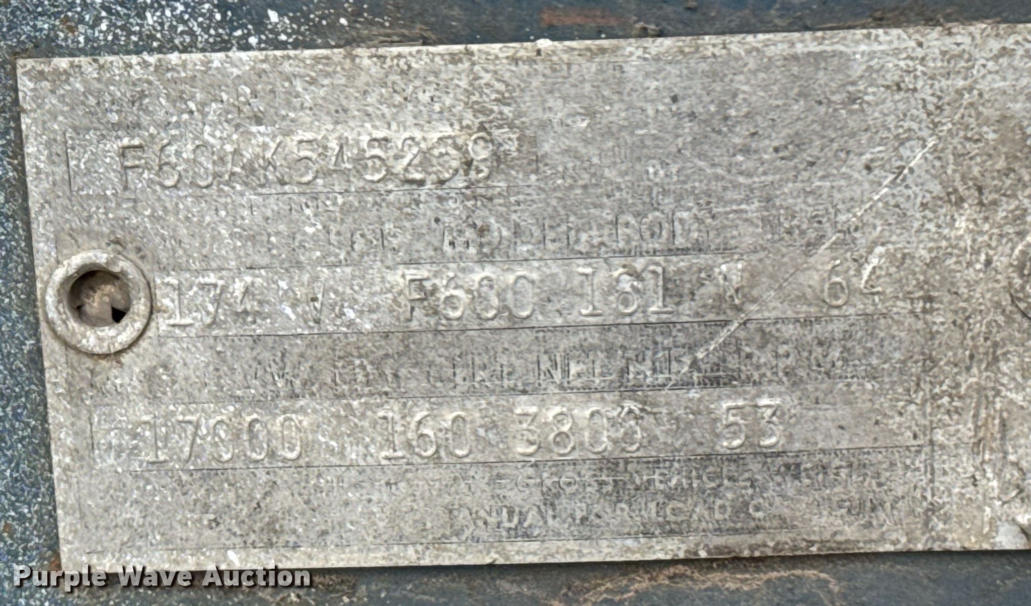 Take a look at this used 1964 Ford F600 fuel truck being sold on December 31st, 2024 in the SOLD! December 31 Truck and Trailer Auction made by Ford. Take a look at all of the item information below or take a look at similar auctions for Trucks.