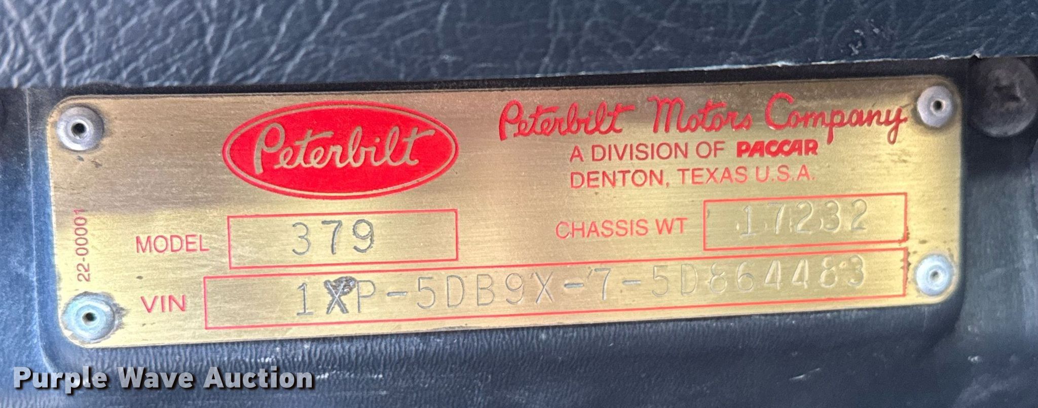 Purple Wave is selling a used Truck Tractor in Nebraska. This item is a 2005 Peterbilt 379 semi truck with the following: Miles: 263,491 on odometer, Actual mileage unknown, VIN: 1XP5DB9X75D864483