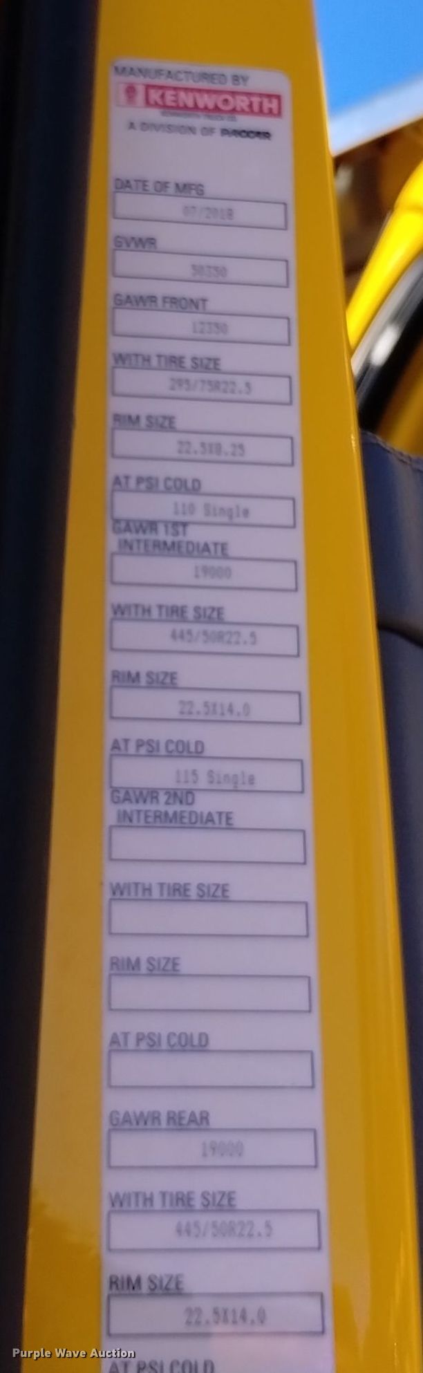 2019 Kenworth T680 semi truck. Miles: 415,676 on odometer, VIN: 1XKYDP9X0KJ258097, Unit #: 2581. Engine Paccar MX-13, Displacement: 12.9L, Cylinders: 6, Fuel type: Diesel, Engine brake. Transmission Automated manual. Chassis Axles: Tandem, Differential lock: Inter-axle, Suspension: Air Dump valves, Brakes: Air, GVWR: 50,350 lbs FAWR: 12,350 lbs, IAWR: 19,000 lbs, RAWR: 19,000 lbs. Interior AC, Heat, Heated mirrors, Power windows, Power locks, Cruise control, Air ride cab. Features Deck plate: Aluminum, Fifth wheel type: Fixed, Fuel tank: Single. Tires Front: 295/75R22.5, Rear: 445/50R22.5. Notes Dash warning indicator: Check engine. Oklahoma title. Title distribution may be delayed up to 30 days from verification of funds. Gemini Motor Transport. 4333 East Lee Highway. Max Meadows, VA 24360