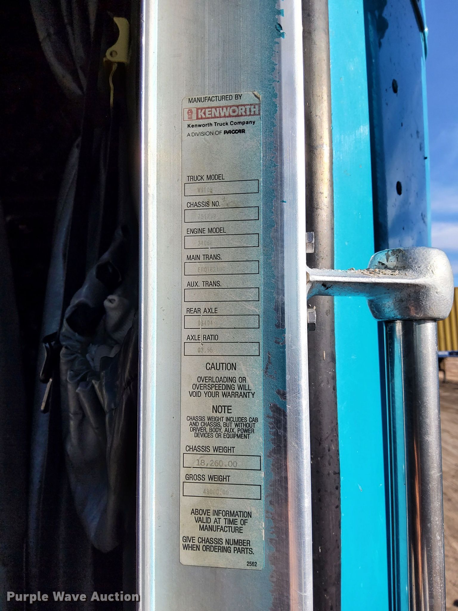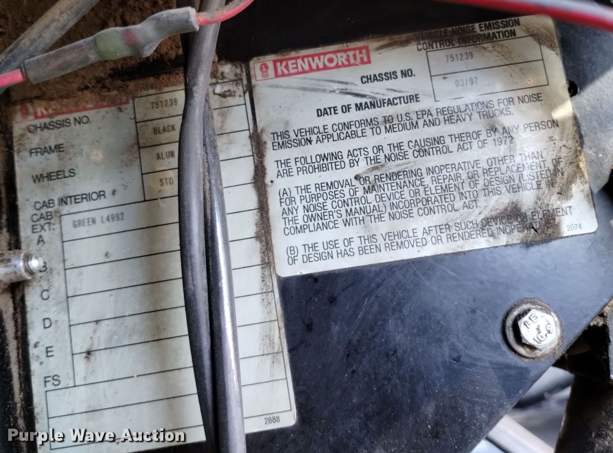 1997 Kenworth W900L semi truck. Miles: 897,057 on odometer, Miles or hours may vary, unit still in use, VIN: 1XKWDB9X5VR751239. Engine Caterpillar 3406, Displacement: 14.6L, Cylinders: 6, Fuel type: Diesel, Engine brake. Transmission Eaton Fuller, Manual, Speed: 13. Chassis Axles: Tandem, Differential lock: Inter-axle, Suspension: Air Dump valves, Brakes: Air. Interior AC, Heat, Heated mirrors, Cruise control, Air ride cab, Sleeper Sleeper length: 60", Beds: Fold out sofa, Single, Rear climate control. Features Deck plate: Aluminum, Fifth wheel type: Air operated, Sliding, Fuel tank: Dual. Tires Front: 285/75R24.5, Rear: 11R24.5. Notes Decals will be removed prior to auction, Non-operational AC, condenser missing, Transmission replaced on May 2024. View repairs. Colorado title. Hugo, CO 80821