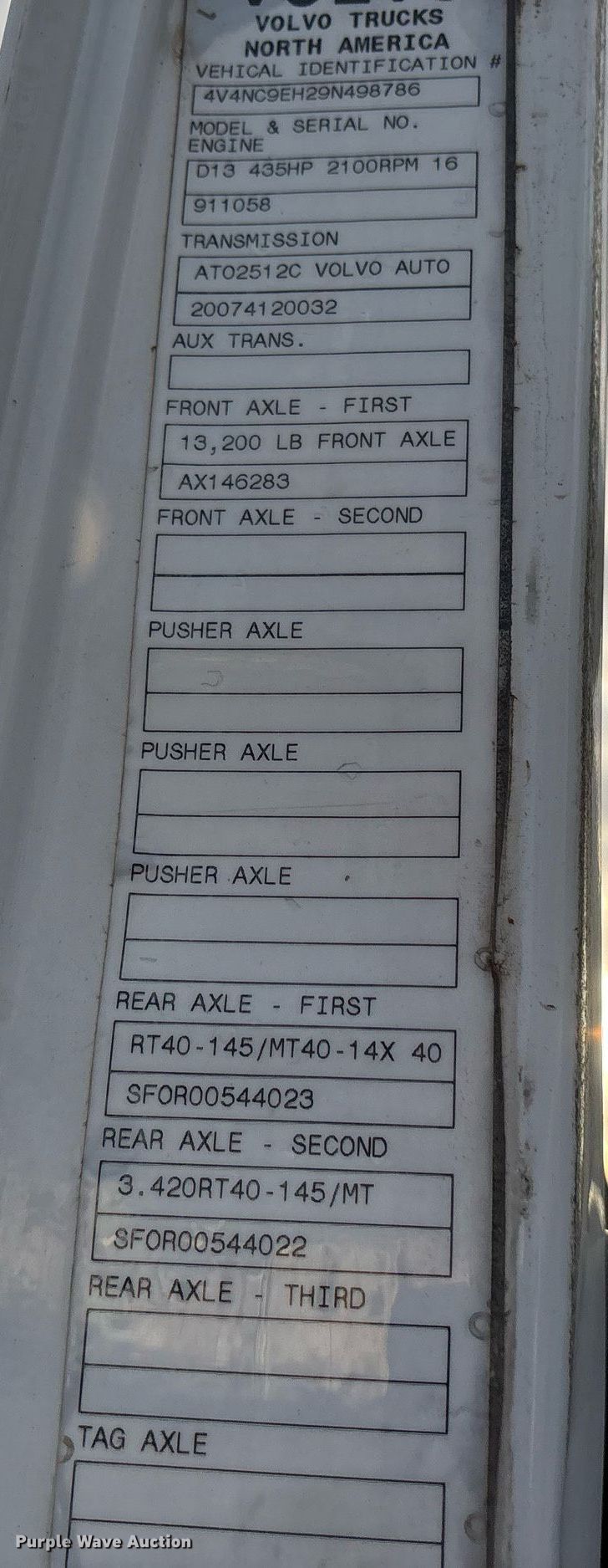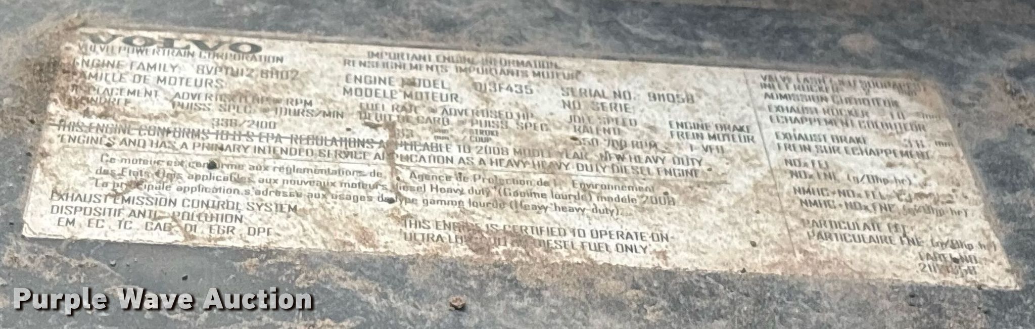 2009 Volvo VN semi truck. Miles: Unknown, VIN: 4V4NC9EH29N498786. Engine Volvo D13, Displacement: 12.8L, Cylinders: 6, Fuel type: Diesel, Engine brake. Transmission Automatic. Chassis Axles: Tandem, Differential lock: Inter-axle, Suspension: Air Dump valves, Brakes: Air, Wet kit, GVWR: 51,200 lbs FAWR: 13,200 lbs, IAWR: 19,000 lbs, RAWR: 19,000 lbs. Interior AC, Heat, Heated mirrors, Power windows, Power locks, Cruise control, Air ride cab. Features Deck plate: Aluminum, Fifth wheel type: Air operated, Sliding, Fuel tank: Dual. Tires Size: 285/75R24.5. Notes Dead battery, Non-operational unit. Texas title. Mileage has not been verified. Exempt will be written in the odometer disclosure on the title. Seller is a Texas licensed motor vehicle dealer. The buyer may be required to pay sales tax and/or registration fees to the dealer prior to taking possession. Title will be assigned and distributed by the dealer. Please contact the seller for distribution questions. Title distribution may be delayed up to 14 days from verification of funds. DeLucio USA. Edinburg, TX 78541