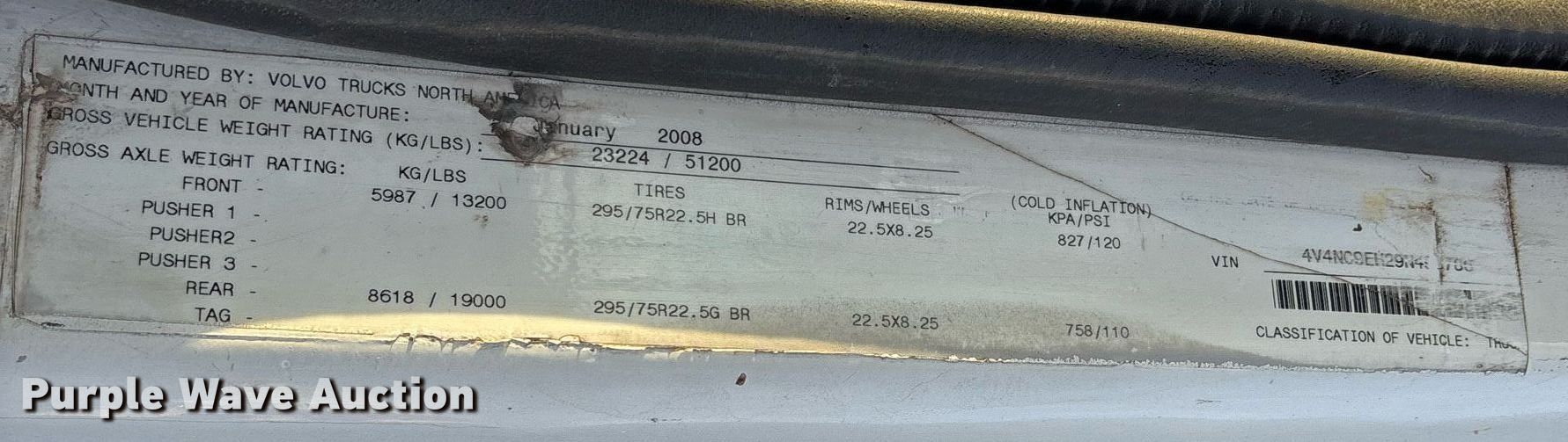 Purple Wave is selling a used Truck Tractor in Texas. This item is a 2009 Volvo VN semi truck with the following: Miles: Unknown, VIN: 4V4NC9EH29N498786