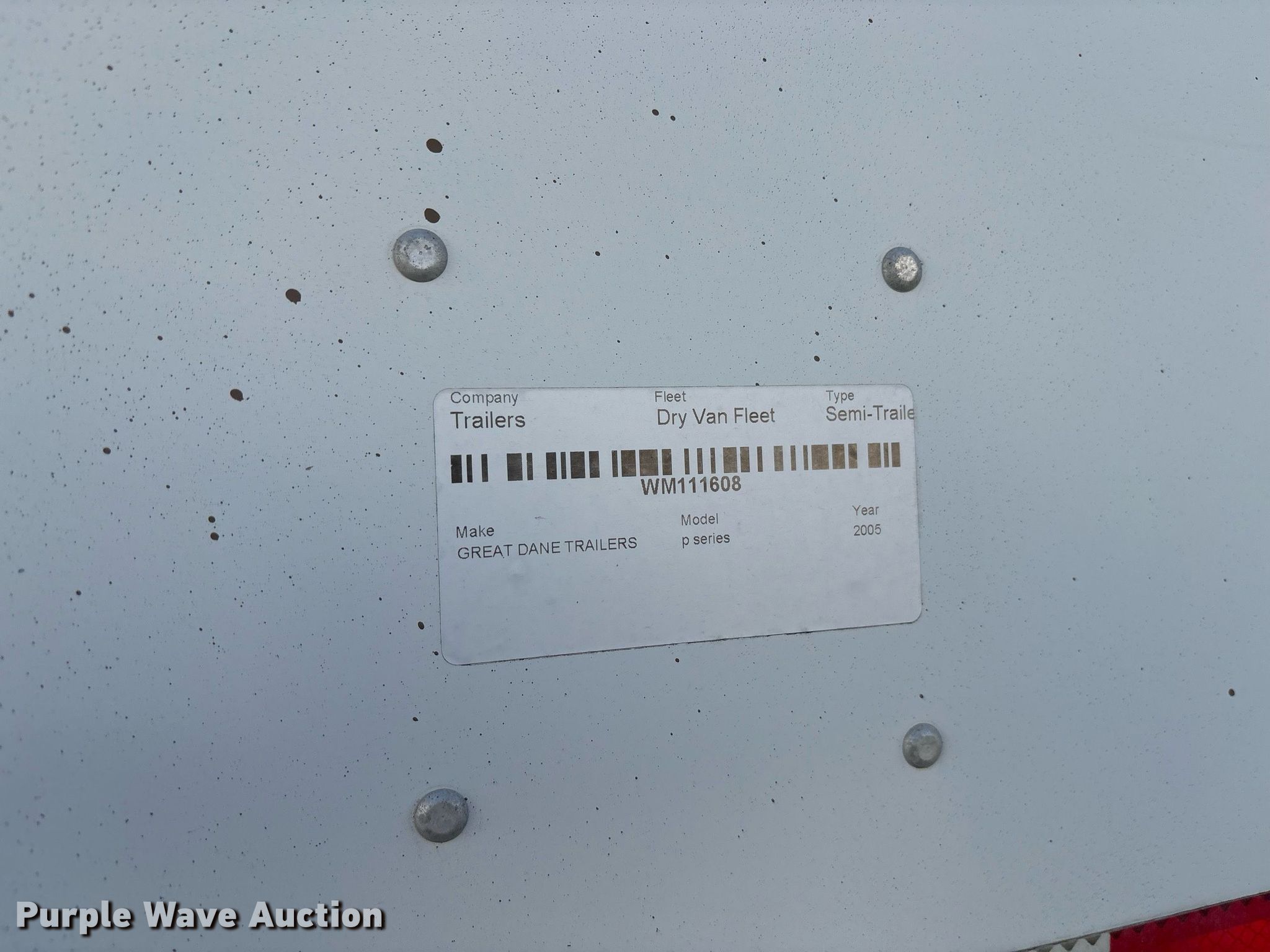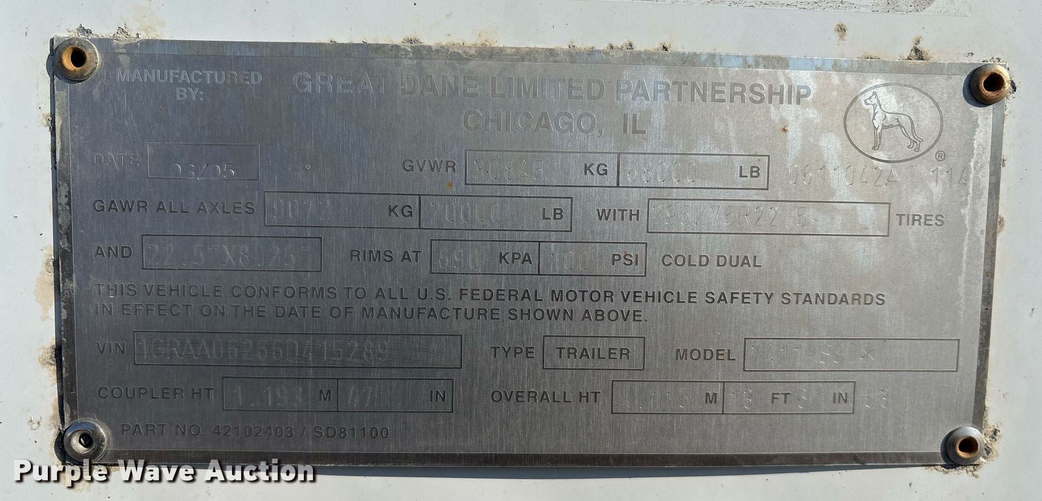 Purple Wave is selling a used Dry Van Trailer in Texas. This item is a 2006 Great Dane 7411-SSL dry van trailer with the following: VIN: 1GRAA06266D415289, Unit #: 111608