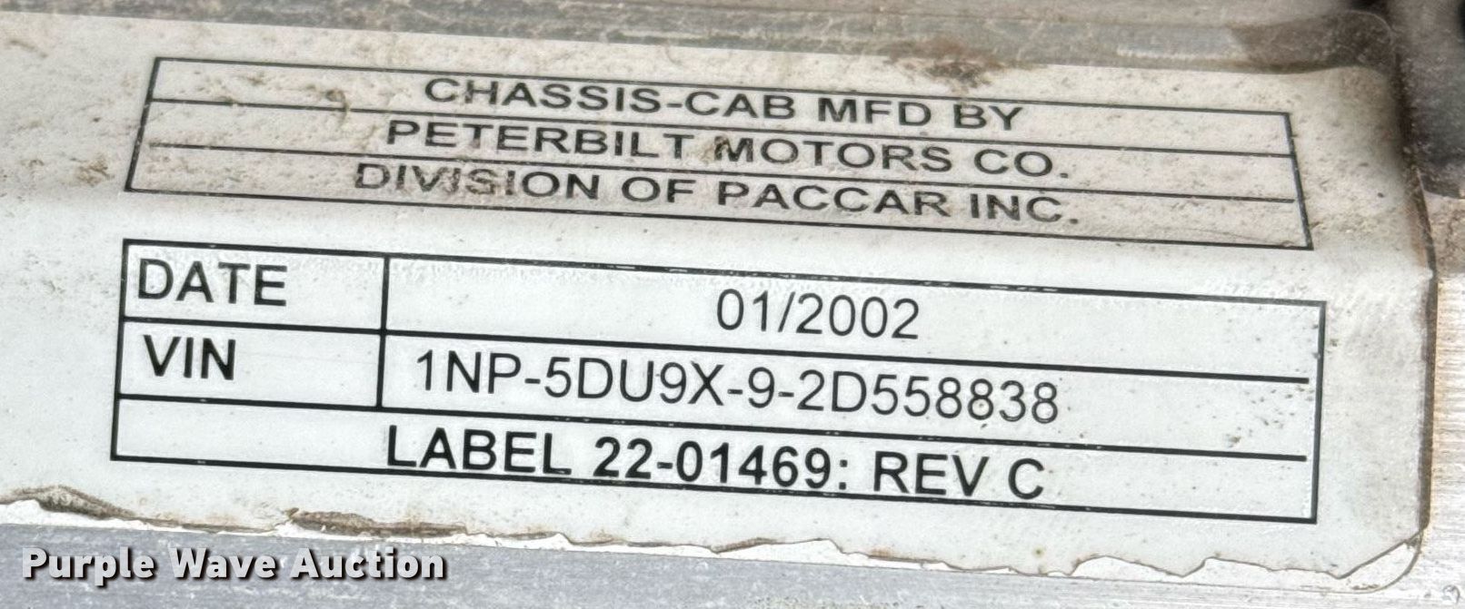 Purple Wave is selling a used Truck Tractor in Texas. This item is a 2002 Peterbilt 379 semi truck with the following: Miles: 158,986 on odometer, Actual miles unknown, VIN: 1NP5DU9X92D558838