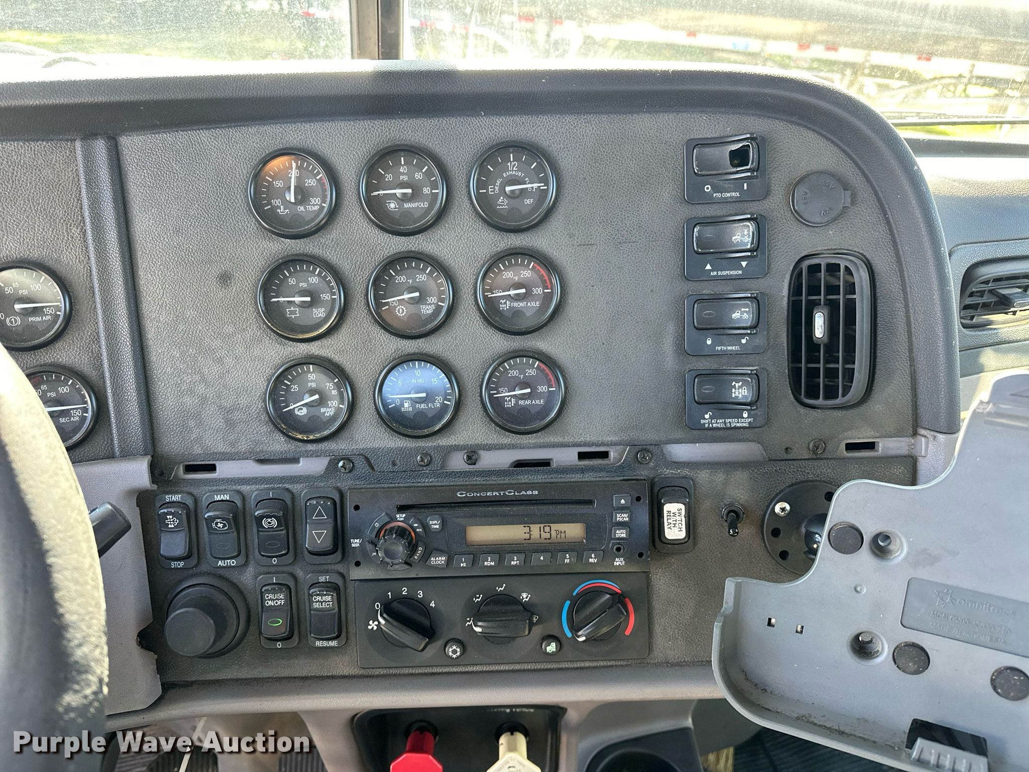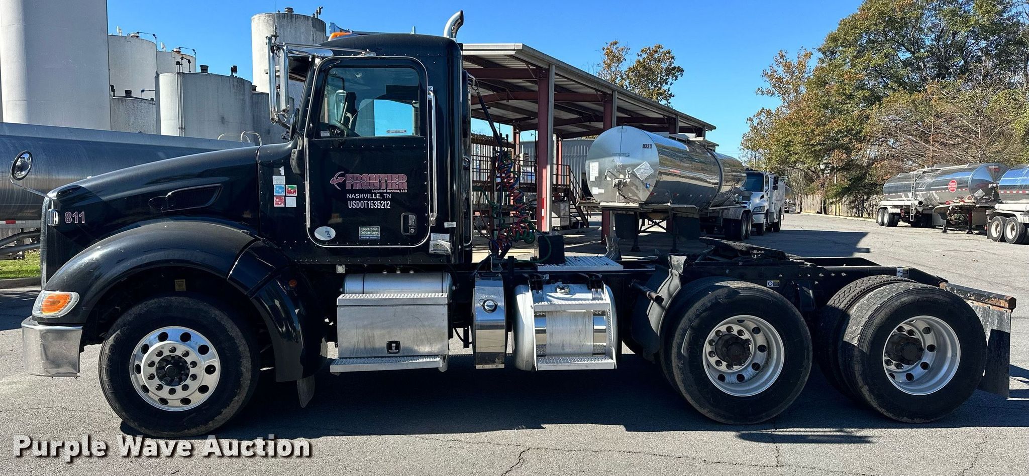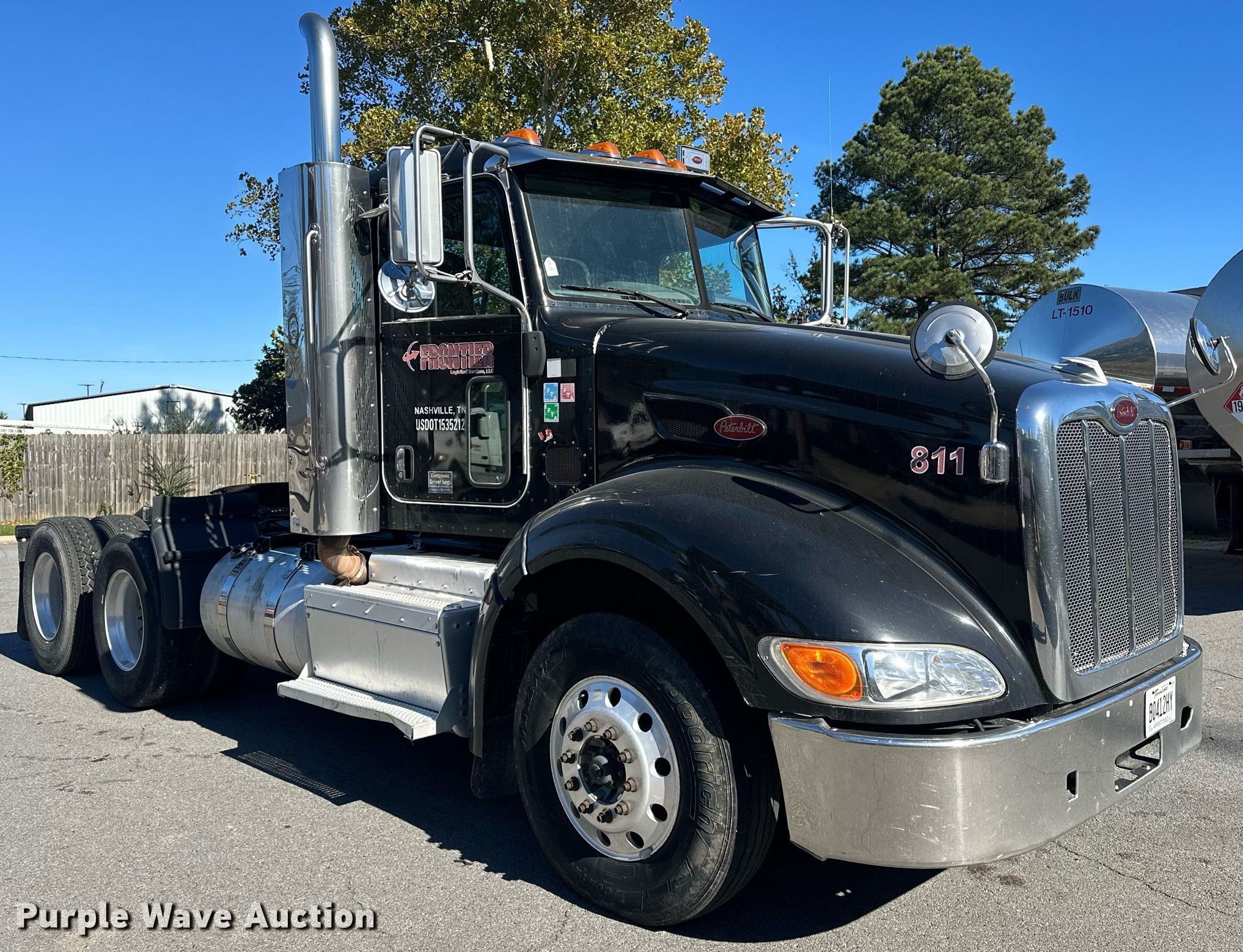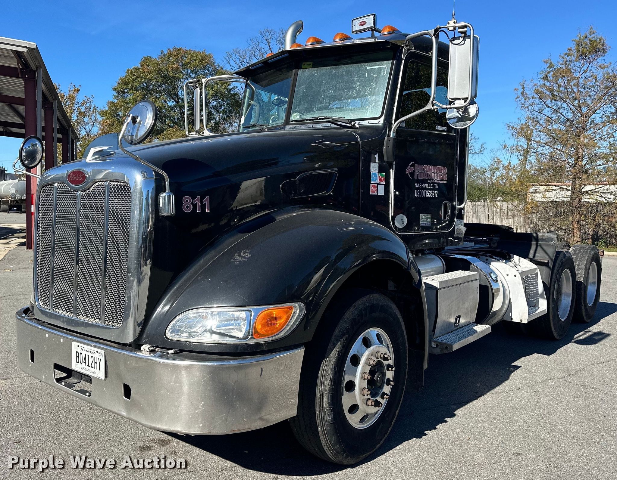 2013 Peterbilt 386 semi truck. Miles: 405,257 on odometer, Hours: 1,072 on meter Actual hours unknown, VIN: 1XPHDP9X5DD197101. Engine Paccar MX, Displacement: 12.9L, Cylinders: 6, Fuel type: Diesel, HP: 455, Engine brake. Transmission Eaton Fuller, Manual, Speed: 10. Chassis Axles: Tandem, Differential lock: Inter-axle, Suspension: Air Dump valves, Brakes: Air, PTO, GVWR: 50,000 lbs FAWR: 12,000 lbs, IAWR: 19,000 lbs, RAWR: 19,000 lbs. Interior AC, Heat, Heated mirrors, Power windows, Power locks, Cruise control, Air ride cab. Features Deck plate: Aluminum, Fifth wheel type: Air operated, Sliding, Fuel tank: Dual. Tires Size: 11R22.5. Notes Windshield chipped or cracked, Air dryer may need replaced. Titles will be distributed after confirmation of payment and removal. Tennessee title. Frontier Logistical Services, LLC. North Little Rock, AR 72117