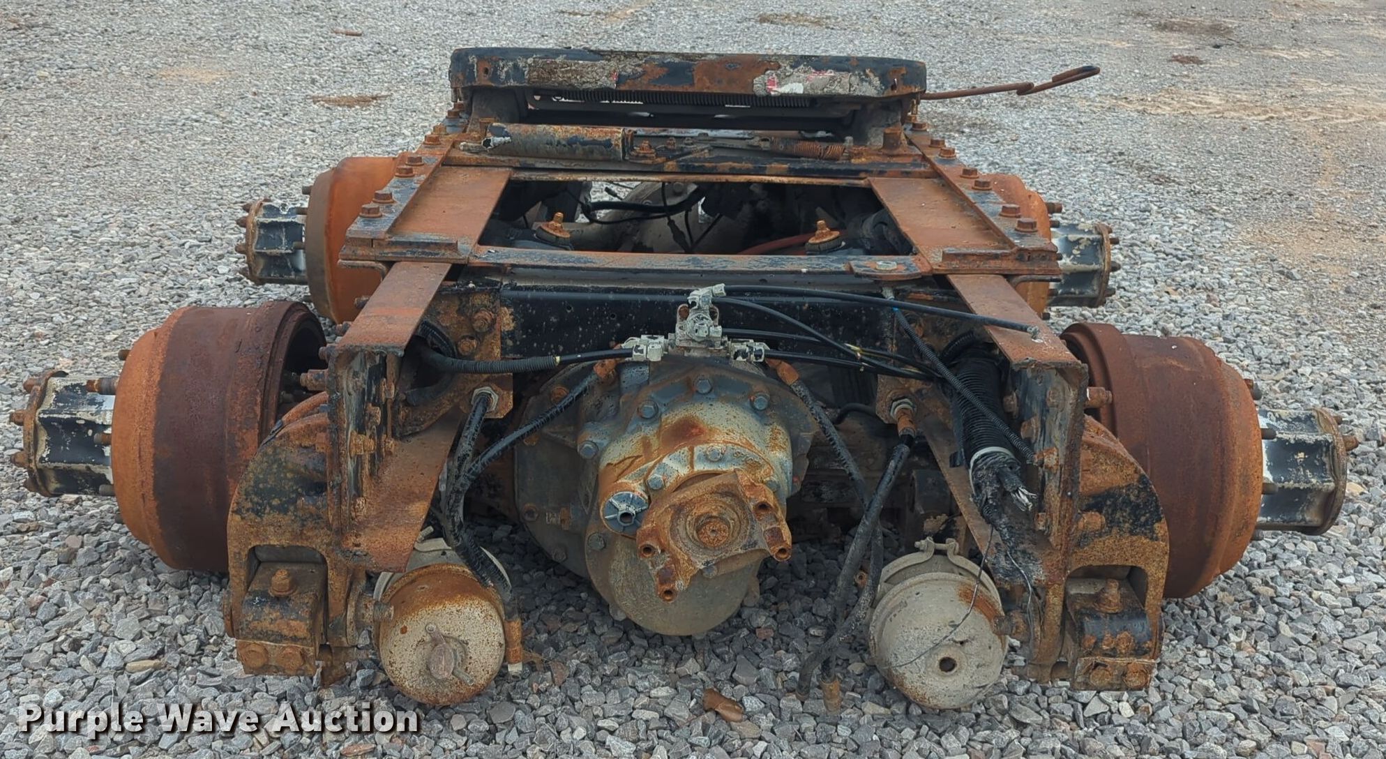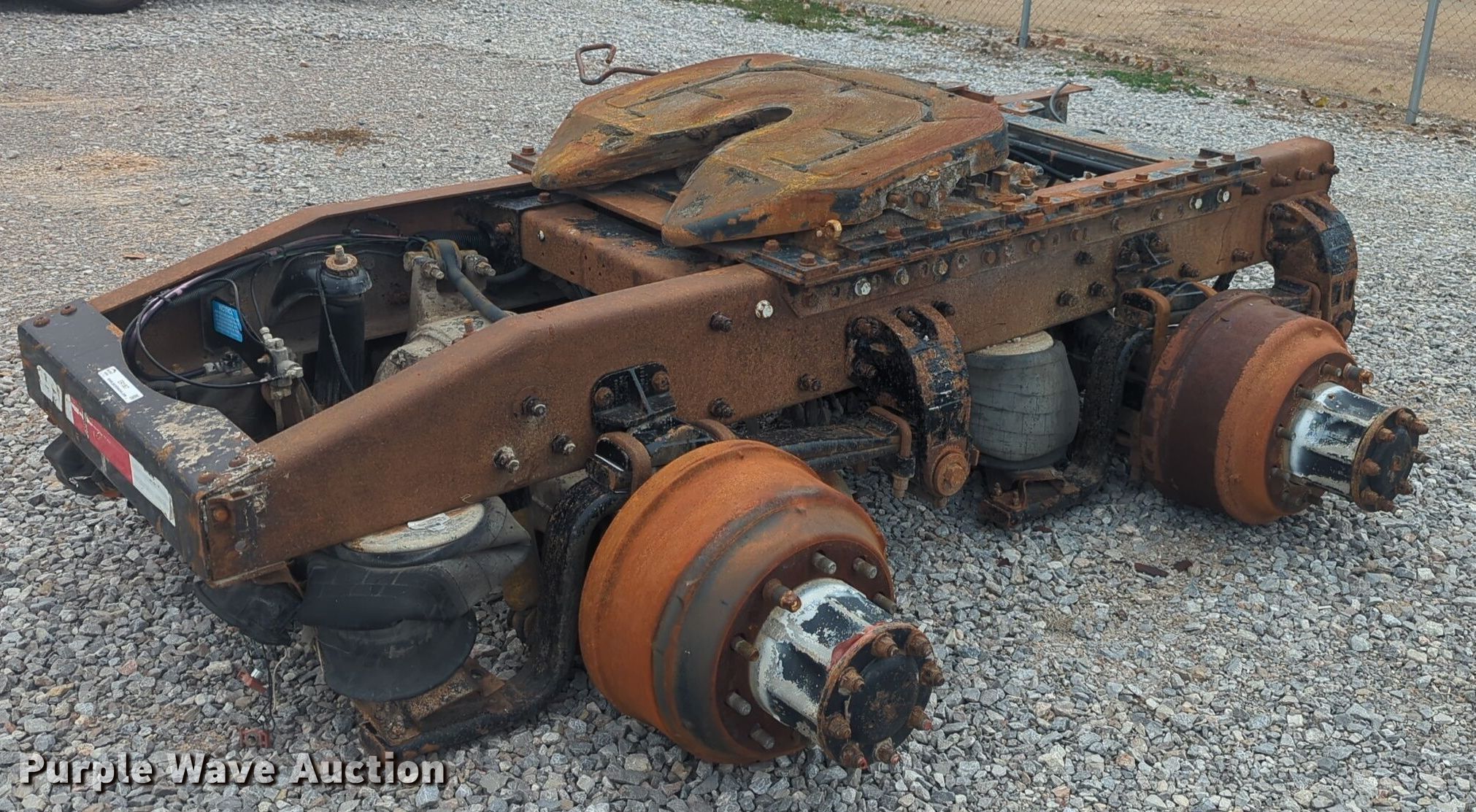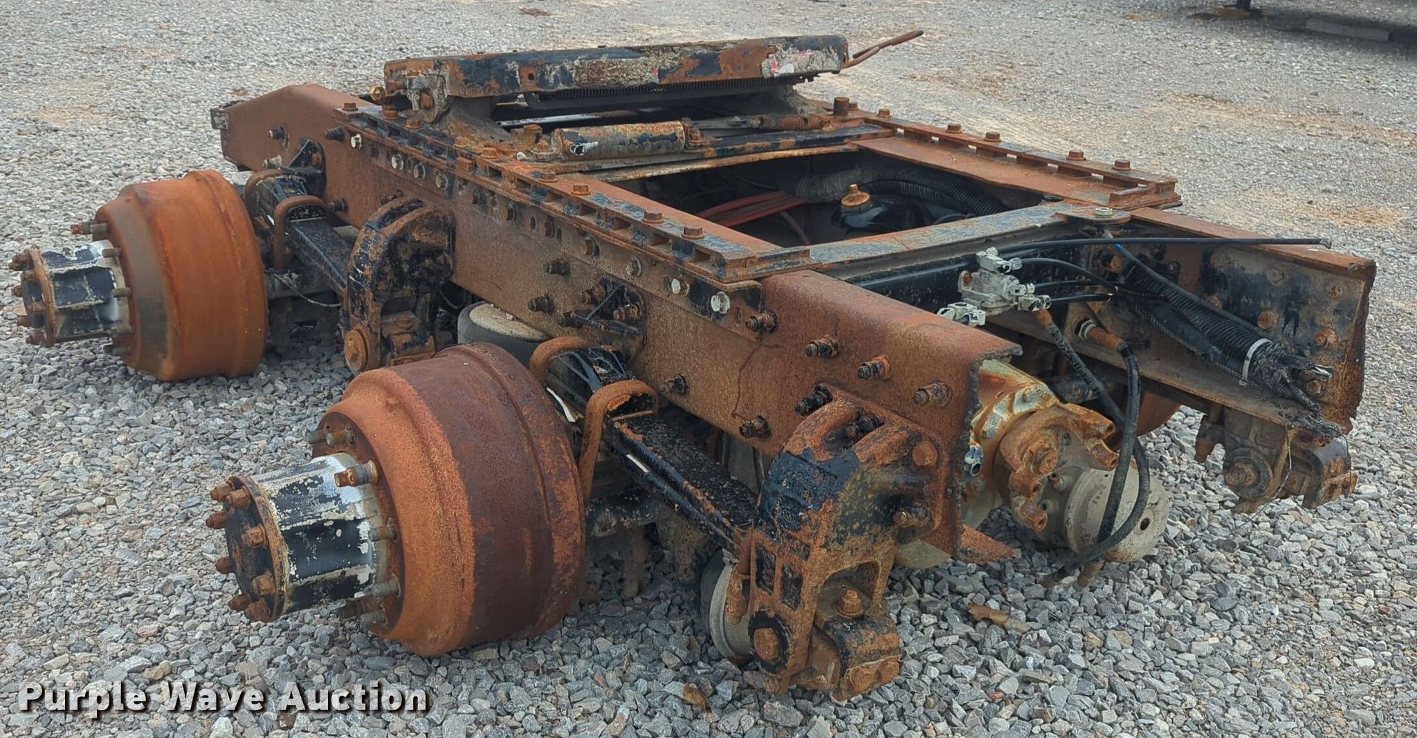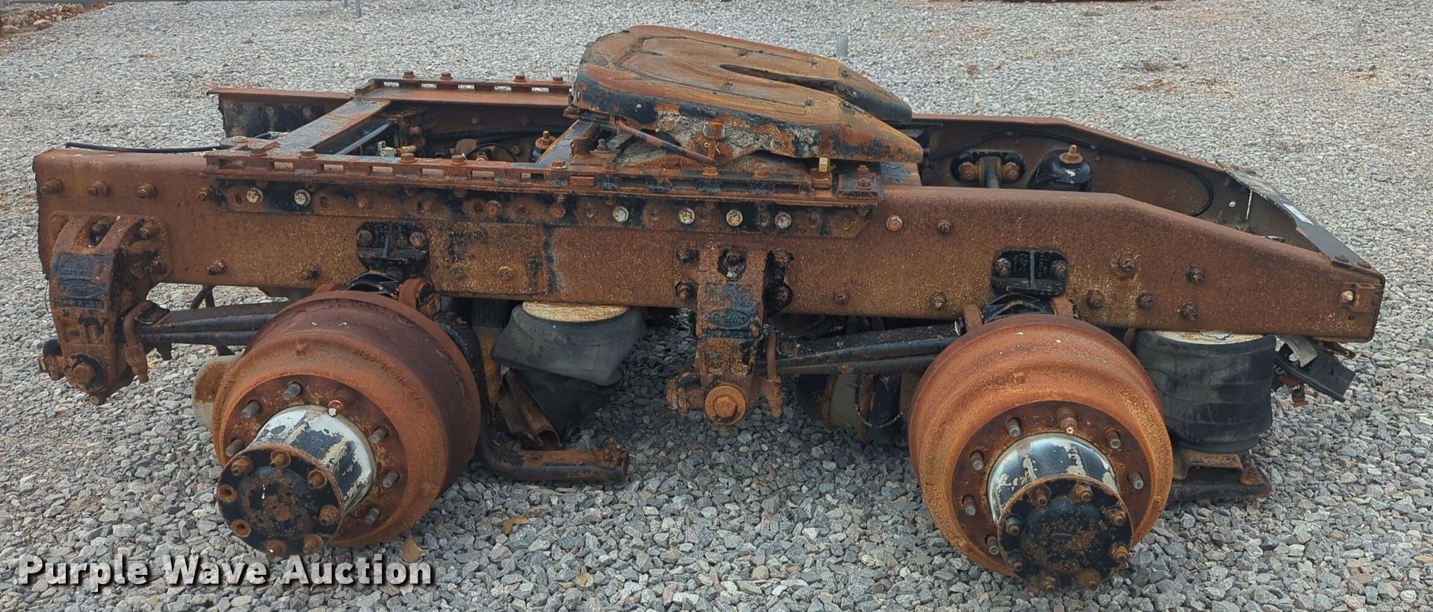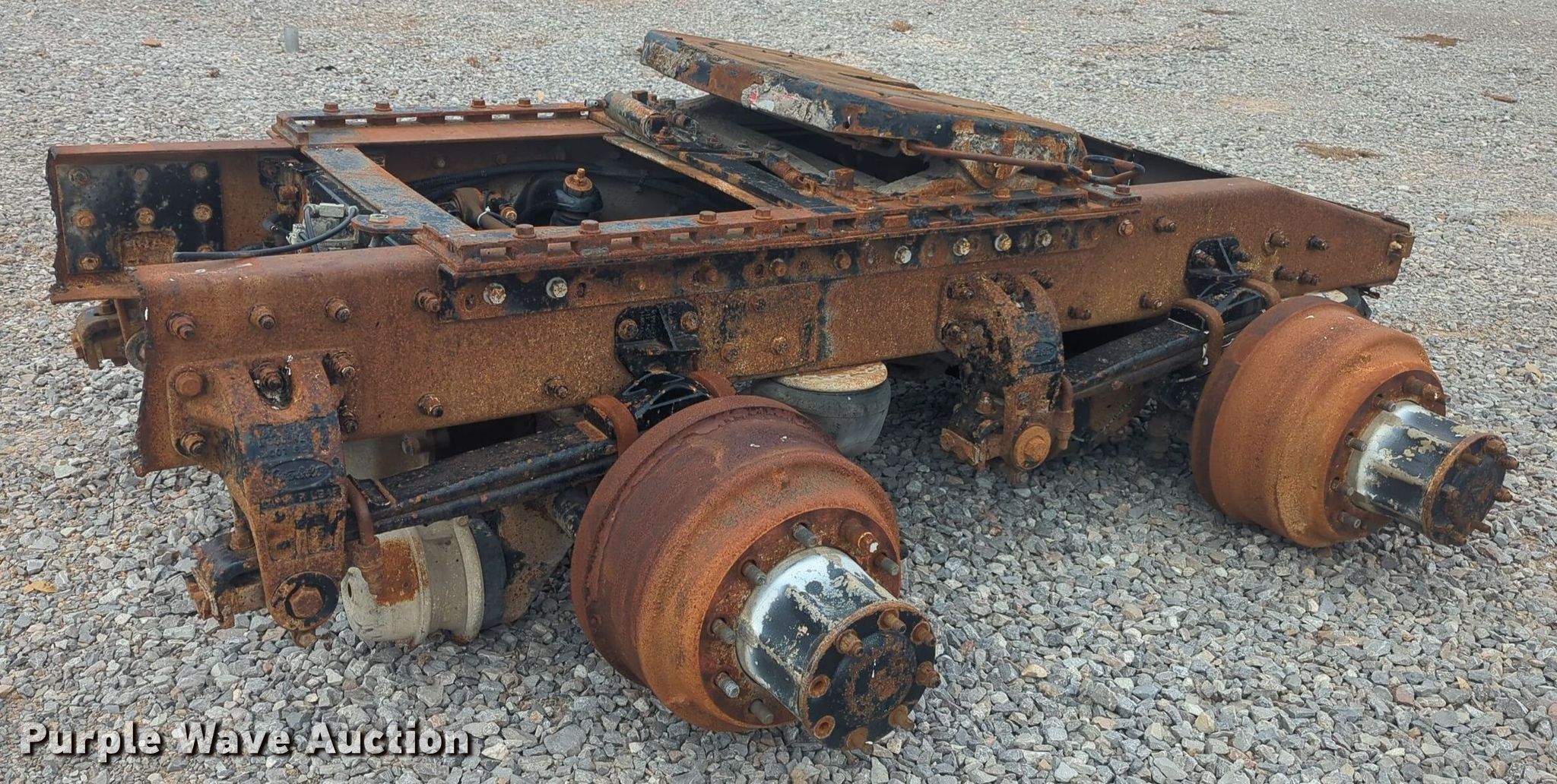 Purple Wave is selling a used Truck Part and Attach. in Oklahoma. This item is a Tandem rear axle assembly with the following: Serial: HN00101980, Brakes: Air, Suspension: Air, Fifth wheel type: Air operated, Sliding
