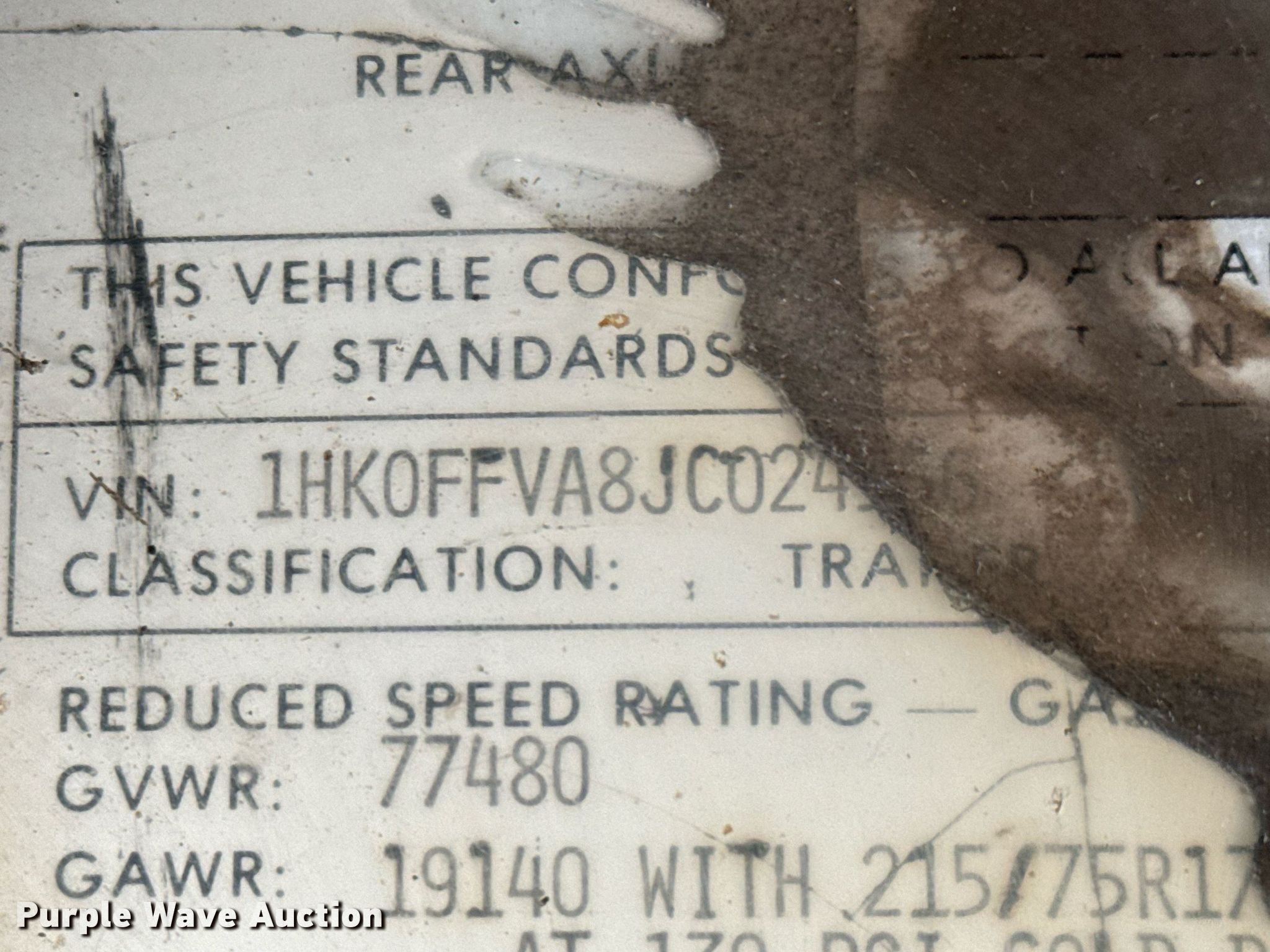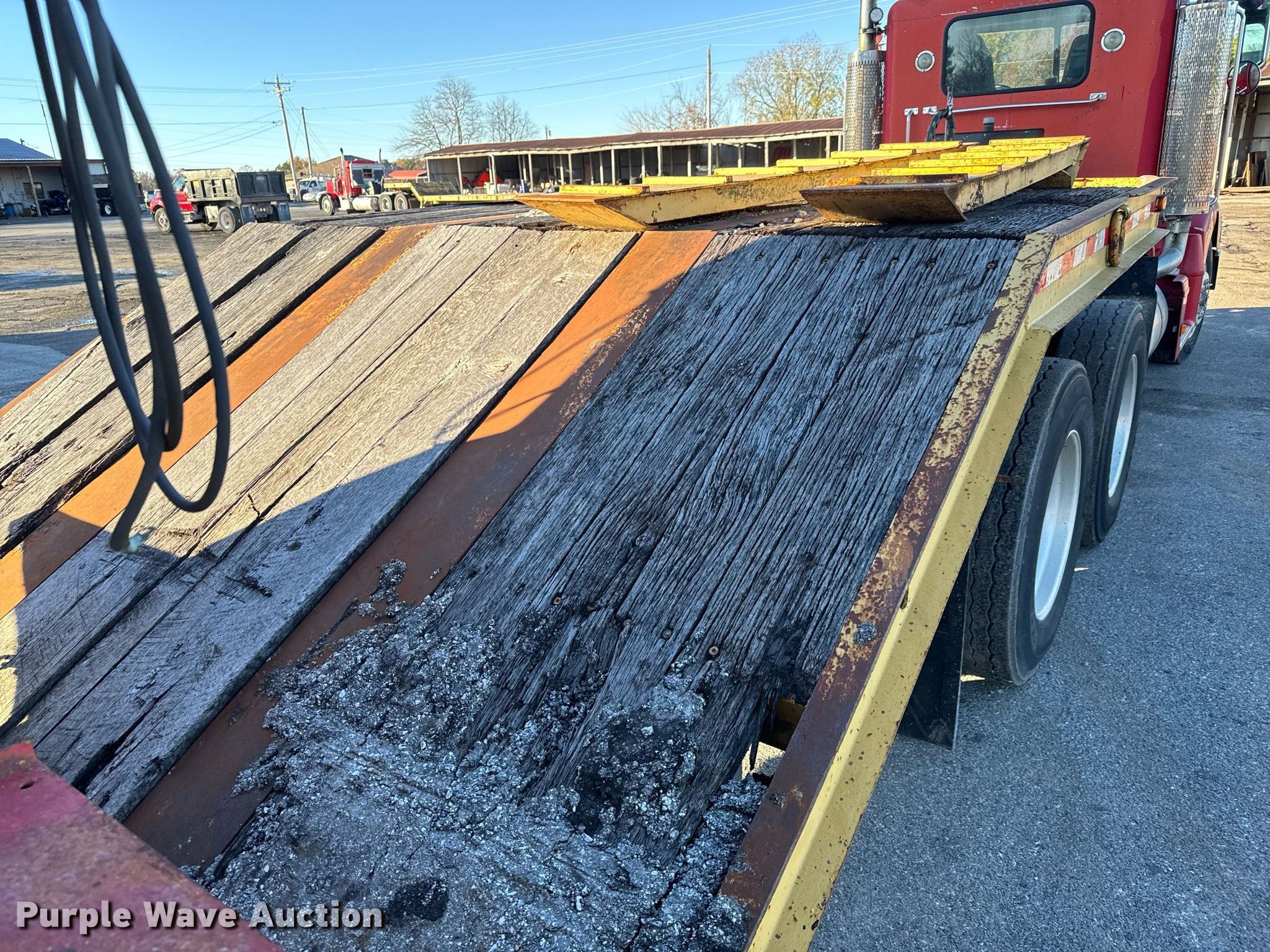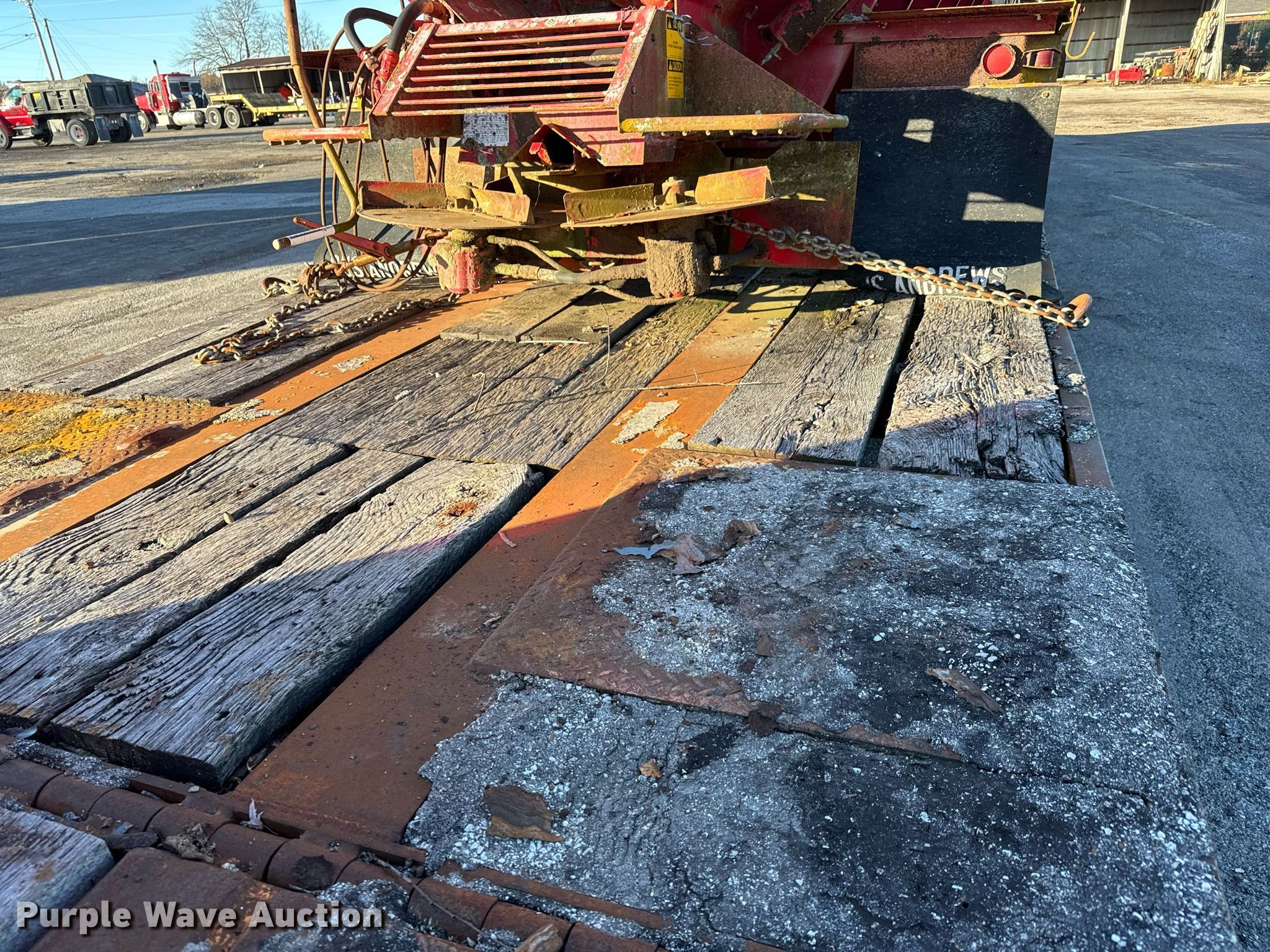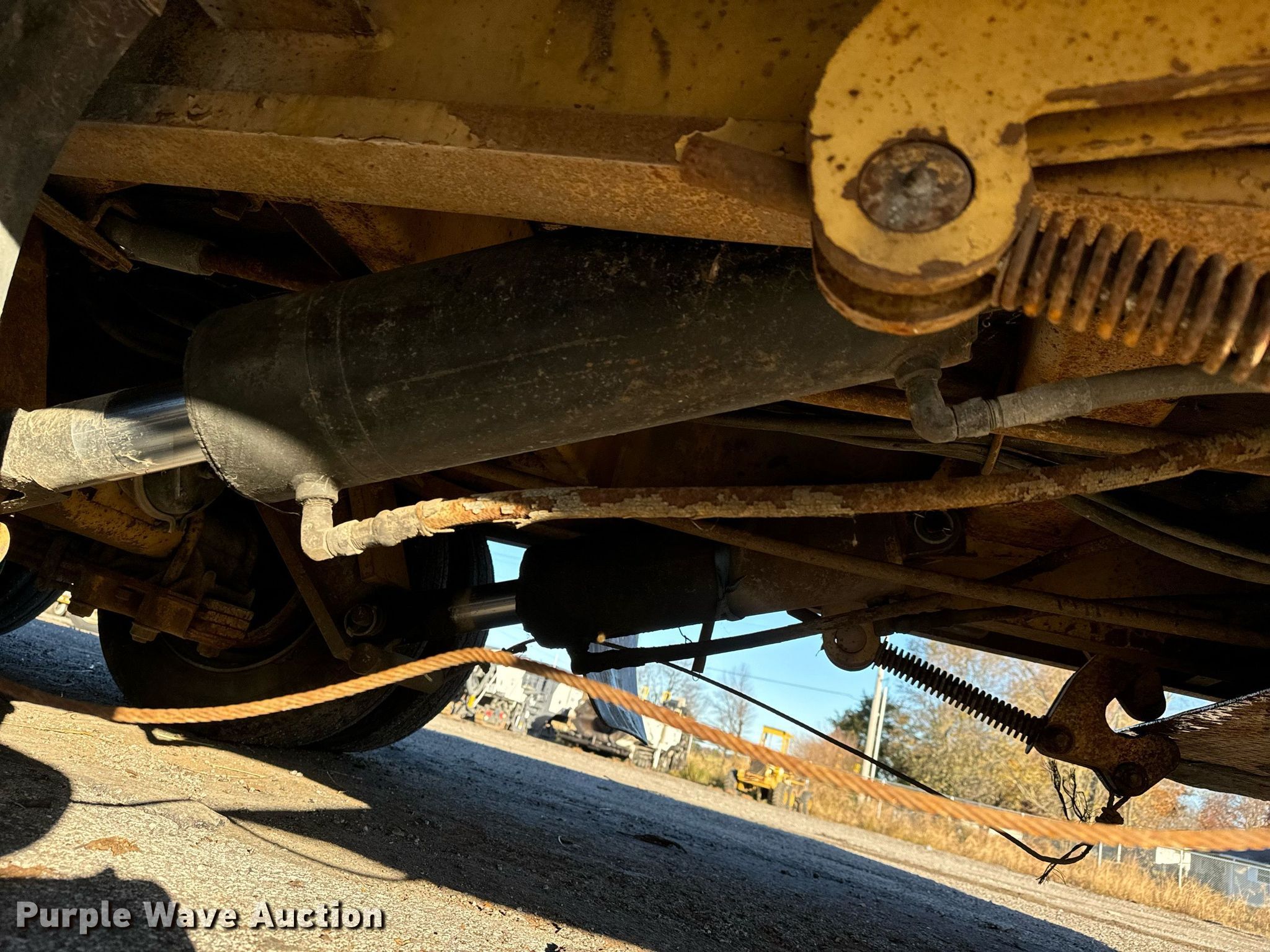 1988 Hyster SR35TL drop deck hydraulic tail equipment trailer. VIN: 1HK0FFVA8JCA24556, Unit #: 141. Dimensions Overall: 48' L x 101" W, Deck: 35' 3" L x 101" W, Hydraulic tail length: 13', Ramps: Hydraulic Length: 58". Features Deck type: Wood. Chassis Landing gear: Dual, Suspension: Spring, Brakes: Air, Axles: Tandem. Tires Steel wheels, Size: 215/75R17.5. Notes Contents not included, Semi truck not included. Missouri title. Title distribution may be delayed up to 14 days from verification of funds. Blevins Asphalt Construction Company Inc.. Mount Vernon, MO 65712