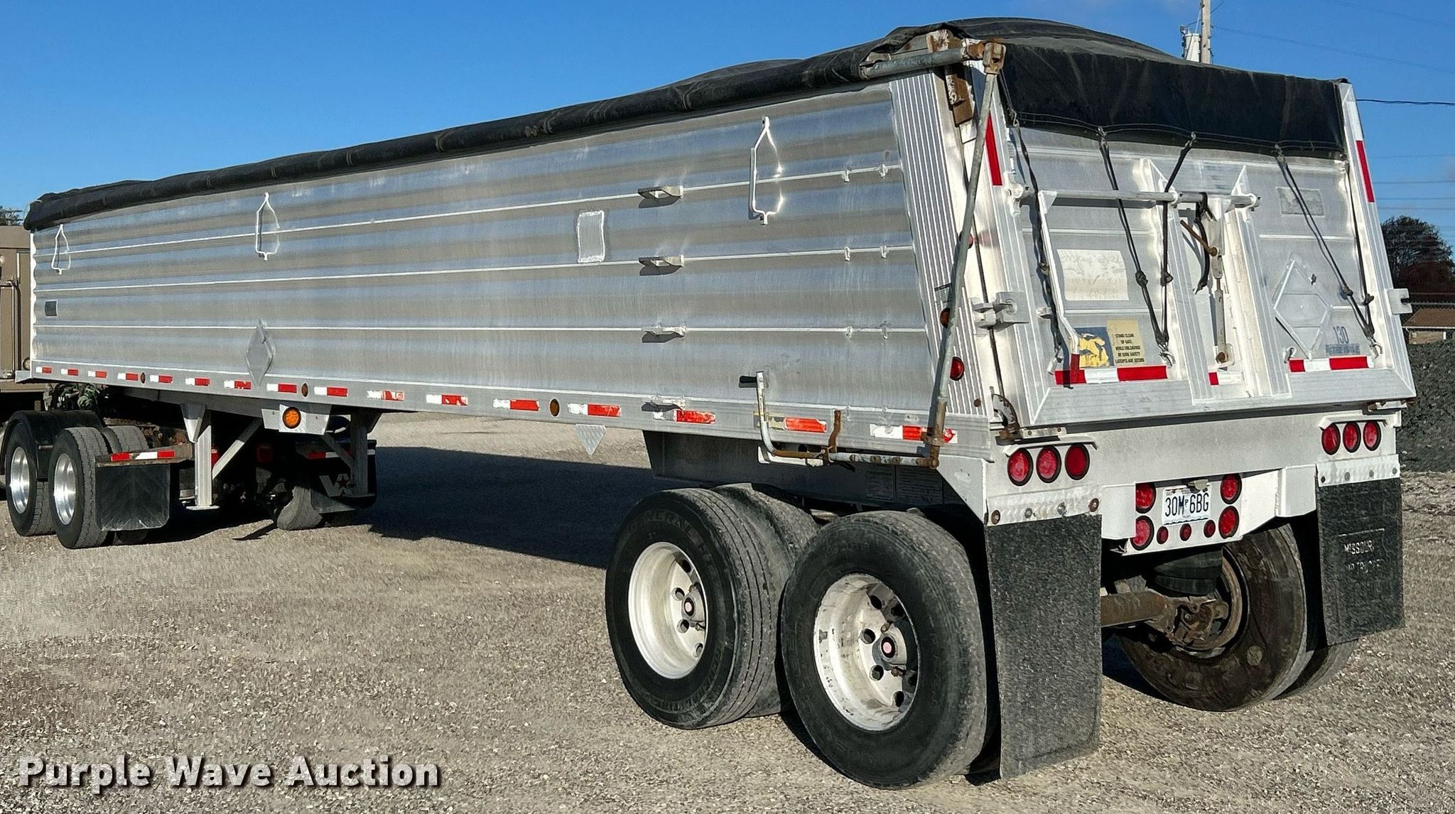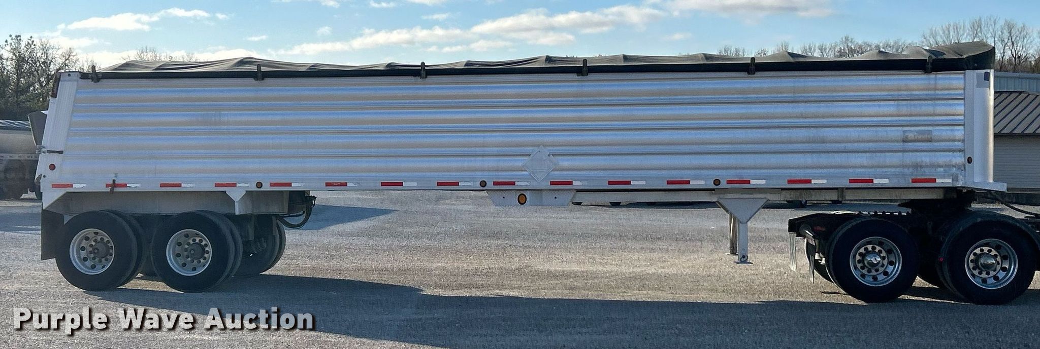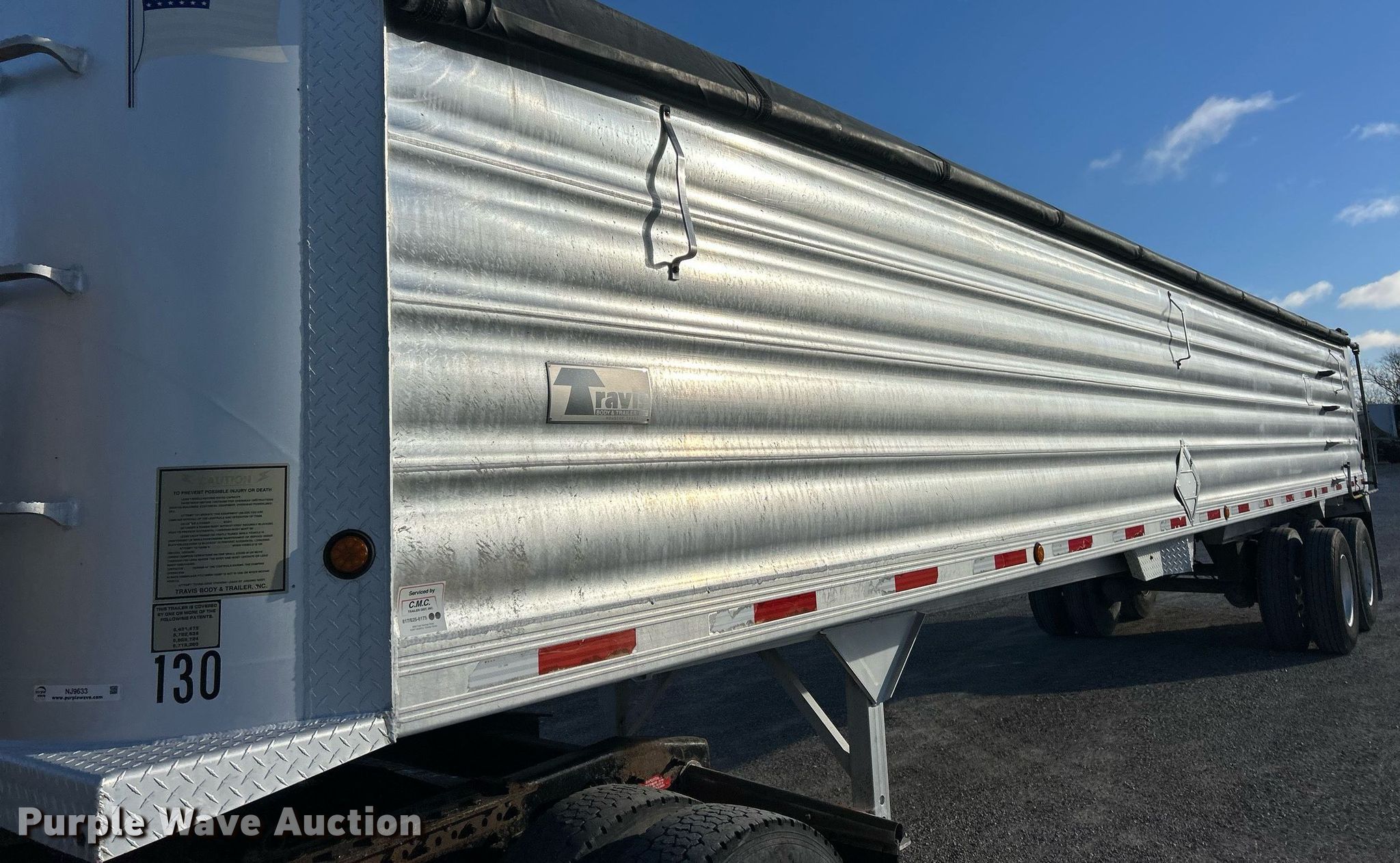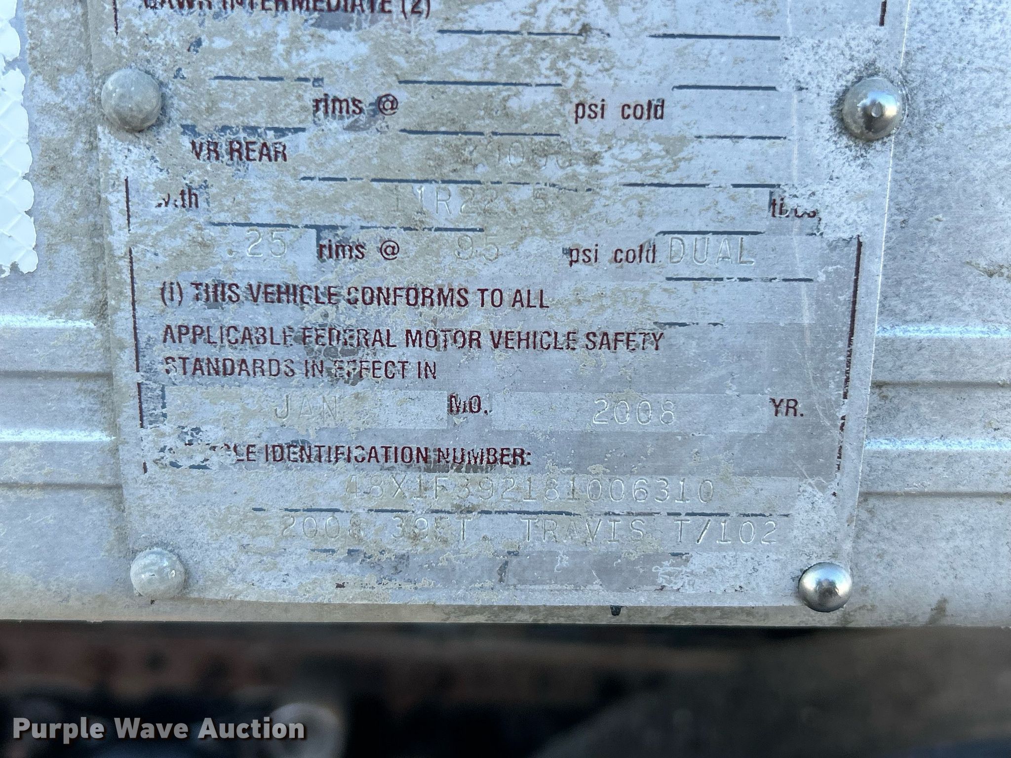2008 Travis T/102 end dump trailer. VIN: 48X1F392181006310. Dimensions Overall: 39' L x 102" W, Side height: 60". Features Body type: Aluminum, Ram: Single, End gate: Air operated Grain door, Roll tarp. Chassis Landing gear: Dual, Suspension: Air, Brakes: Air, Axles: Tandem, GVWR: 68,000 lbs, GAWR: 20,000 lbs. Tires Aluminum wheels, Size: 11R22.5. Missouri title. Title distribution may be delayed up to 14 days from verification of funds. Lomax Trucking Service Inc.. Hannibal, MO 63401
