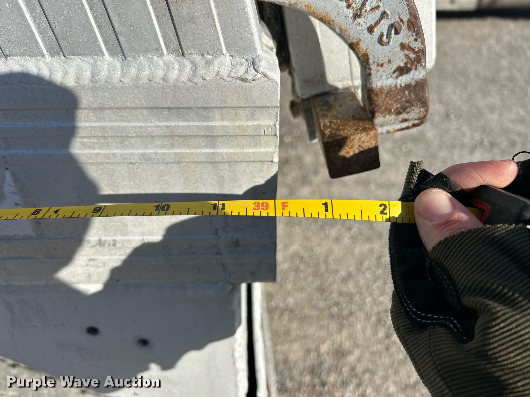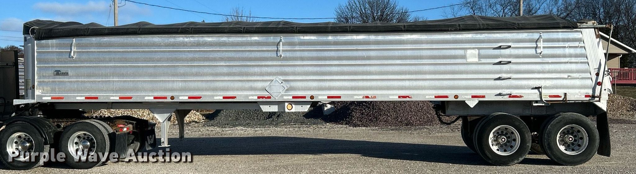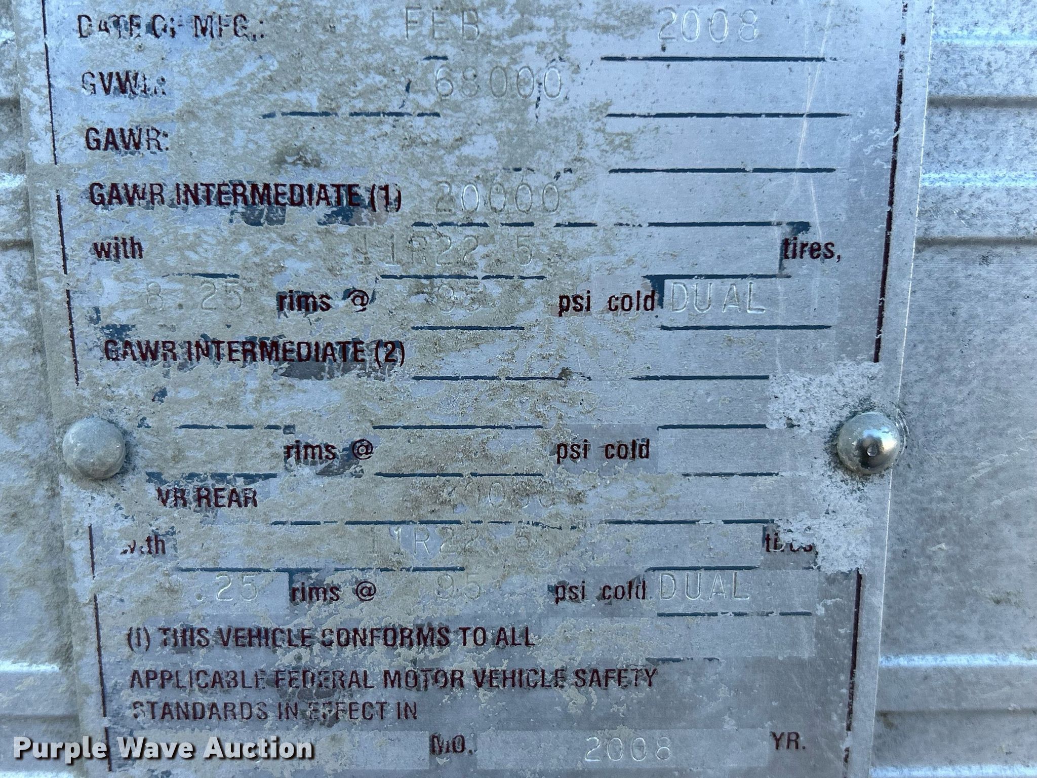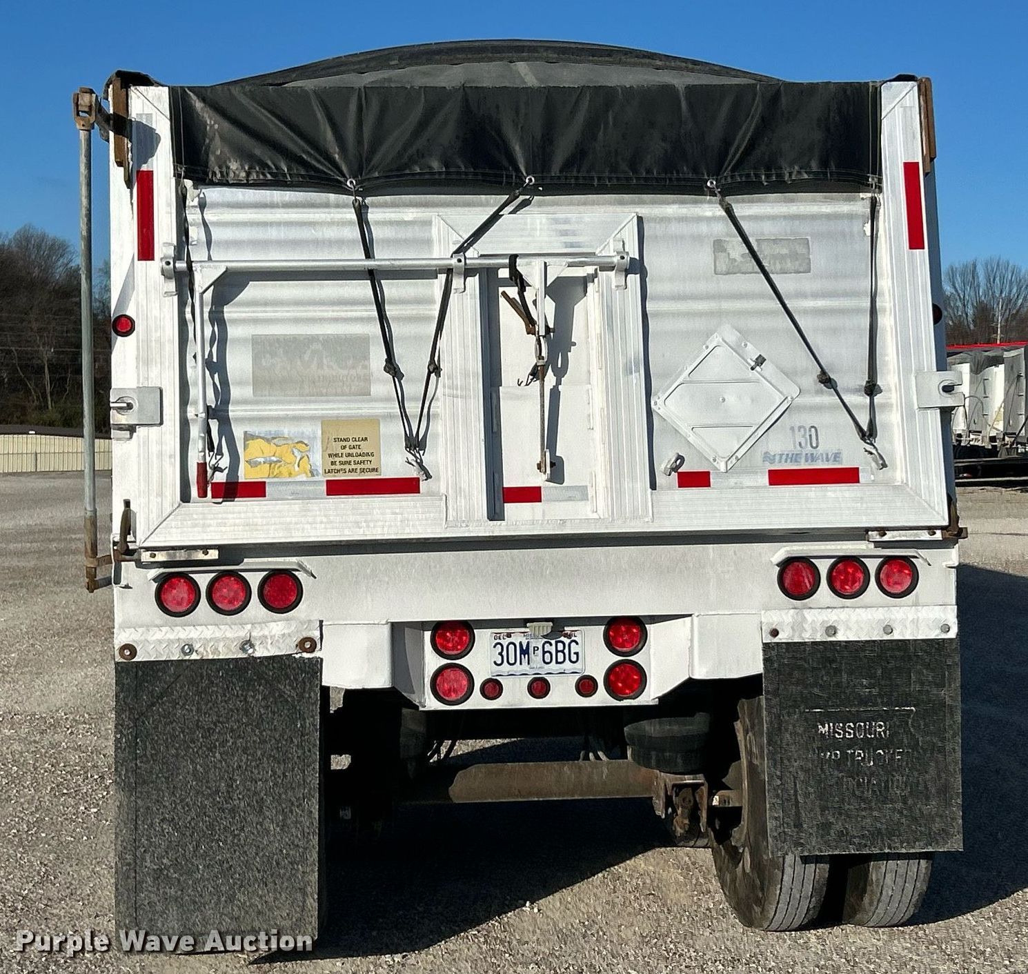 2008 Travis T/102 end dump trailer. VIN: 48X1F392181006310. Dimensions Overall: 39' L x 102" W, Side height: 60". Features Body type: Aluminum, Ram: Single, End gate: Air operated Grain door, Roll tarp. Chassis Landing gear: Dual, Suspension: Air, Brakes: Air, Axles: Tandem, GVWR: 68,000 lbs, GAWR: 20,000 lbs. Tires Aluminum wheels, Size: 11R22.5. Missouri title. Title distribution may be delayed up to 14 days from verification of funds. Lomax Trucking Service Inc.. Hannibal, MO 63401