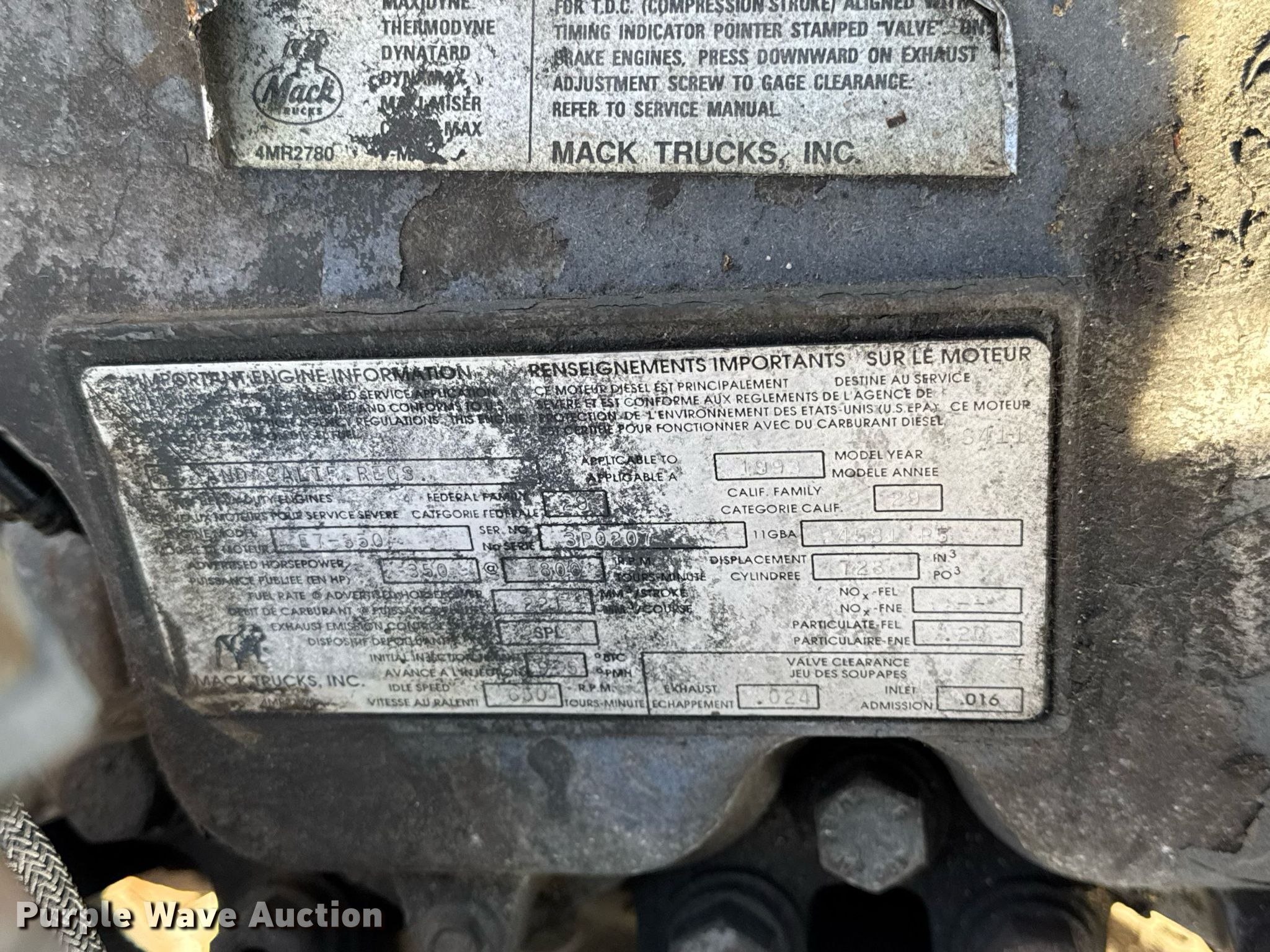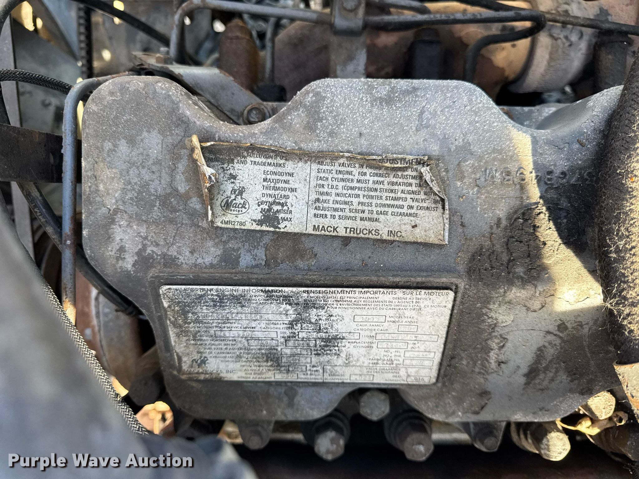 1994 Mack RD688S semi truck. Miles: 444,921 on odometer, Hours: 34,720 on meter, VIN: 2M2P267Y6RC016468. Engine Mack E7-350, Displacement: 12.0L, Cylinders: 6, Fuel type: Diesel. Transmission Eaton Fuller, Manual, Speed: 9. Chassis Axles: Tandem, Suspension: Camelback, Brakes: Air, PTO, Wet kit. Interior AC, Heat, Heated mirrors, Cruise control, Air ride cab. Features Deck plate: Aluminum, Fifth wheel type: Air operated, Sliding, Fuel tank: Single. Tires Size: 11R22.5. Notes Dash warning indicator: Brake, Air line disconnected to fifth wheel. Illinois title. Title distribution may be delayed up to 14 days from verification of funds. Fowler Enterprises LLC. Hampshire, IL 60140