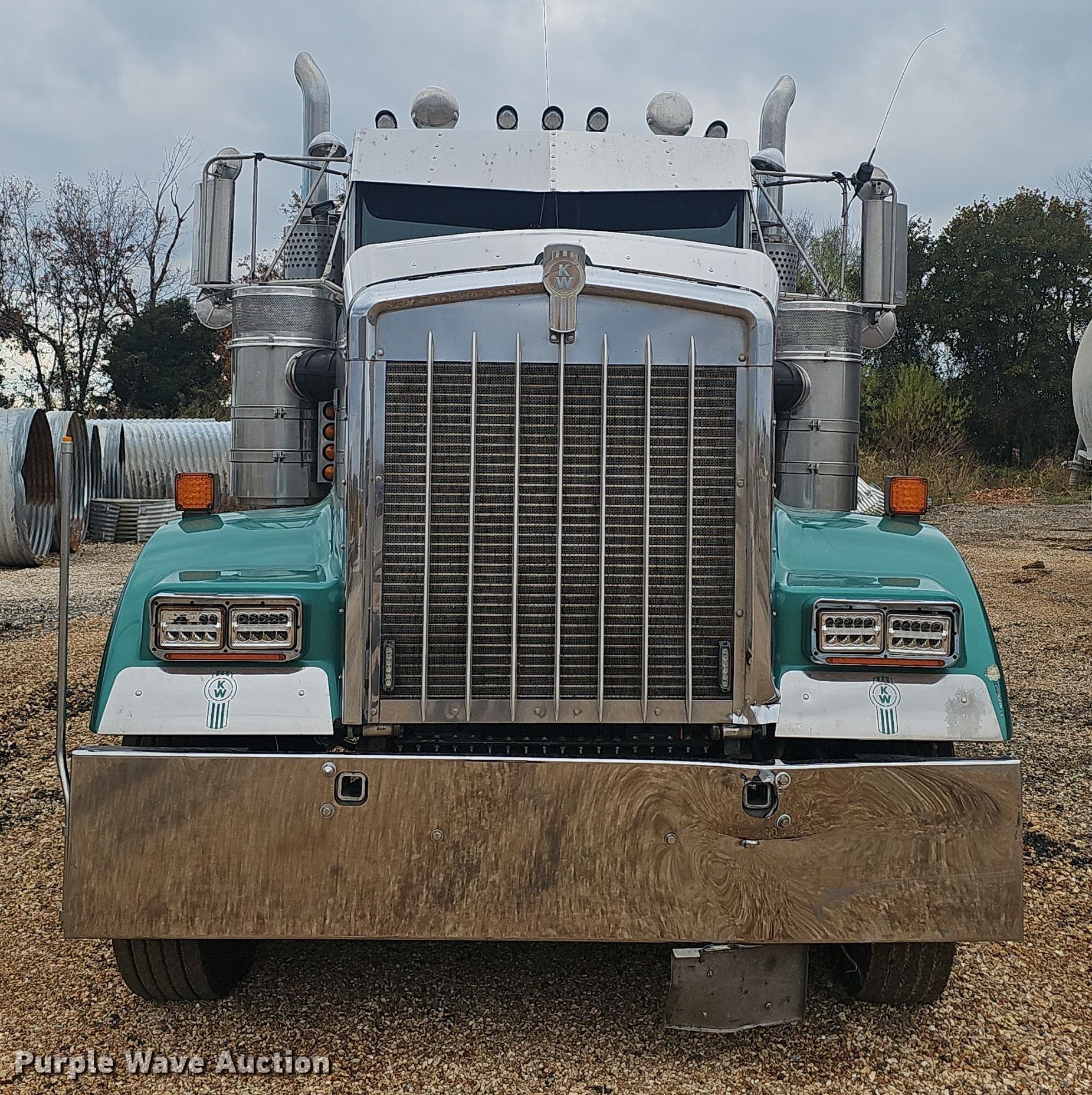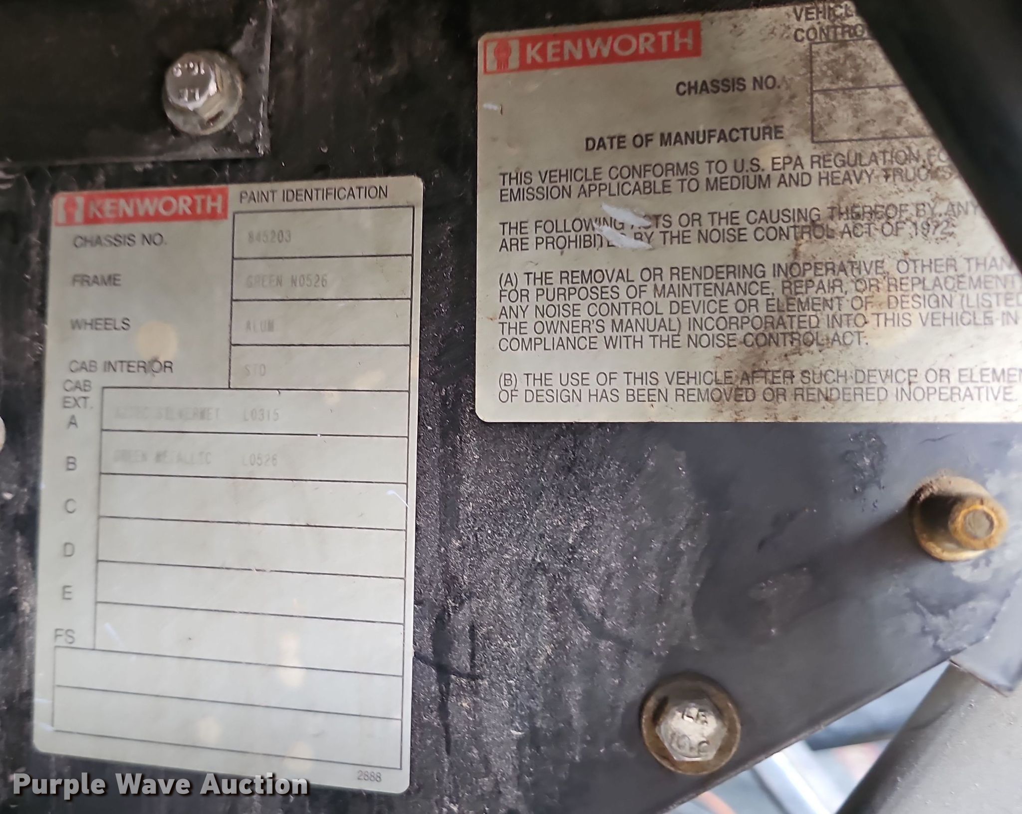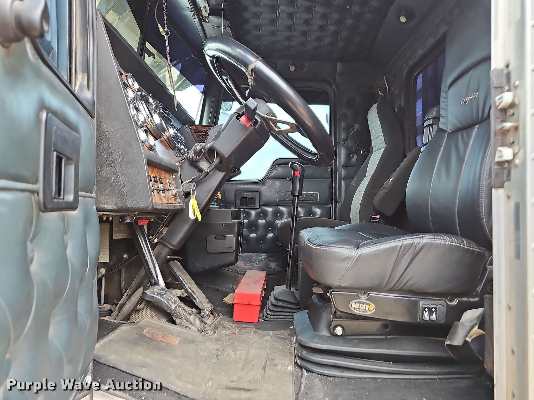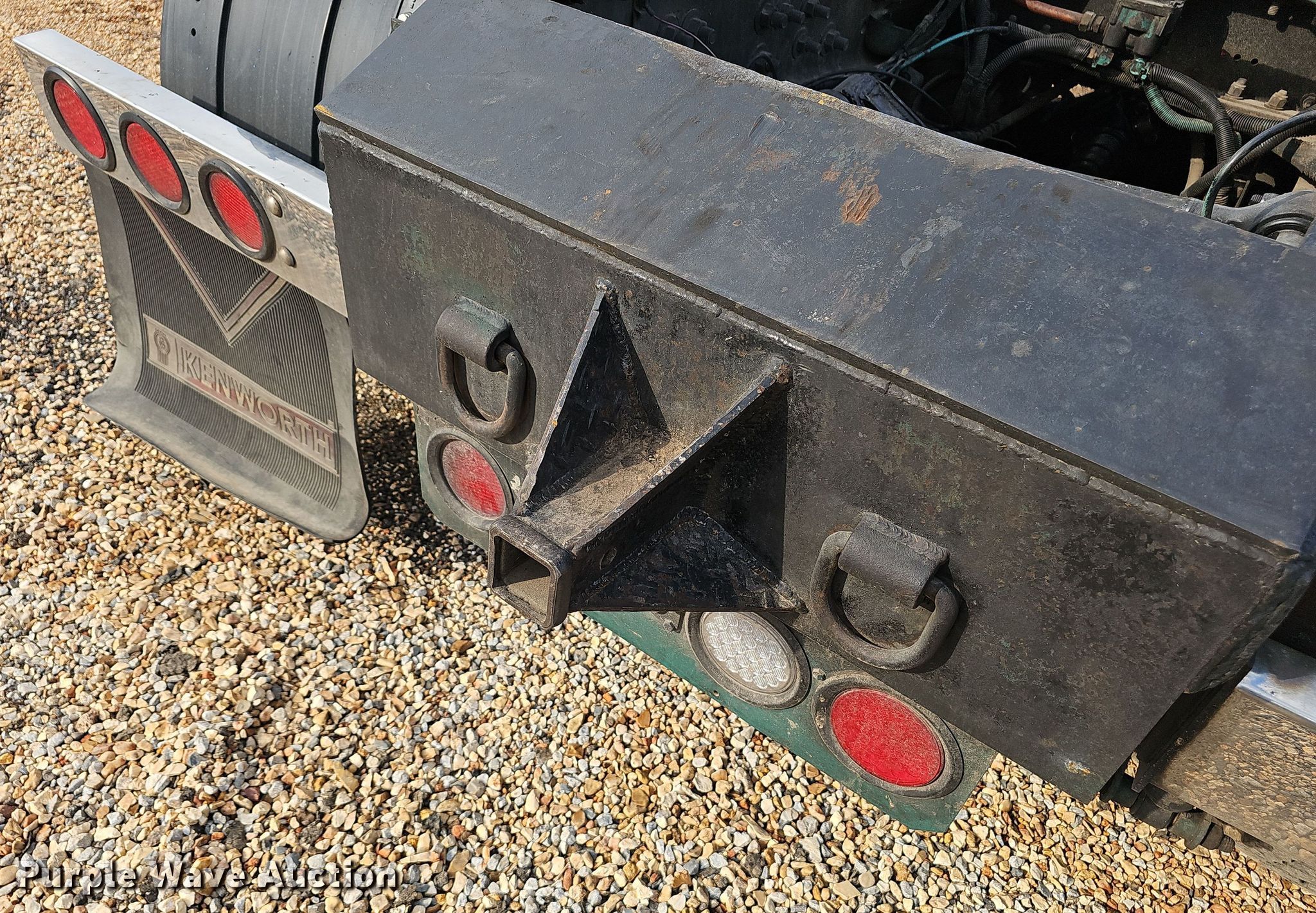 2000 Kenworth W900L semi truck. Miles: 568,380 on odometer, VIN: 1XKWDB9XXYR845203, Unit #: 5-403. Engine Catapullar 3406E, Displacement: 14.6L, Cylinders: 6, Fuel type: Diesel, Engine brake. Transmission Eaton Fuller, Manual. Chassis Axles: Tandem, Tag axle, Differential lock: Inter-axle, Suspension: Air Dump valves, Brakes: Air, PTO, Wet kit, Truck chassis: 16' 6". Interior AC, Heat, Heated mirrors, Cruise control, Air ride cab. Features Fifth wheel type: Air operated, Sliding, Fuel tank: Single. Tires Size: 11R22.5. Missouri title. Title distribution may be delayed up to 30 days from verification of funds. Emery Sapp & Sons, Inc.. Springdale, AR 72764