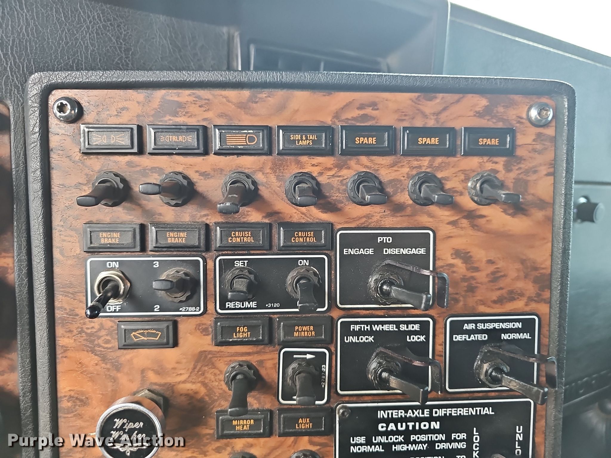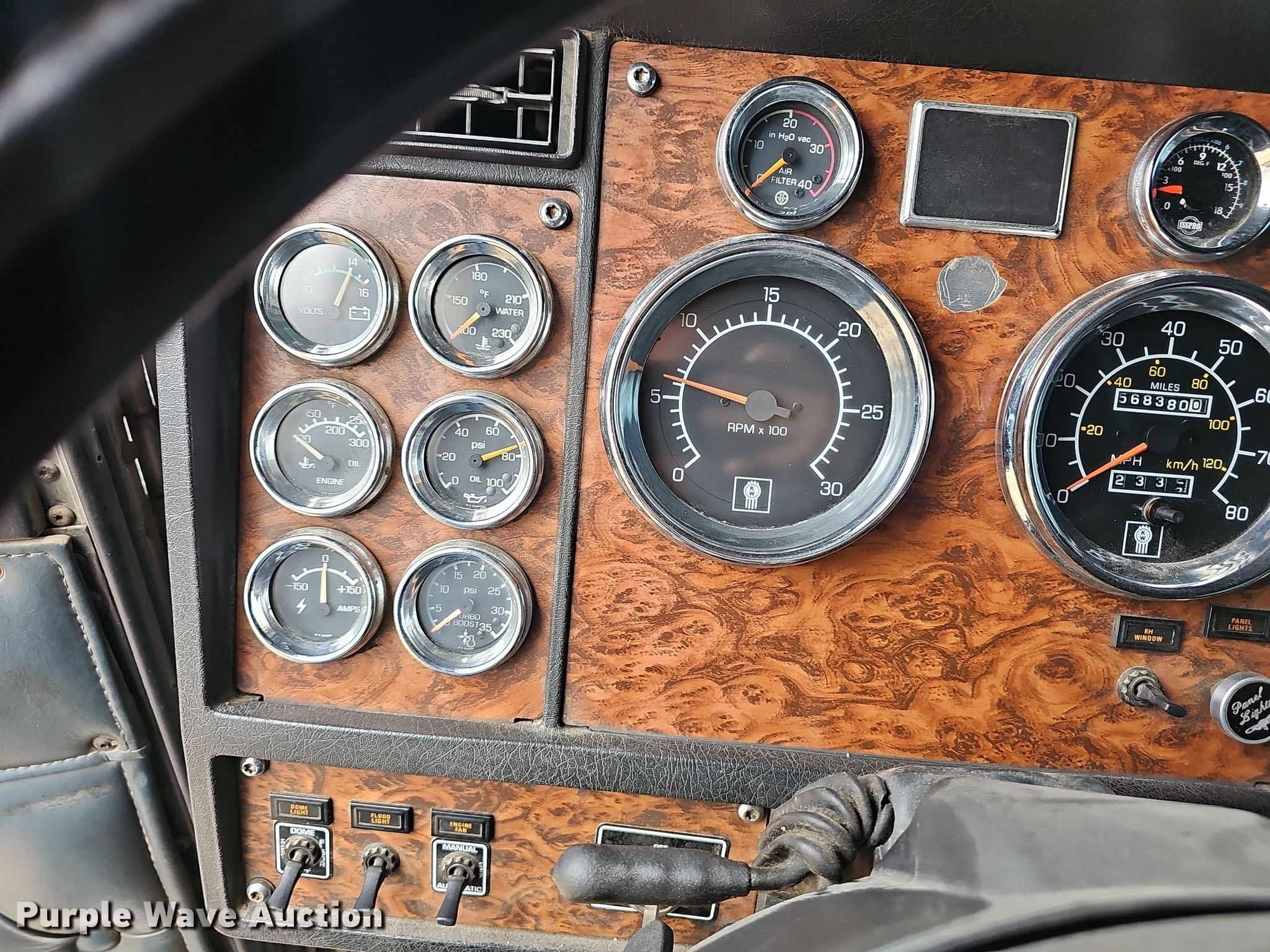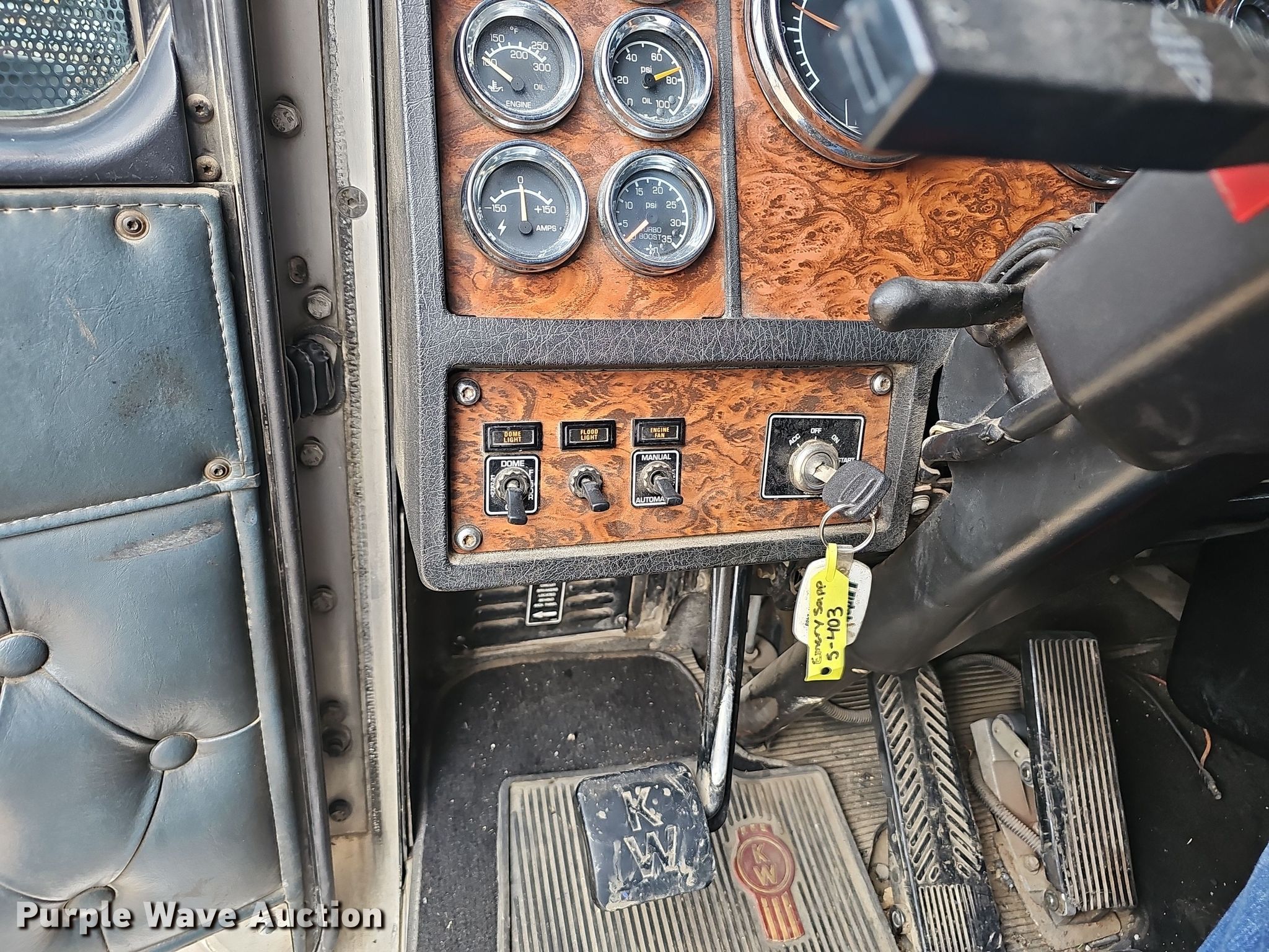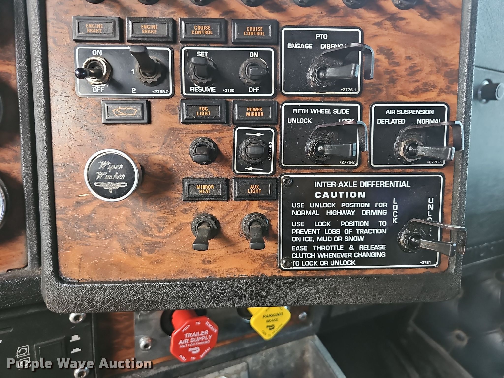 2000 Kenworth W900L semi truck. Miles: 568,380 on odometer, VIN: 1XKWDB9XXYR845203, Unit #: 5-403. Engine Catapullar 3406E, Displacement: 14.6L, Cylinders: 6, Fuel type: Diesel, Engine brake. Transmission Eaton Fuller, Manual. Chassis Axles: Tandem, Tag axle, Differential lock: Inter-axle, Suspension: Air Dump valves, Brakes: Air, PTO, Wet kit, Truck chassis: 16' 6". Interior AC, Heat, Heated mirrors, Cruise control, Air ride cab. Features Fifth wheel type: Air operated, Sliding, Fuel tank: Single. Tires Size: 11R22.5. Missouri title. Title distribution may be delayed up to 30 days from verification of funds. Emery Sapp & Sons, Inc.. Springdale, AR 72764
