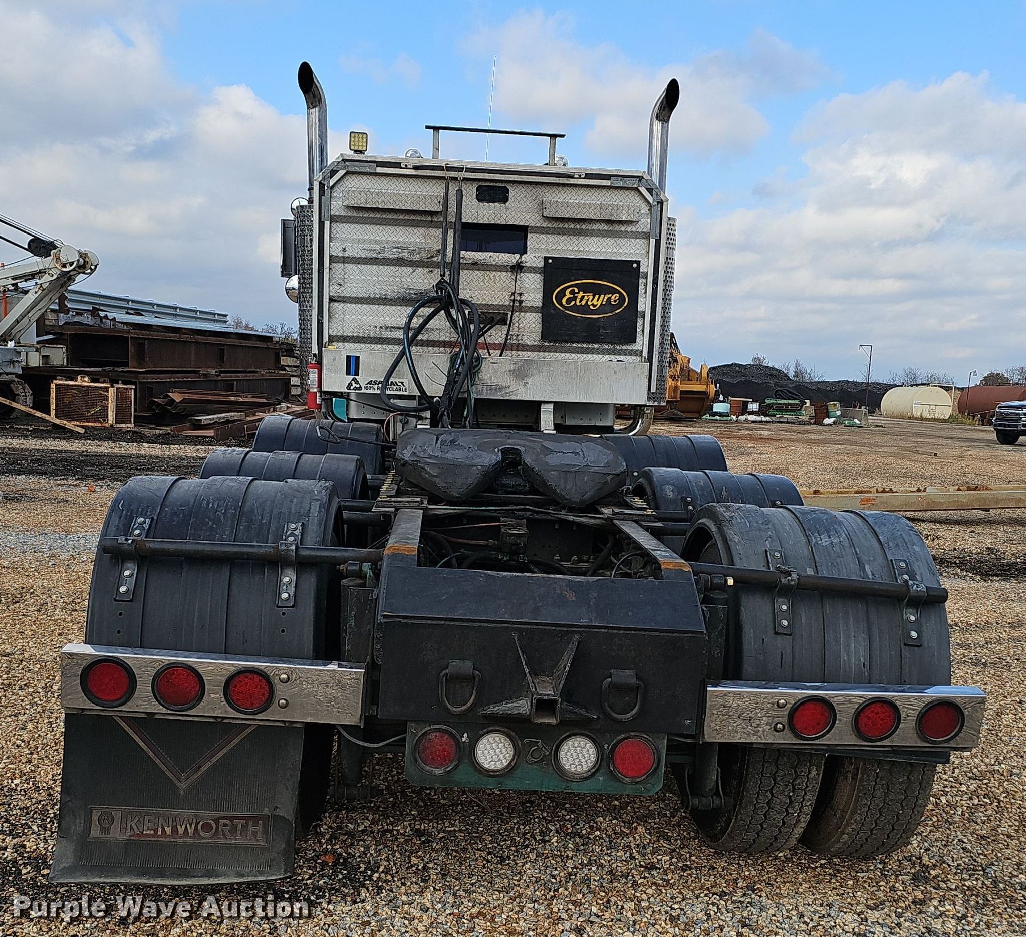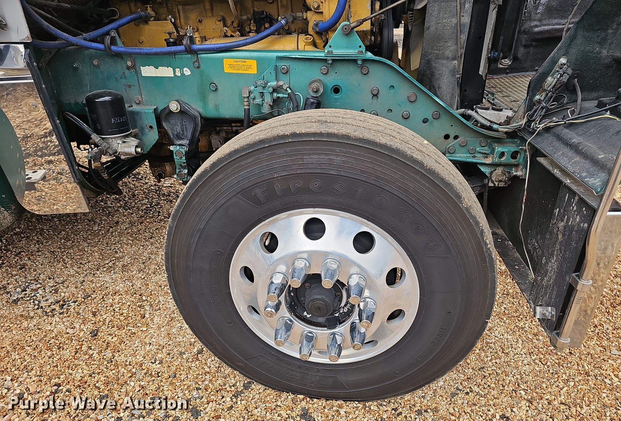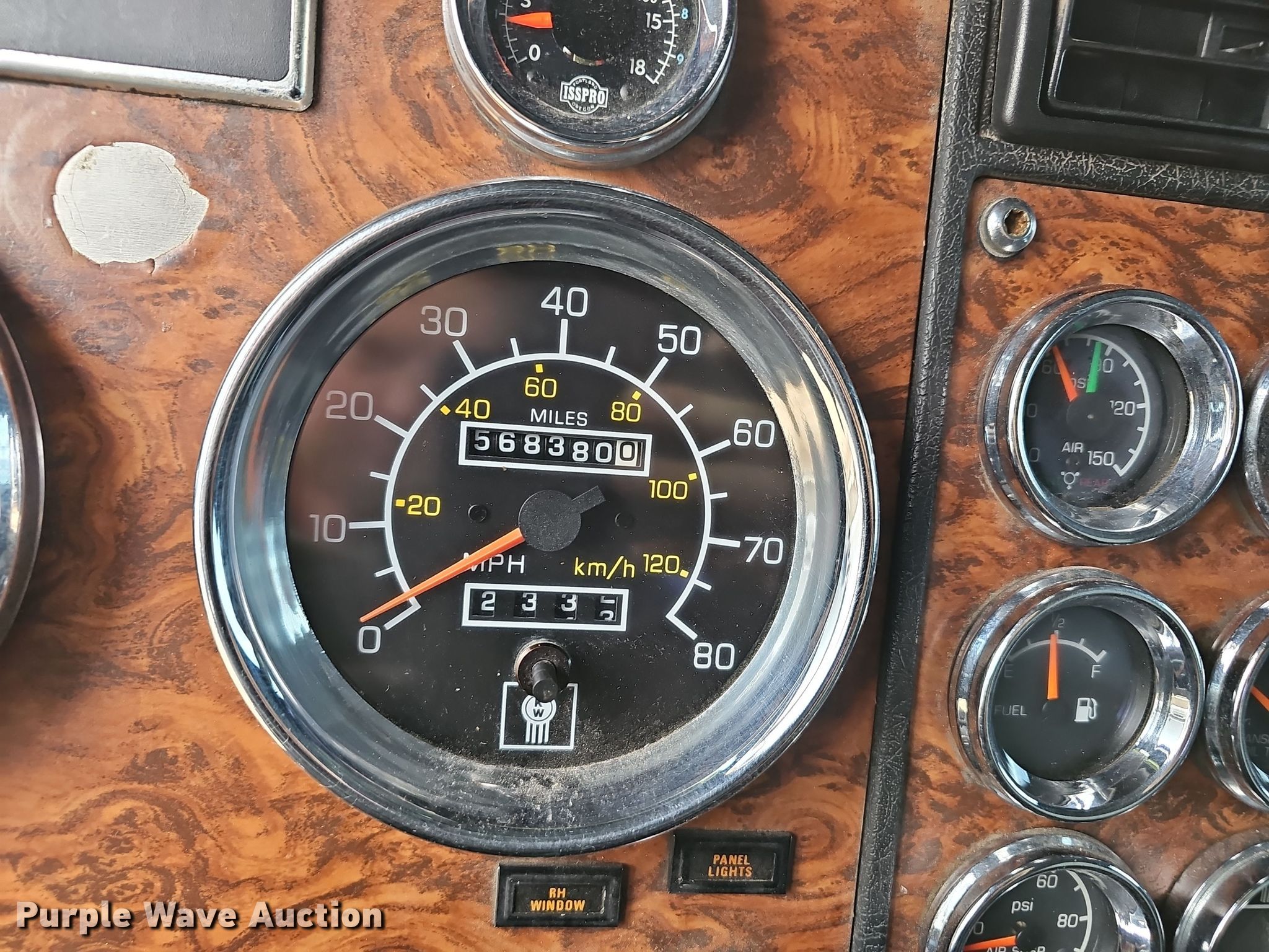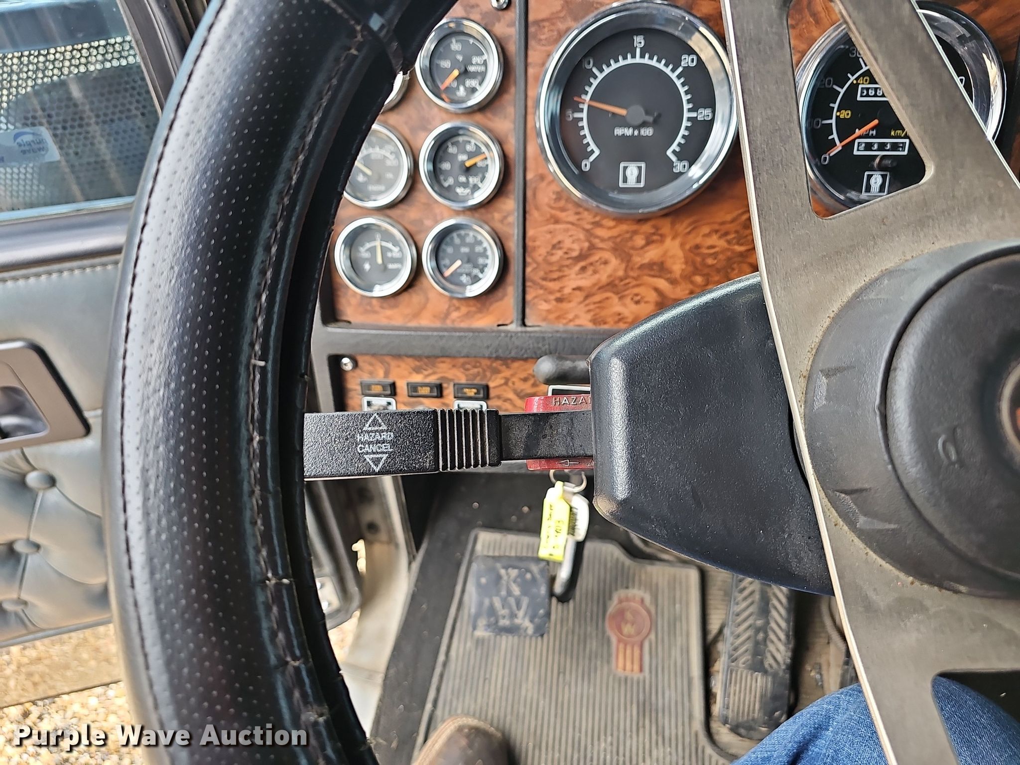 2000 Kenworth W900L semi truck. Miles: 568,380 on odometer, VIN: 1XKWDB9XXYR845203, Unit #: 5-403. Engine Catapullar 3406E, Displacement: 14.6L, Cylinders: 6, Fuel type: Diesel, Engine brake. Transmission Eaton Fuller, Manual. Chassis Axles: Tandem, Tag axle, Differential lock: Inter-axle, Suspension: Air Dump valves, Brakes: Air, PTO, Wet kit, Truck chassis: 16' 6". Interior AC, Heat, Heated mirrors, Cruise control, Air ride cab. Features Fifth wheel type: Air operated, Sliding, Fuel tank: Single. Tires Size: 11R22.5. Missouri title. Title distribution may be delayed up to 30 days from verification of funds. Emery Sapp & Sons, Inc.. Springdale, AR 72764
