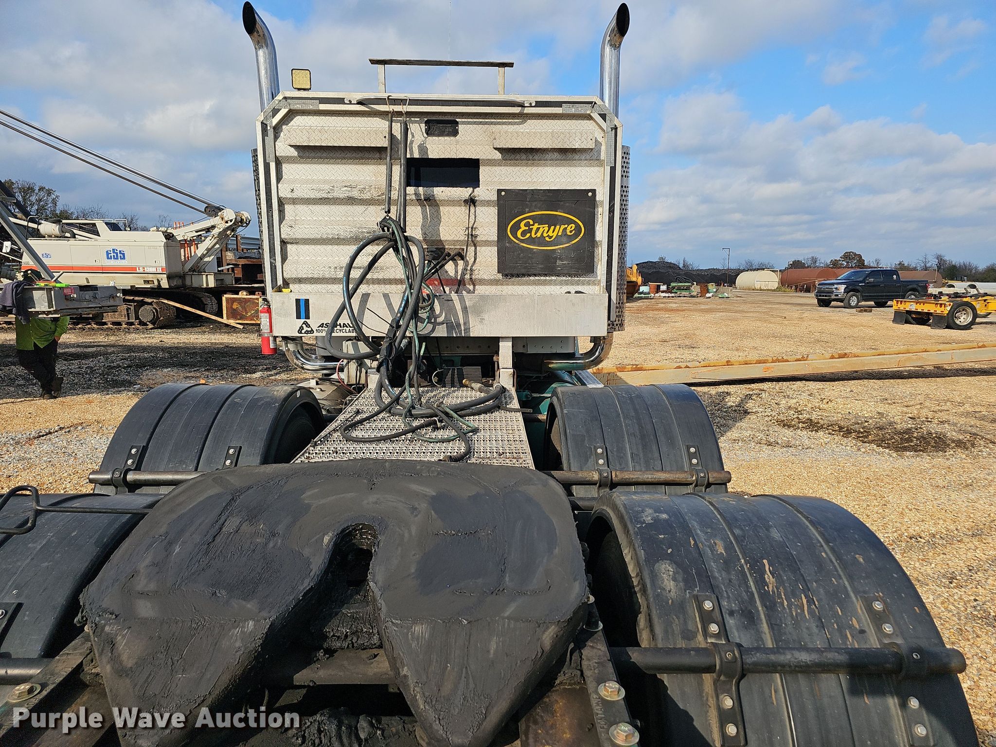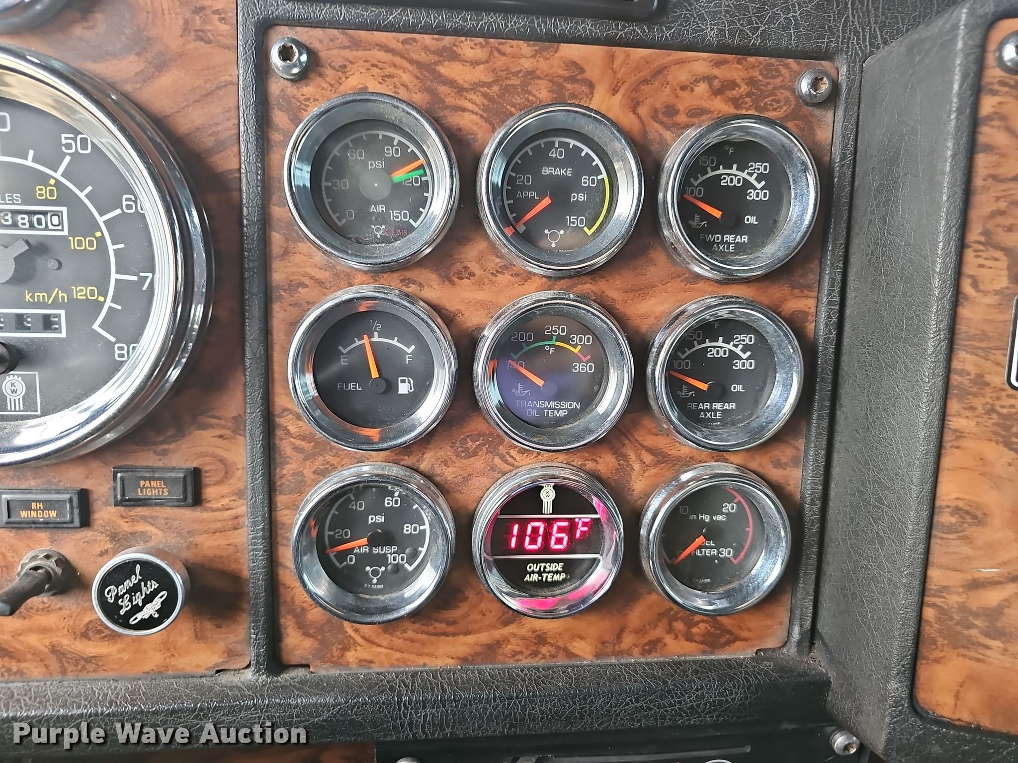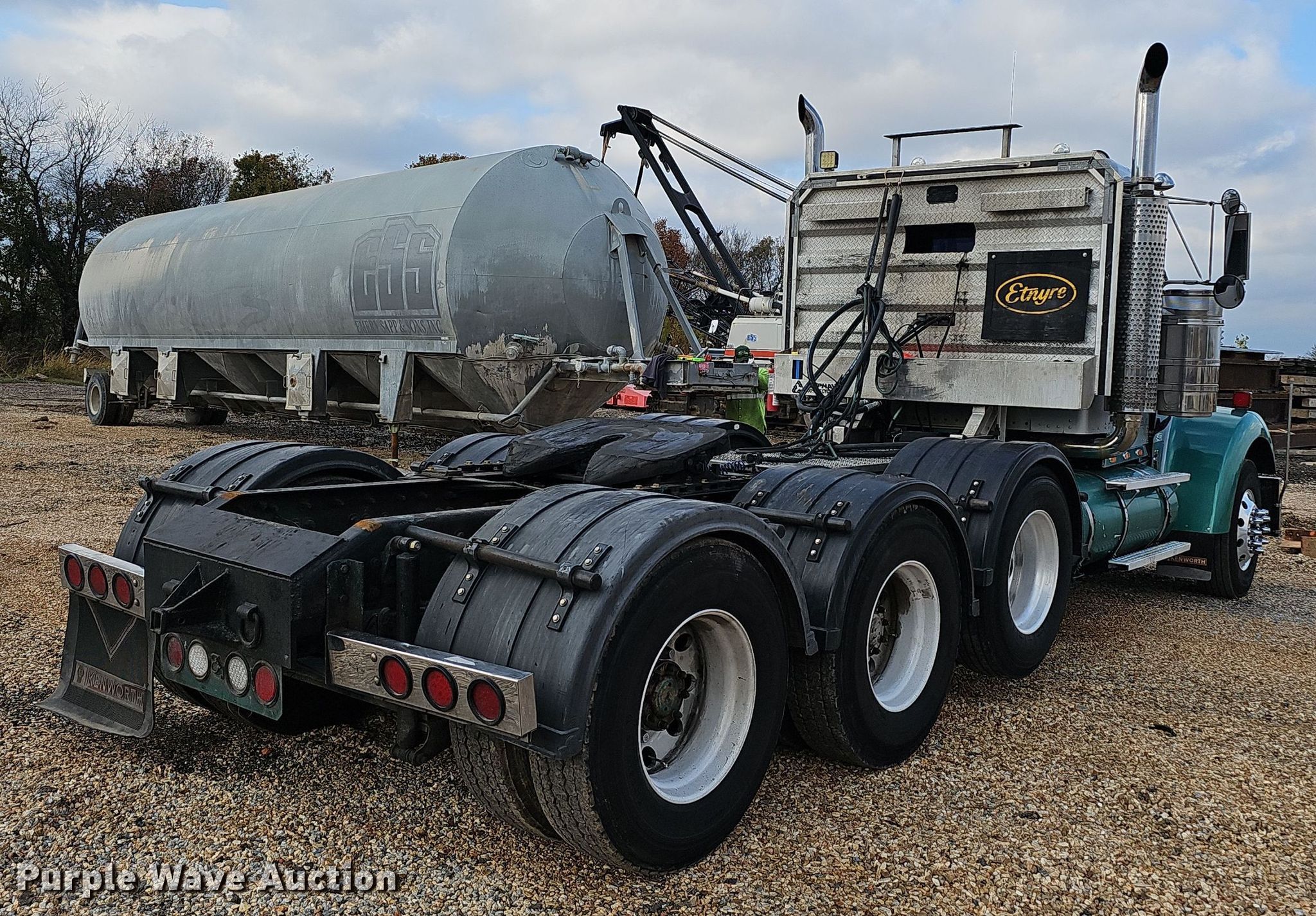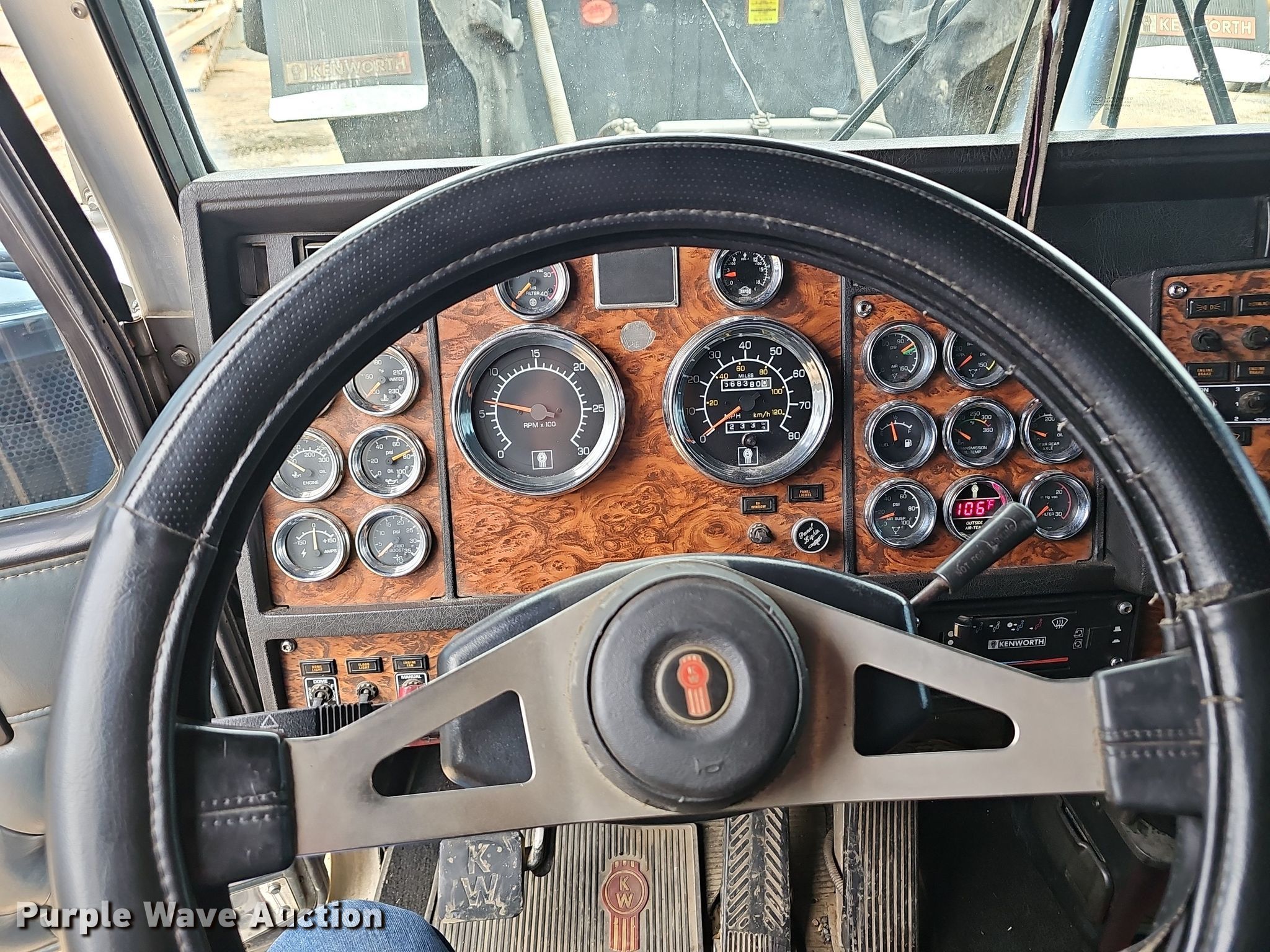 2000 Kenworth W900L semi truck. Miles: 568,380 on odometer, VIN: 1XKWDB9XXYR845203, Unit #: 5-403. Engine Catapullar 3406E, Displacement: 14.6L, Cylinders: 6, Fuel type: Diesel, Engine brake. Transmission Eaton Fuller, Manual. Chassis Axles: Tandem, Tag axle, Differential lock: Inter-axle, Suspension: Air Dump valves, Brakes: Air, PTO, Wet kit, Truck chassis: 16' 6". Interior AC, Heat, Heated mirrors, Cruise control, Air ride cab. Features Fifth wheel type: Air operated, Sliding, Fuel tank: Single. Tires Size: 11R22.5. Missouri title. Title distribution may be delayed up to 30 days from verification of funds. Emery Sapp & Sons, Inc.. Springdale, AR 72764