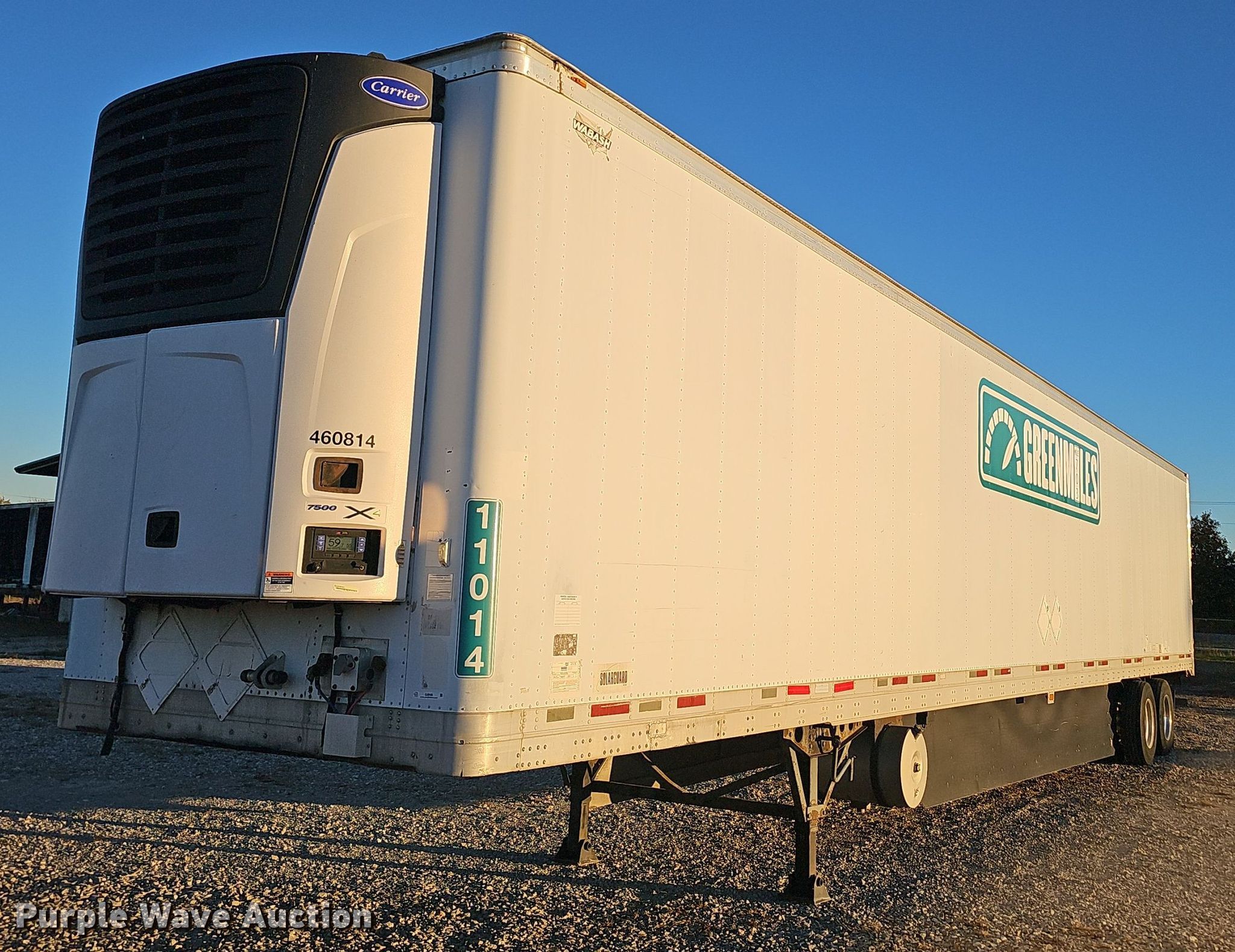 2008 Wabash refrigerated van trailer. VIN: 1JJV532W18L004523, Unit #: 11014. Dimensions Overall: 53' L x 102" W, Rear door / ramp 102" L x 98" W. Features Deck type: Aluminum, Refrigeration unit Carrier 7500 X4, Hours: 11,245. Chassis Landing gear: Dual, Suspension: Air, Brakes: Air, Axles: Tandem, GVWR: 68,000 lbs. Tires Aluminum wheels, Size: 295/75R22.5. Missouri title. Title distribution may be delayed up to 14 days from verification of funds. Greenmiles Inc.. Strafford, MO 65757