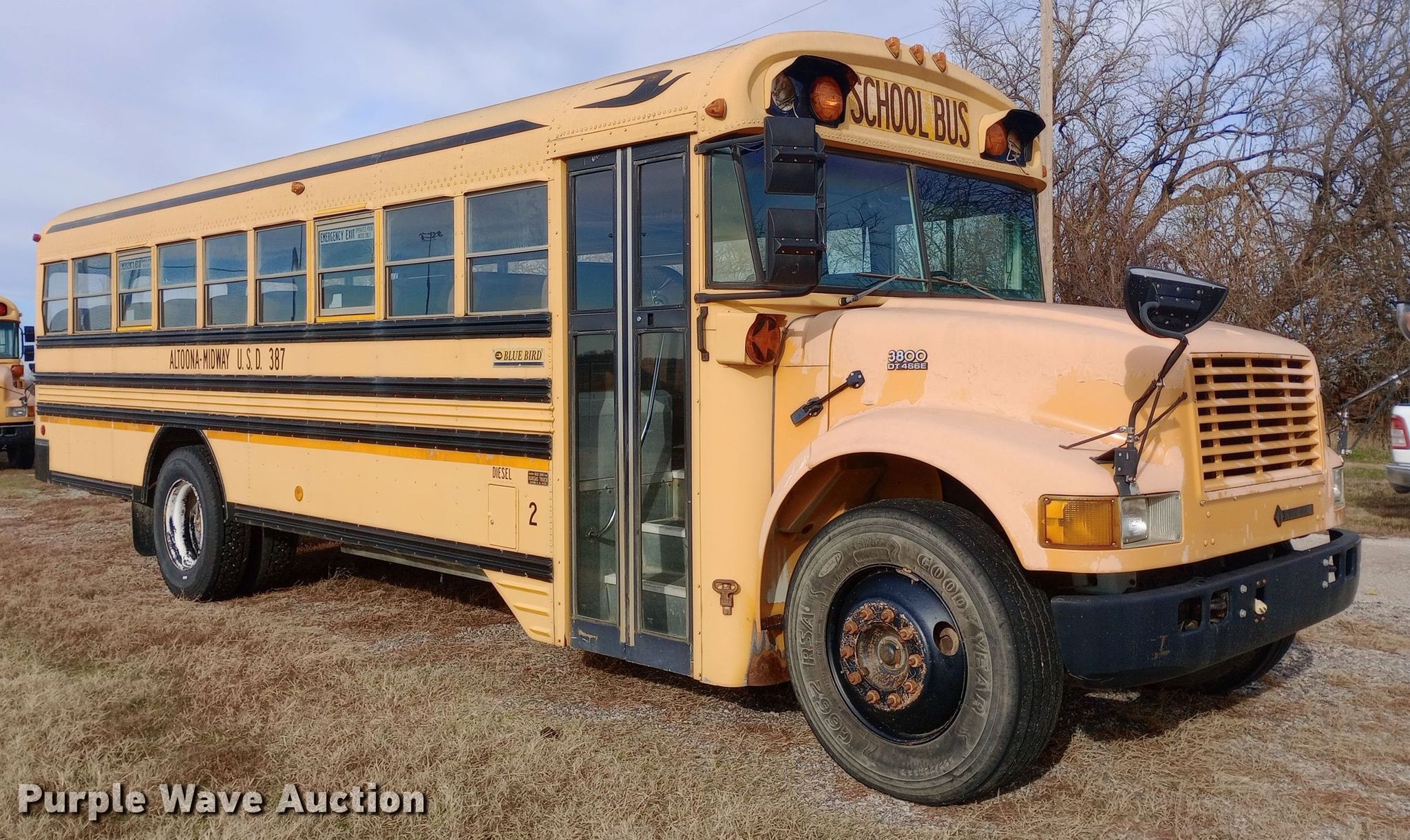 This 2000 International 3800 school bus will sell to the highest bidder regardless of price.