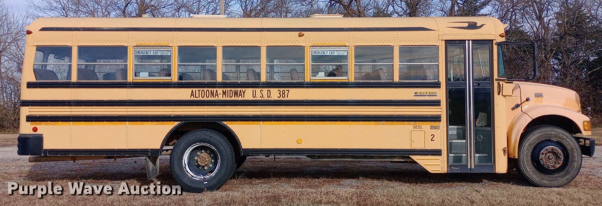 Purple Wave is selling a used Bus in Kansas. This item is a 2000 International 3800 school bus with the following: Miles: 141,392 on odometer, Hours: 5,620 on meter, VIN: 1HVB5AAM9YH331497, Unit #: 2