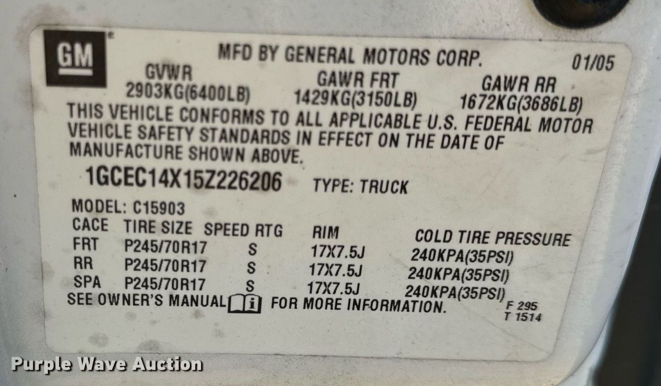 - VIN: 1GCEC14X15Z226206