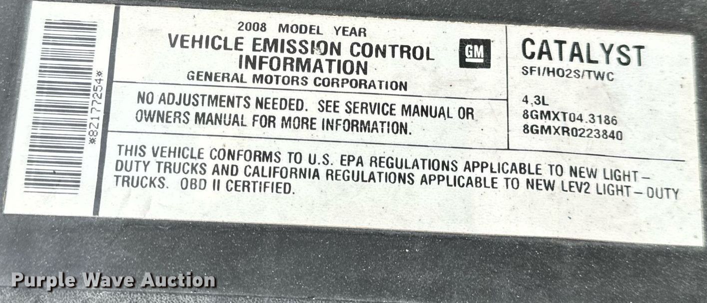 2008 Chevrolet Silverado 1500 pickup truck. Miles: 174,771 on odometer, VIN: 1GCEC14X18Z177254, Unit #: B6494. Engine Displacement: 4.3L V6 OHV, Cylinders: 6, Fuel type: Gas. Interior AC, Heat, Cruise control. Tires Size: LT245/70R17. Notes Dash warning indicator: TPMS. Missouri title. Title distribution may be delayed up to 14 days from verification of funds. Missouri Department of Transportation. New Bloomfield, MO 65063