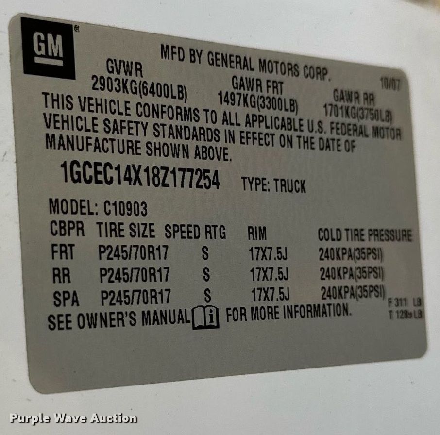 • VIN: 1GCEC14X18Z177254