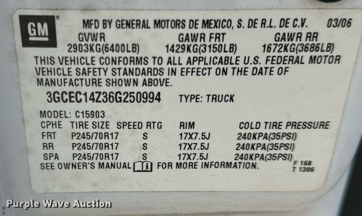 - VIN: 3GCEC14Z36G250994