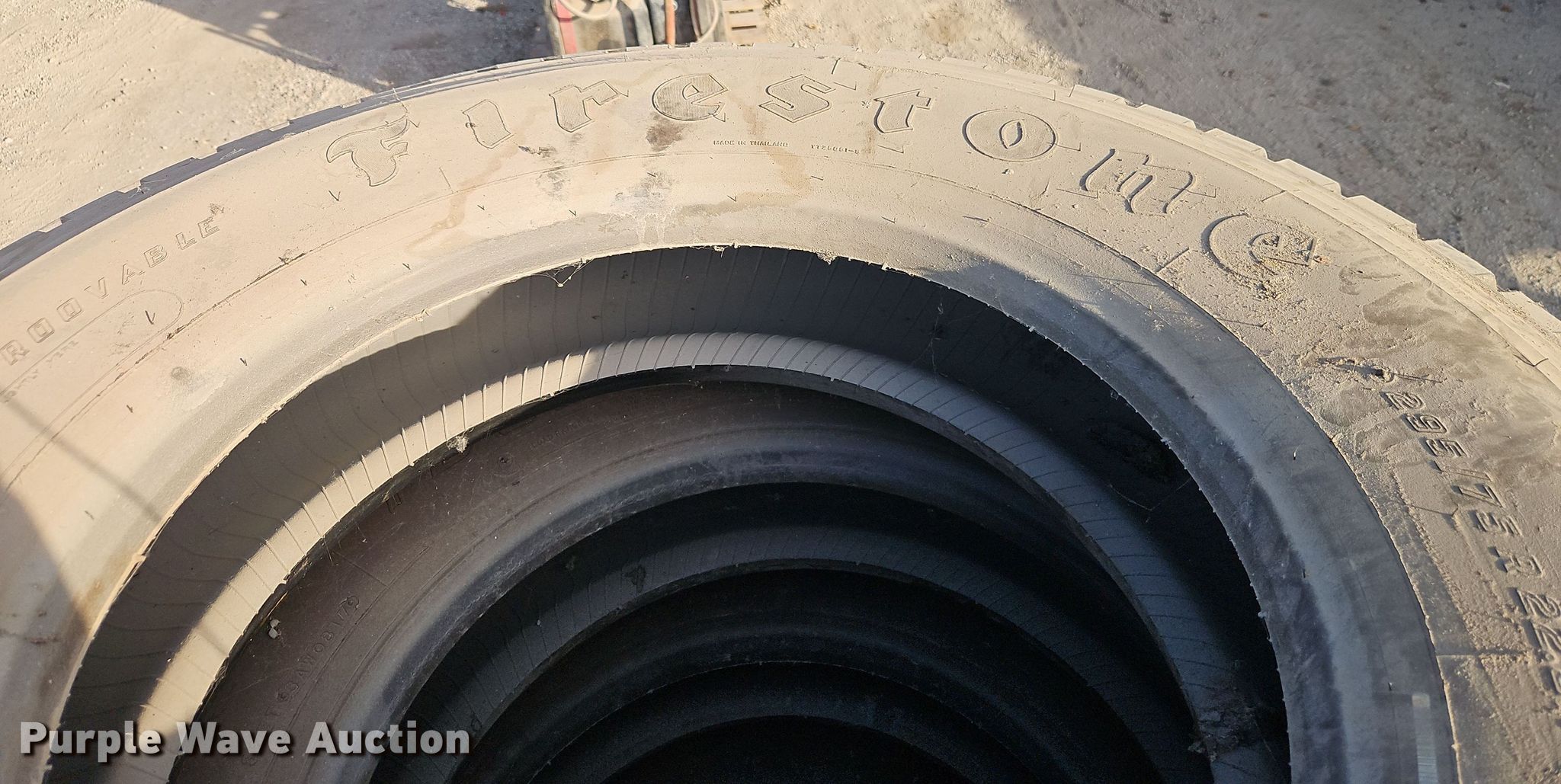 Purple Wave is selling a used Fleet Tires in Kansas. This item is a (6) Firestone 295/75R22.5 tires with the following: (6) Firestone 295/75R22.5 tires. Neosho County, KS. Erie, KS 66733