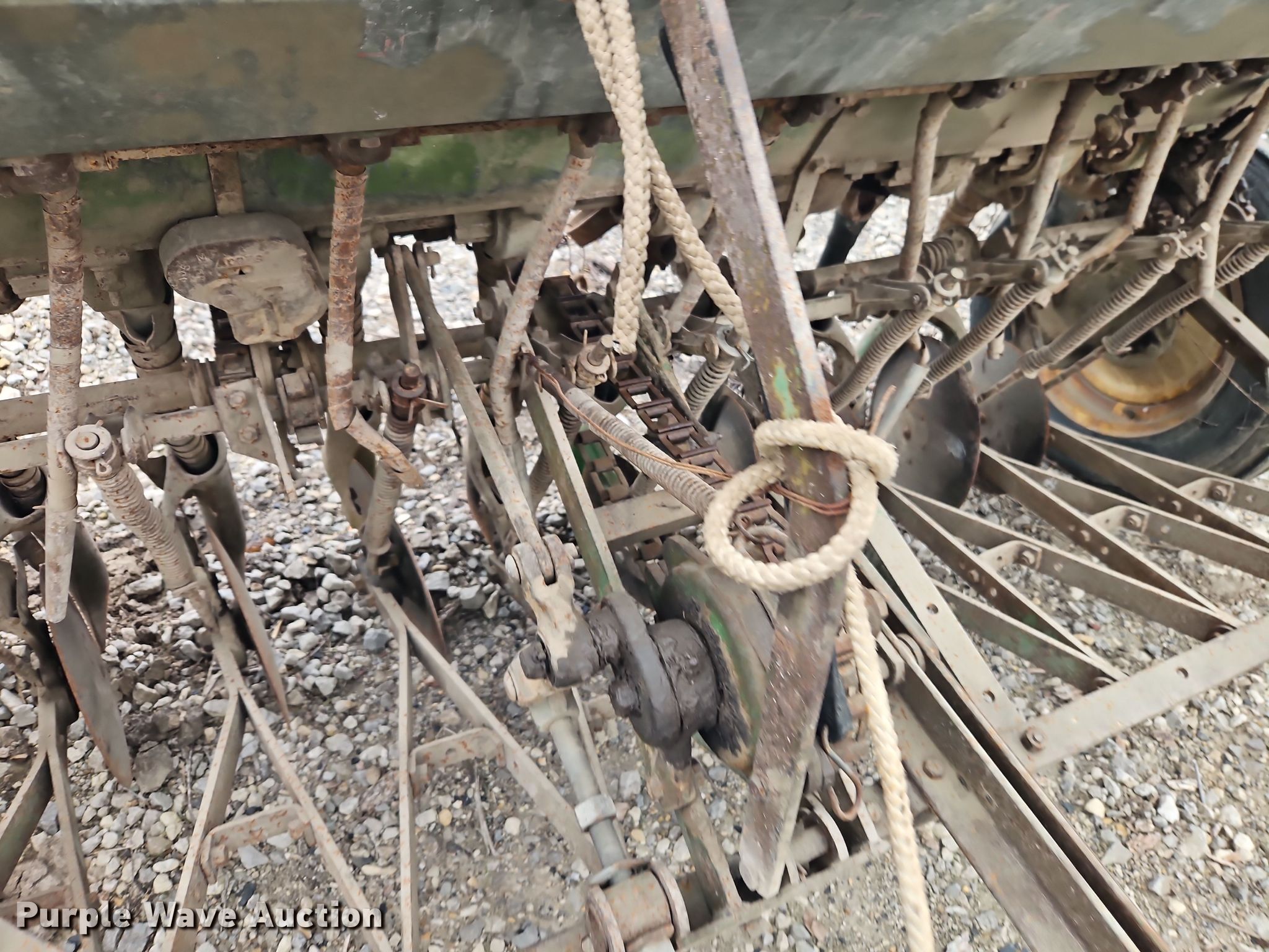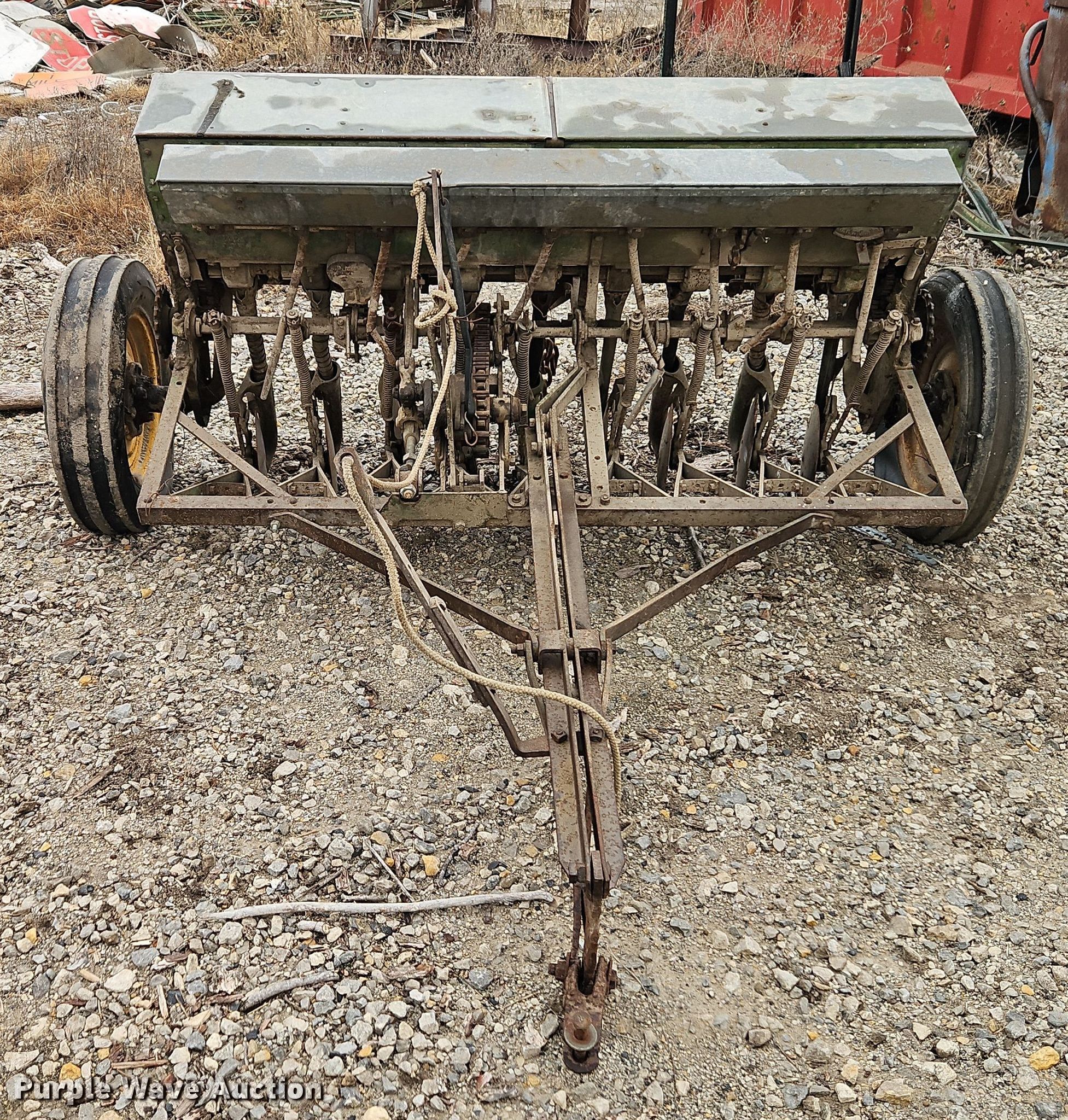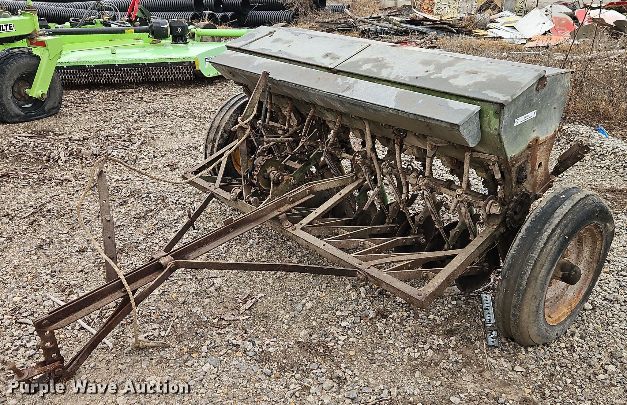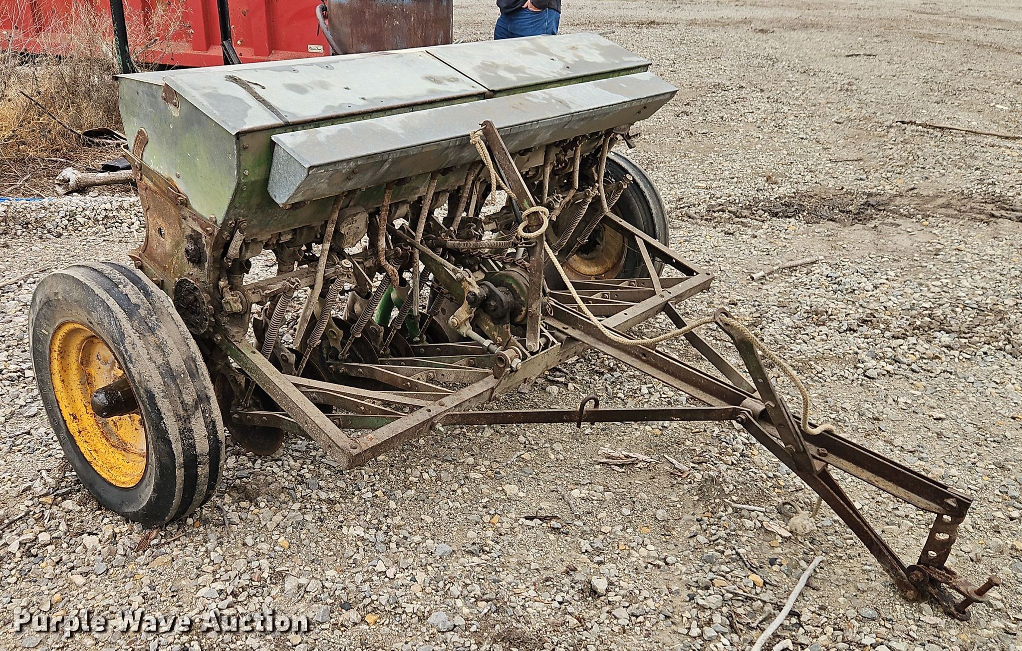 Purple Wave is selling a used Grain Drill or Seeder in Kansas. This item is a John Deere grain drill with the following: Width: 5', Row units: 9, Row spacing: 7"