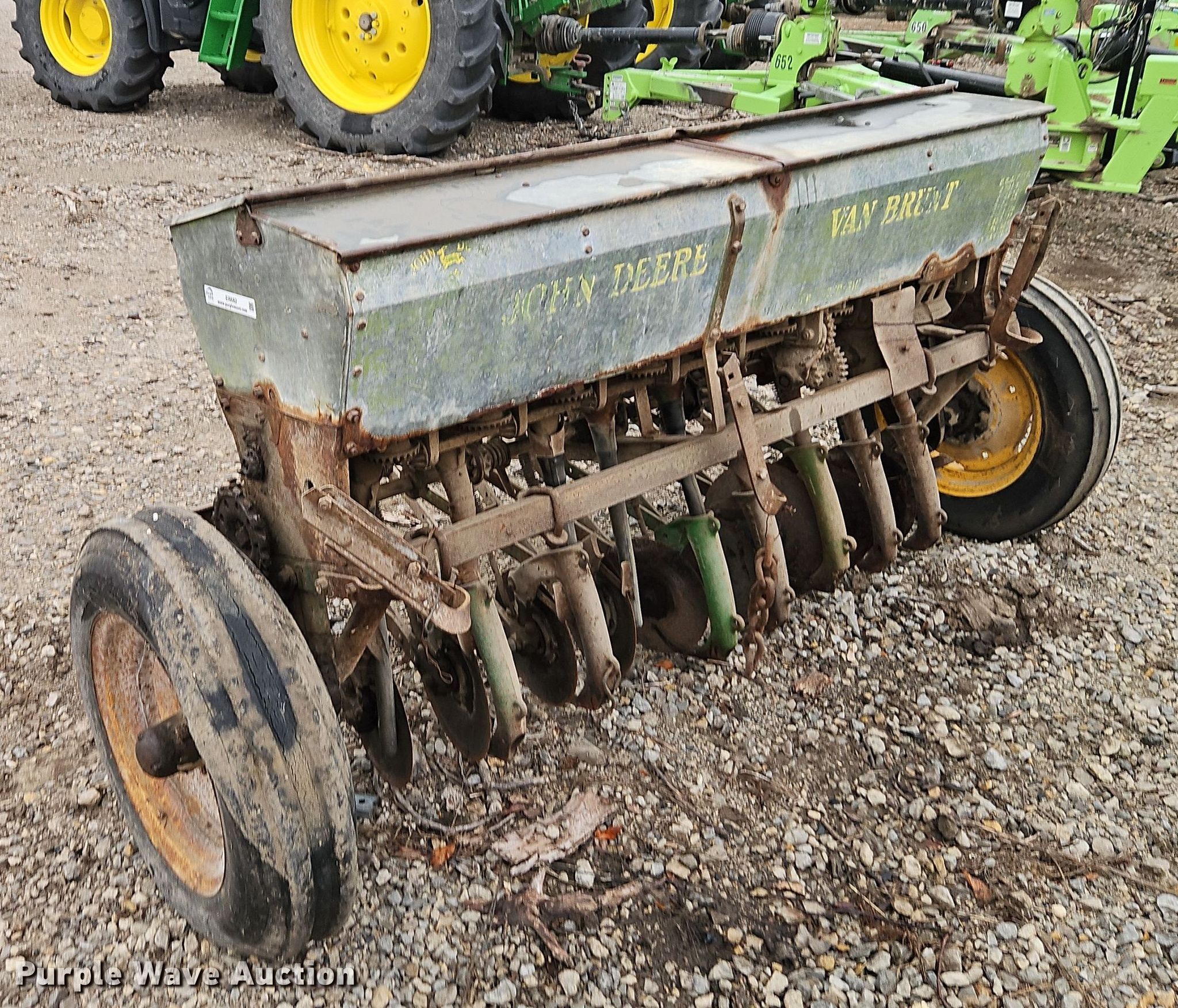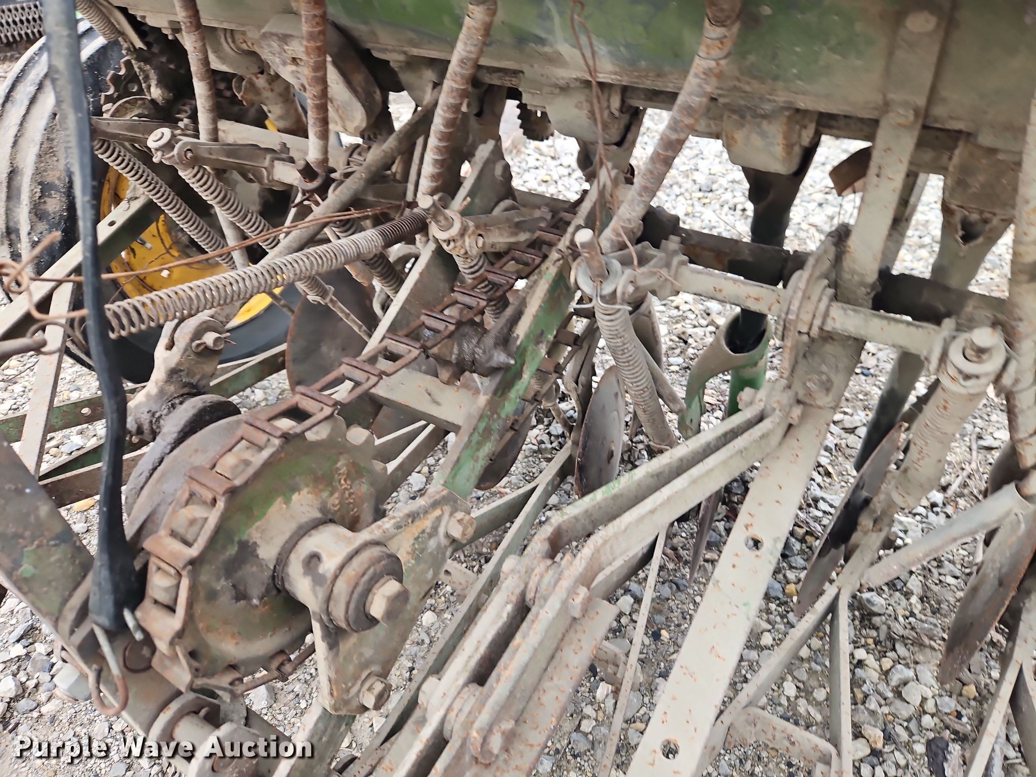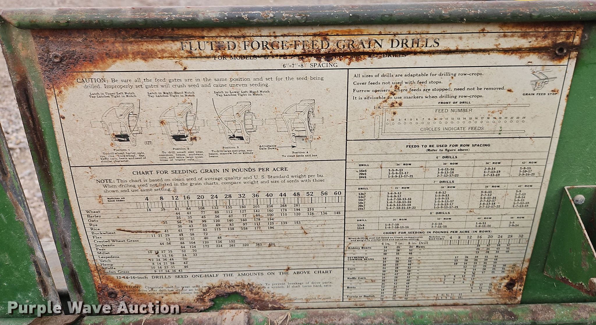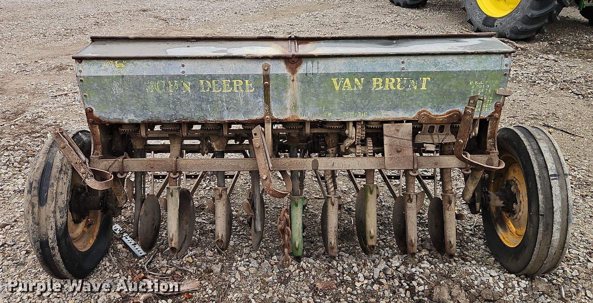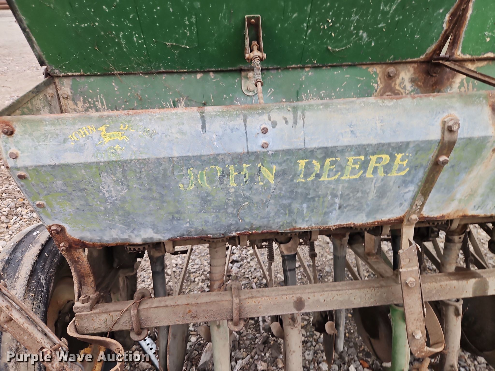 Purple Wave is selling a used Grain Drill or Seeder in Kansas. This item is a John Deere grain drill with the following: Width: 5', Row units: 9, Row spacing: 7"