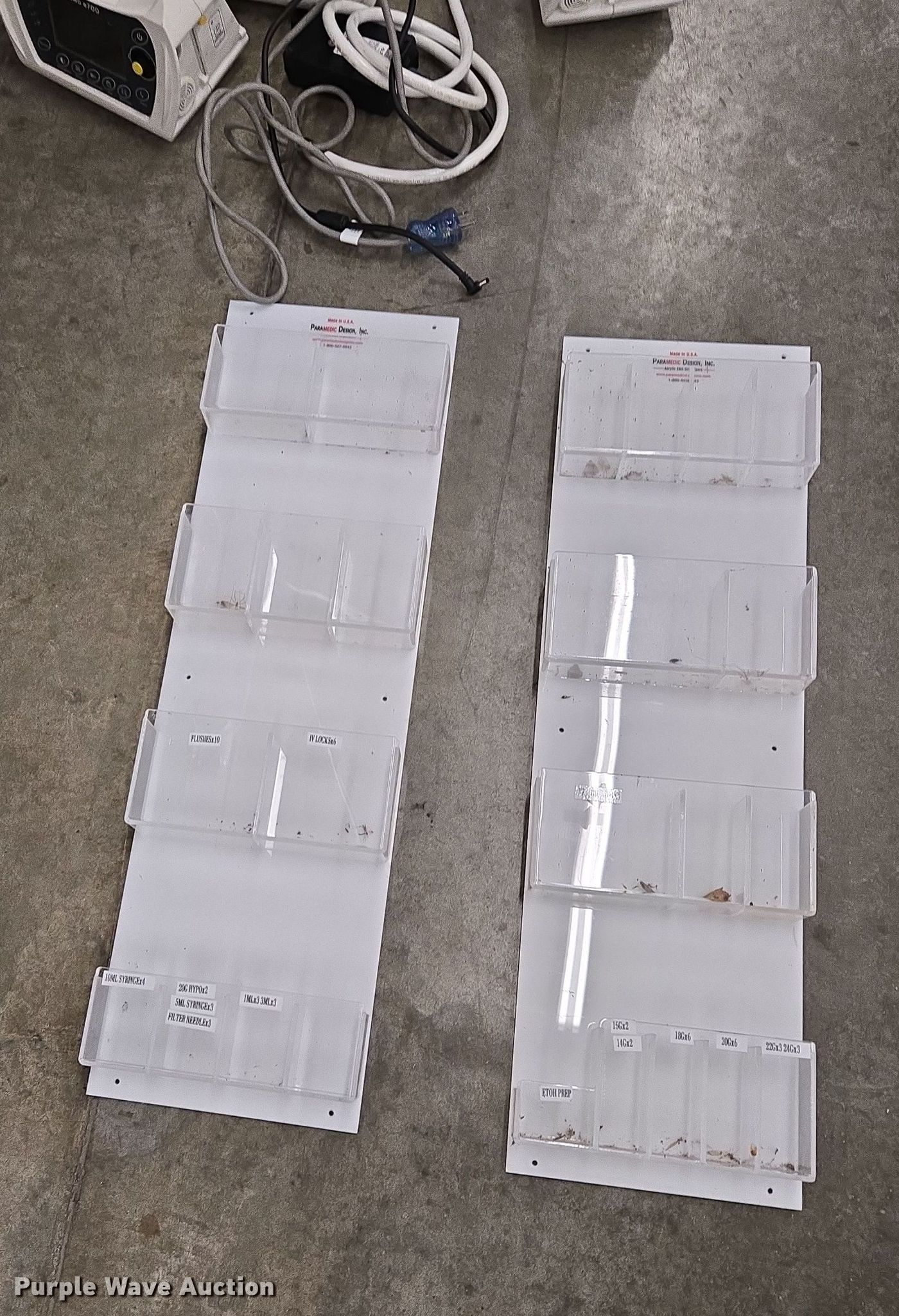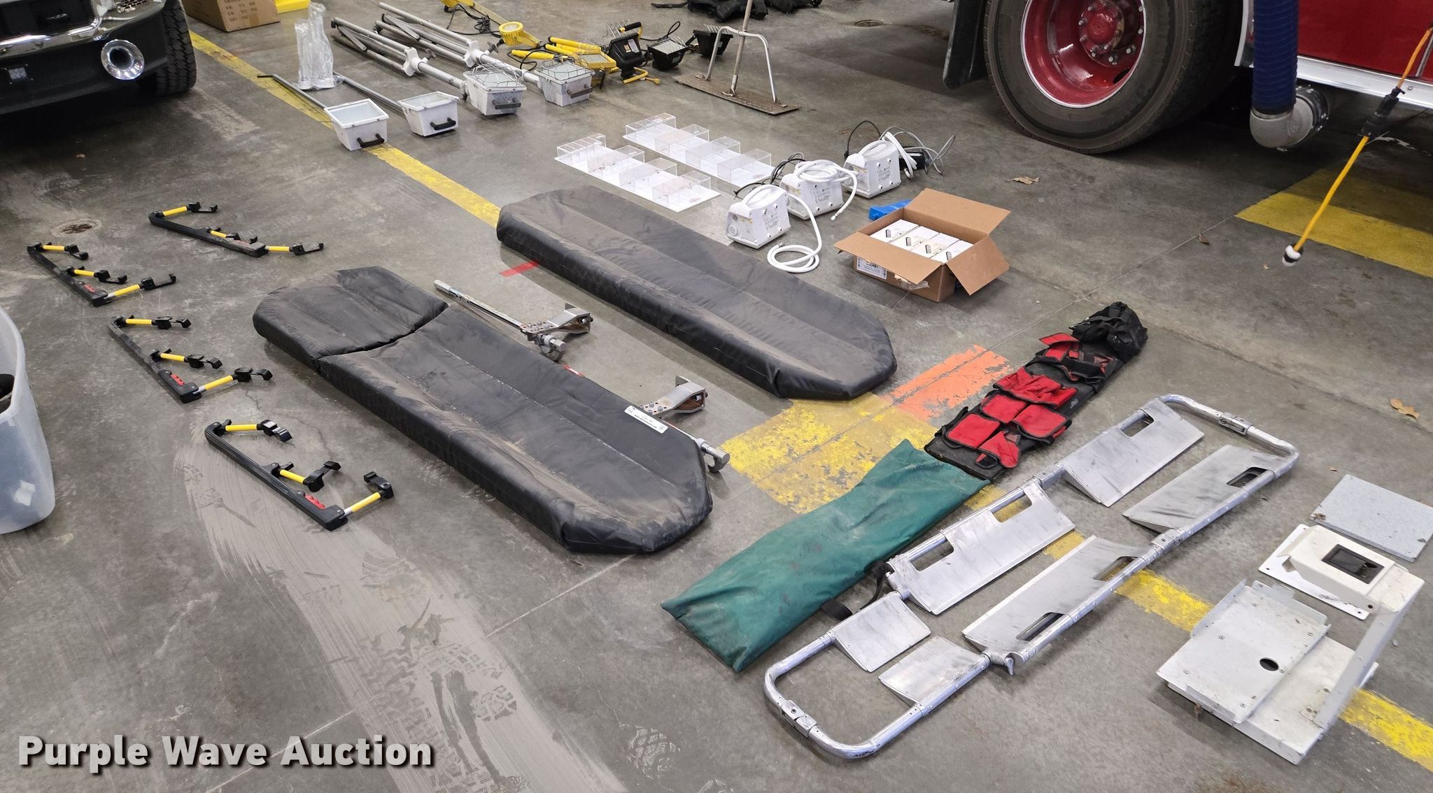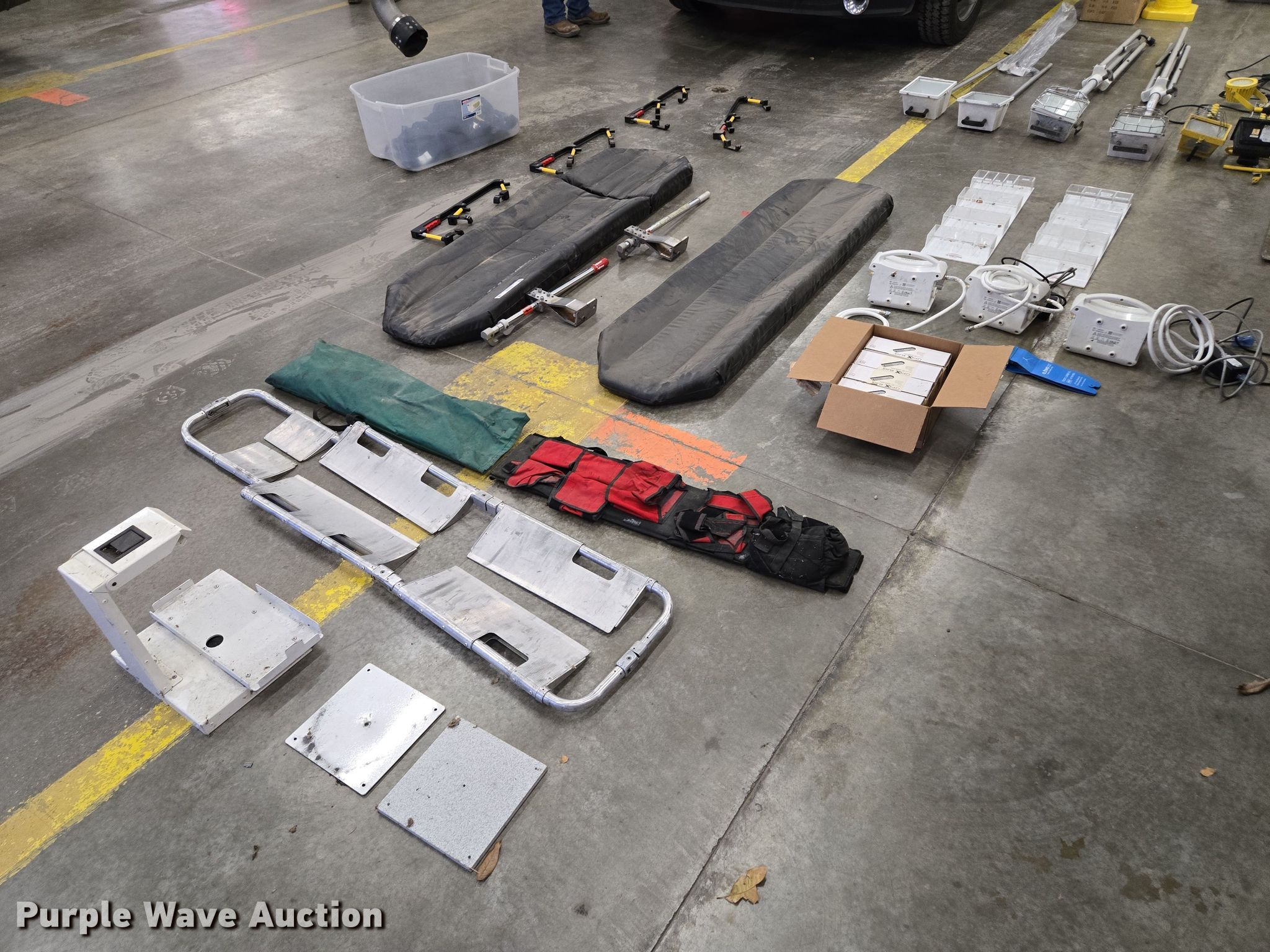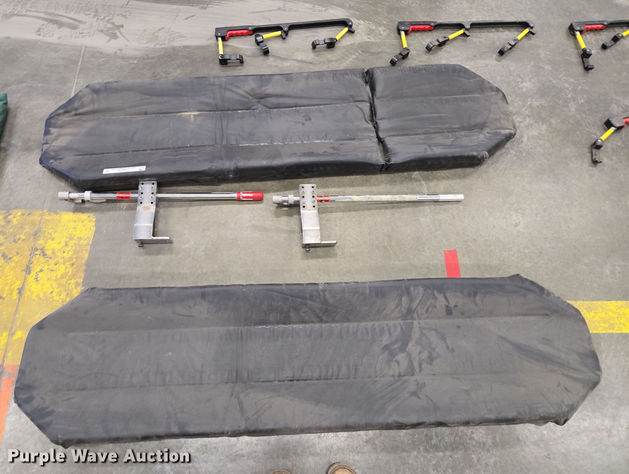 Purple Wave is selling a used Medical Equip. in Missouri. This item is a Medical equipment with the following: (4) CompX eLock electronic keypads, (4) stretcher rails, (3) O-two e700 ventilators, (2) stretcher pads, Back board