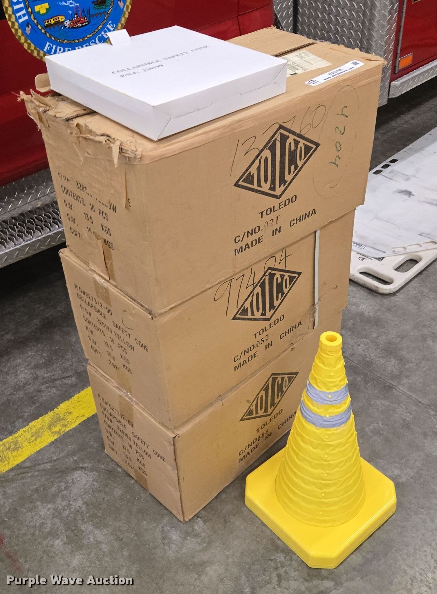 Purple Wave is selling a used Road Safety Equip. in Missouri. This item is a (30) Tolco collapsible cones with the following: (30) Tolco collapsible cones . City of Lexington Street Dept. Lexington, MO 64067