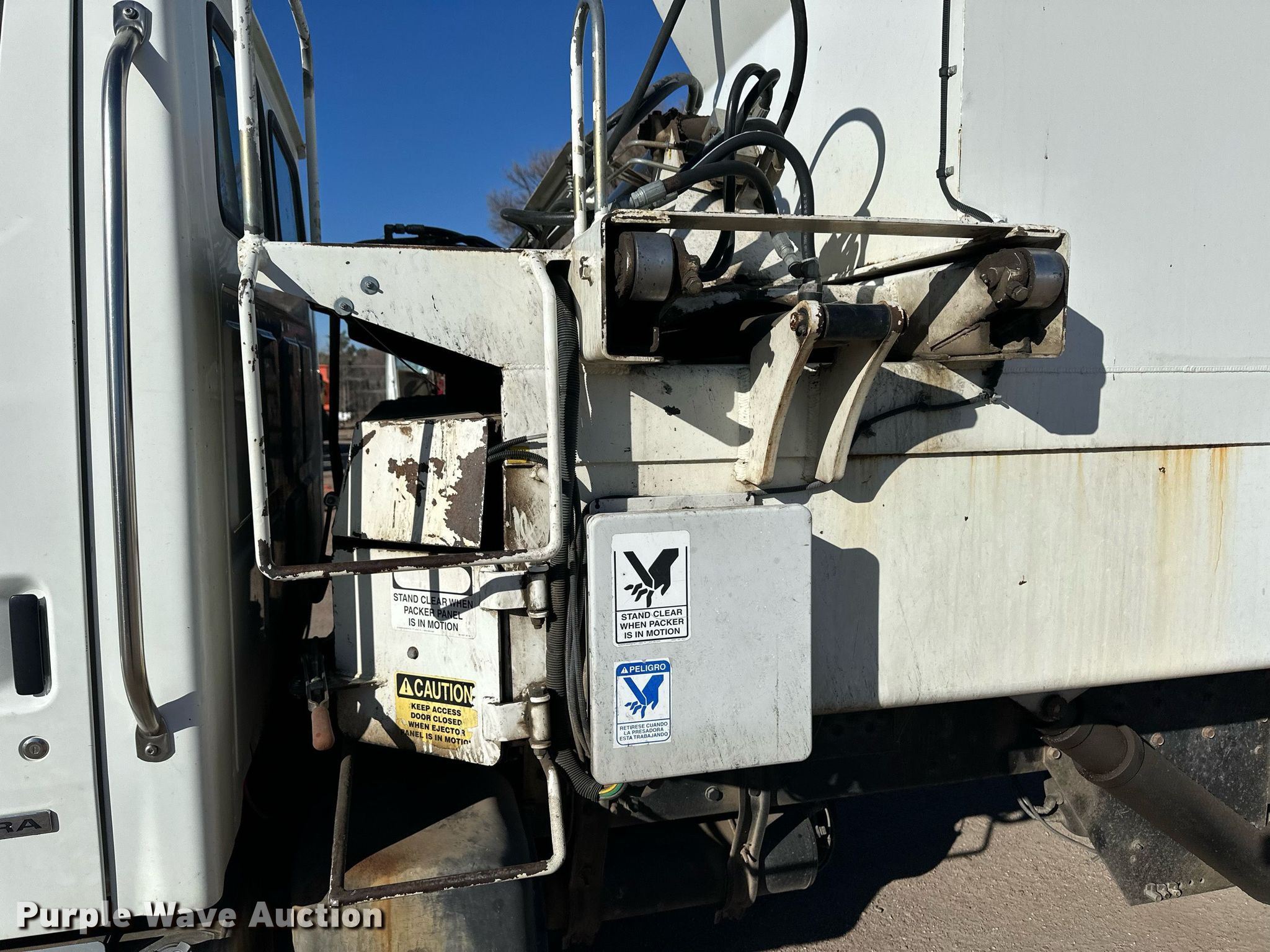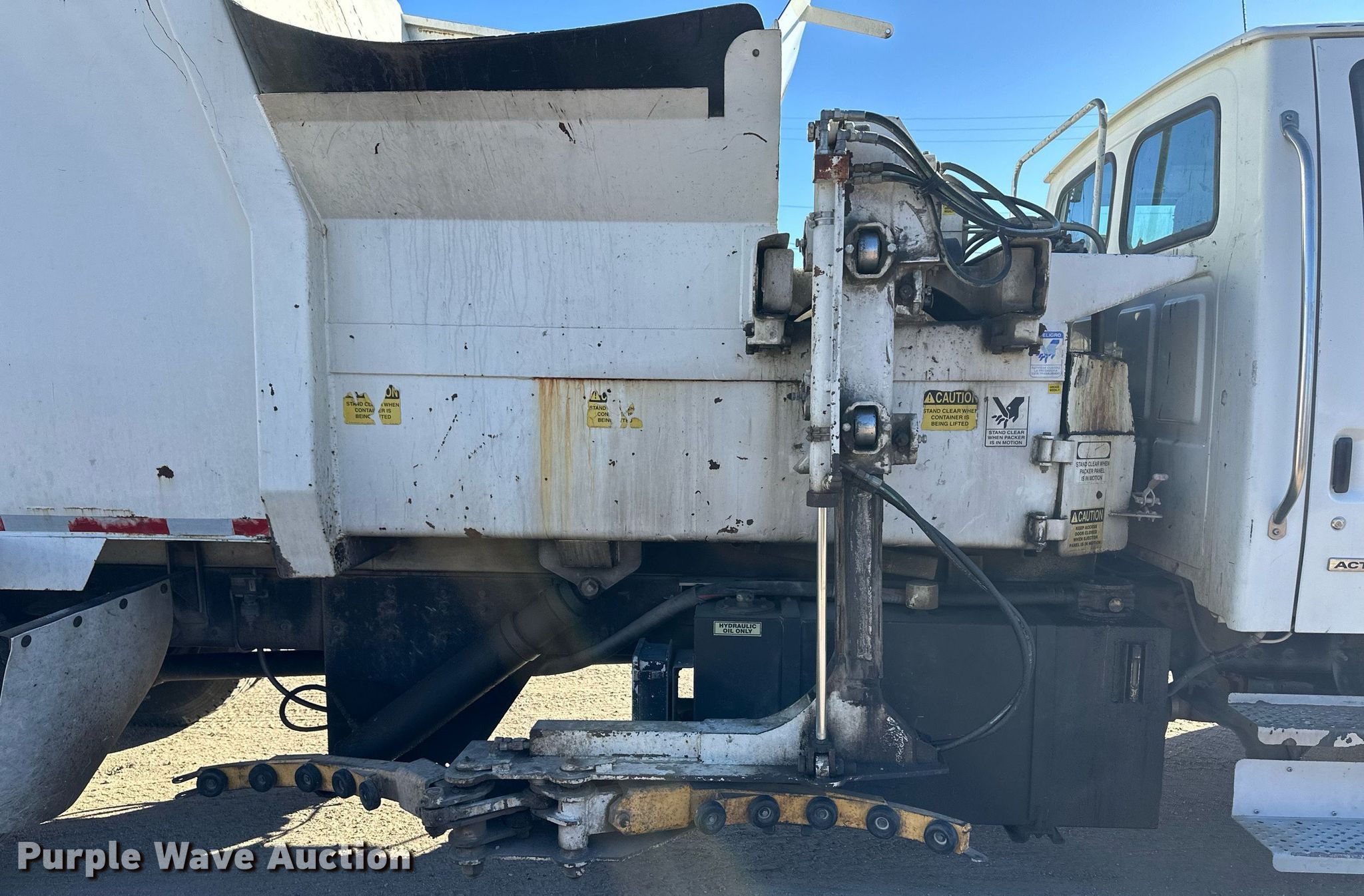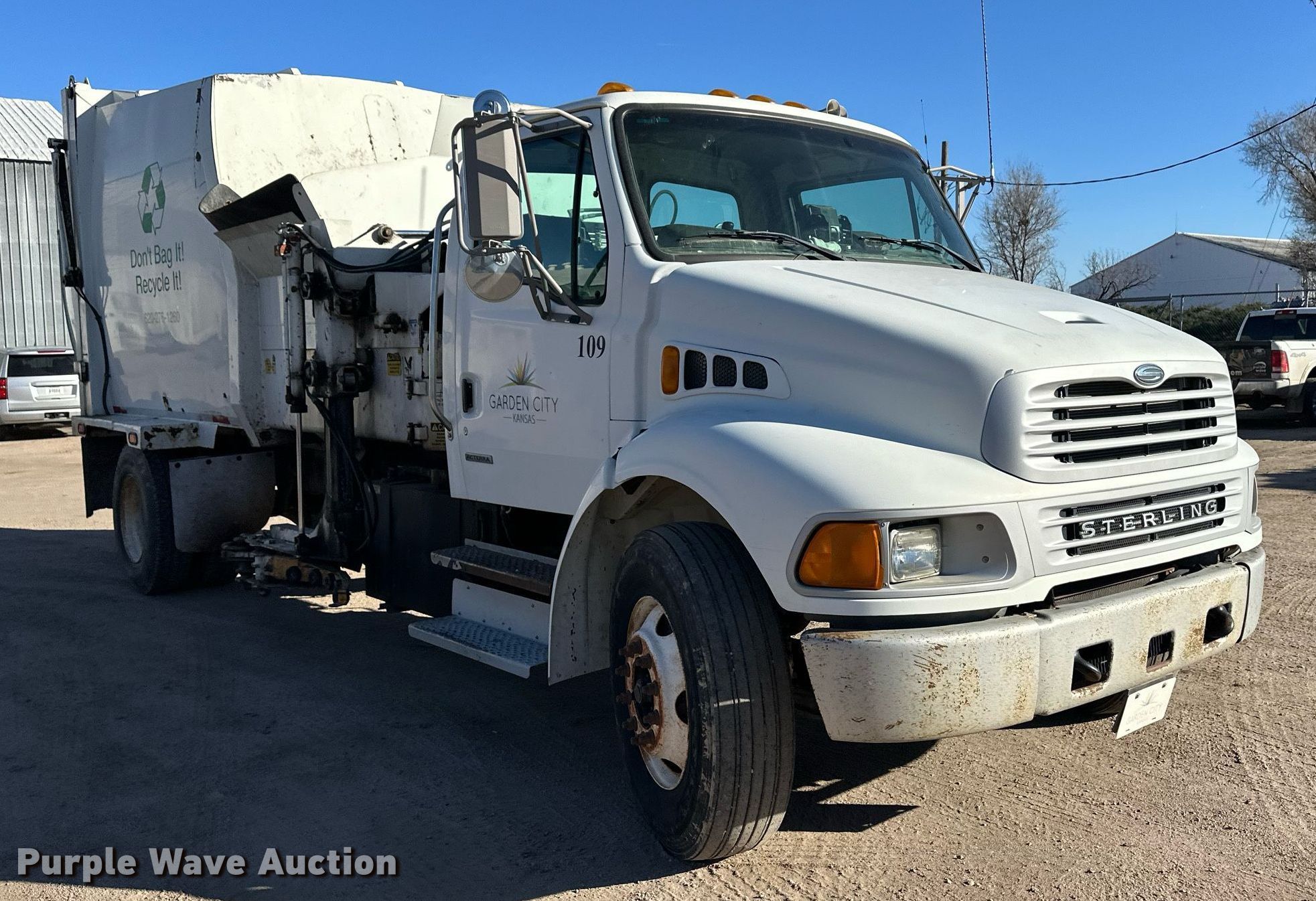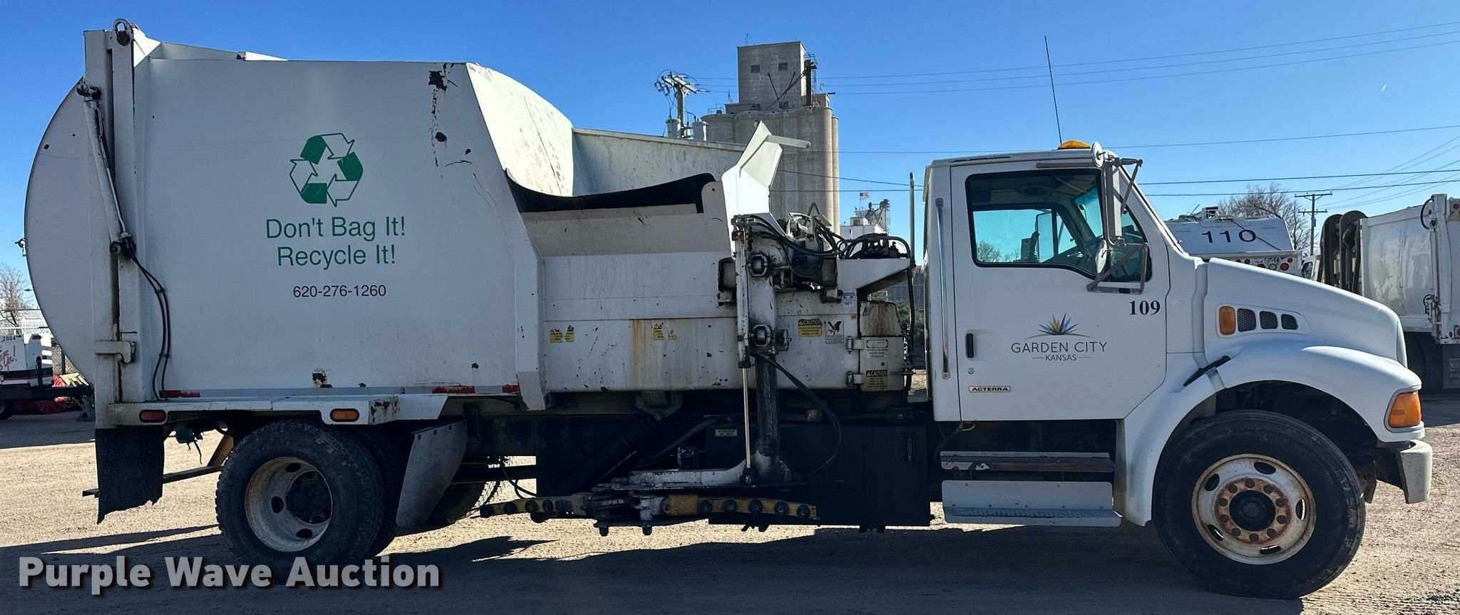 2009 Sterling Acterra refuse truck. Miles: 75,255 on odometer, Hours: 11,664 on meter, VIN: 2FZACGBSX9AAE3718. Engine Cummins, Displacement: 8.3L, Cylinders: 6, Fuel type: Diesel. Transmission Allison, Automatic. Chassis Axles: Single, Suspension: Spring, Brakes: Air, PTO, GVWR: 33,000 lbs. Interior AC, Heat, Cruise control, Backup camera, Dual operator stations. Features Refuse bed Capacity: 20 cu.yd., Load: Side, Cart tipper. Tires Size: 11R22.5. Notes Additional lift arm included Unused, Windshield chipped or cracked. Kansas title. Title distribution may be delayed up to 14 days from verification of funds. Garden City Utilities Department. Garden City, KS 67846