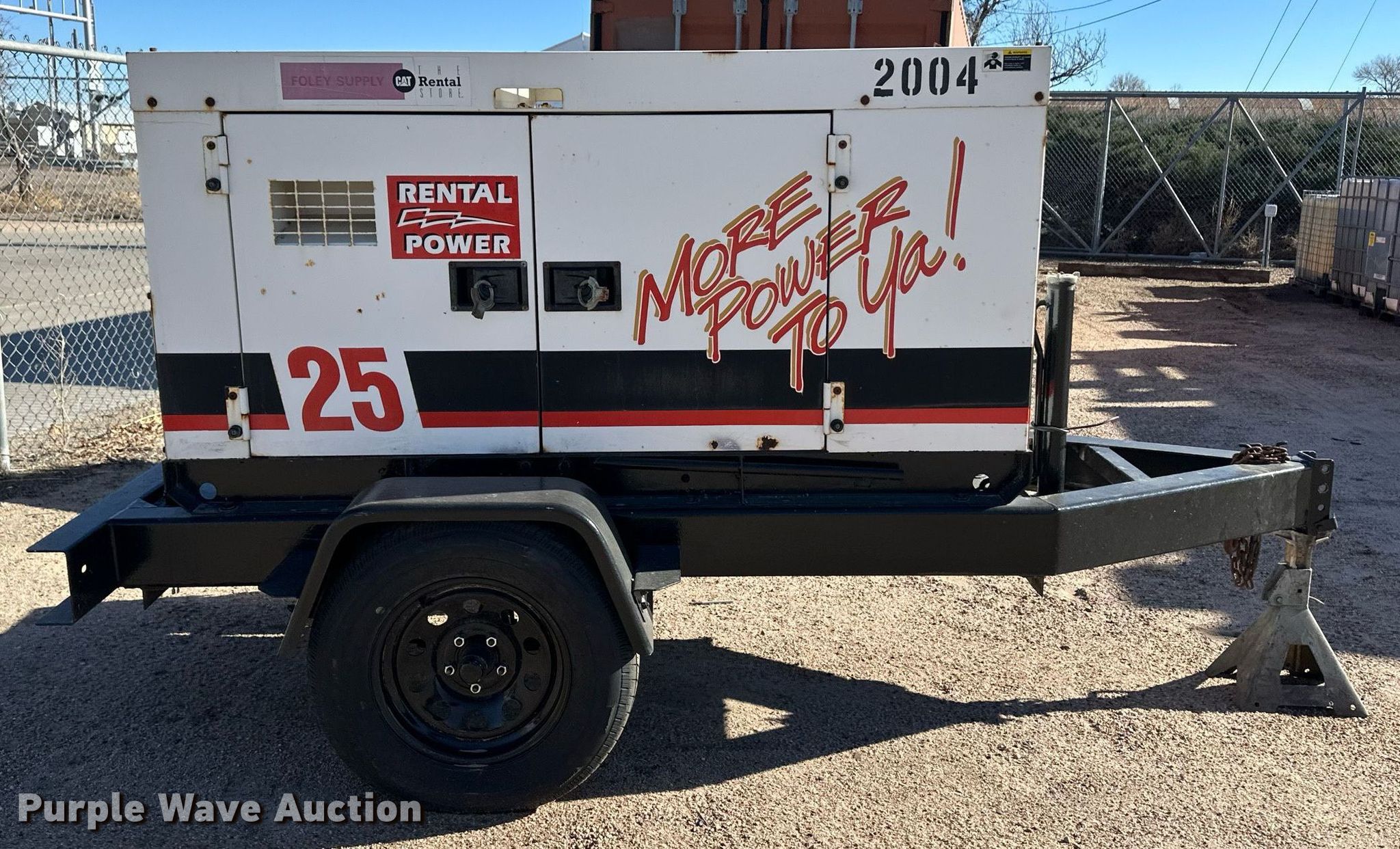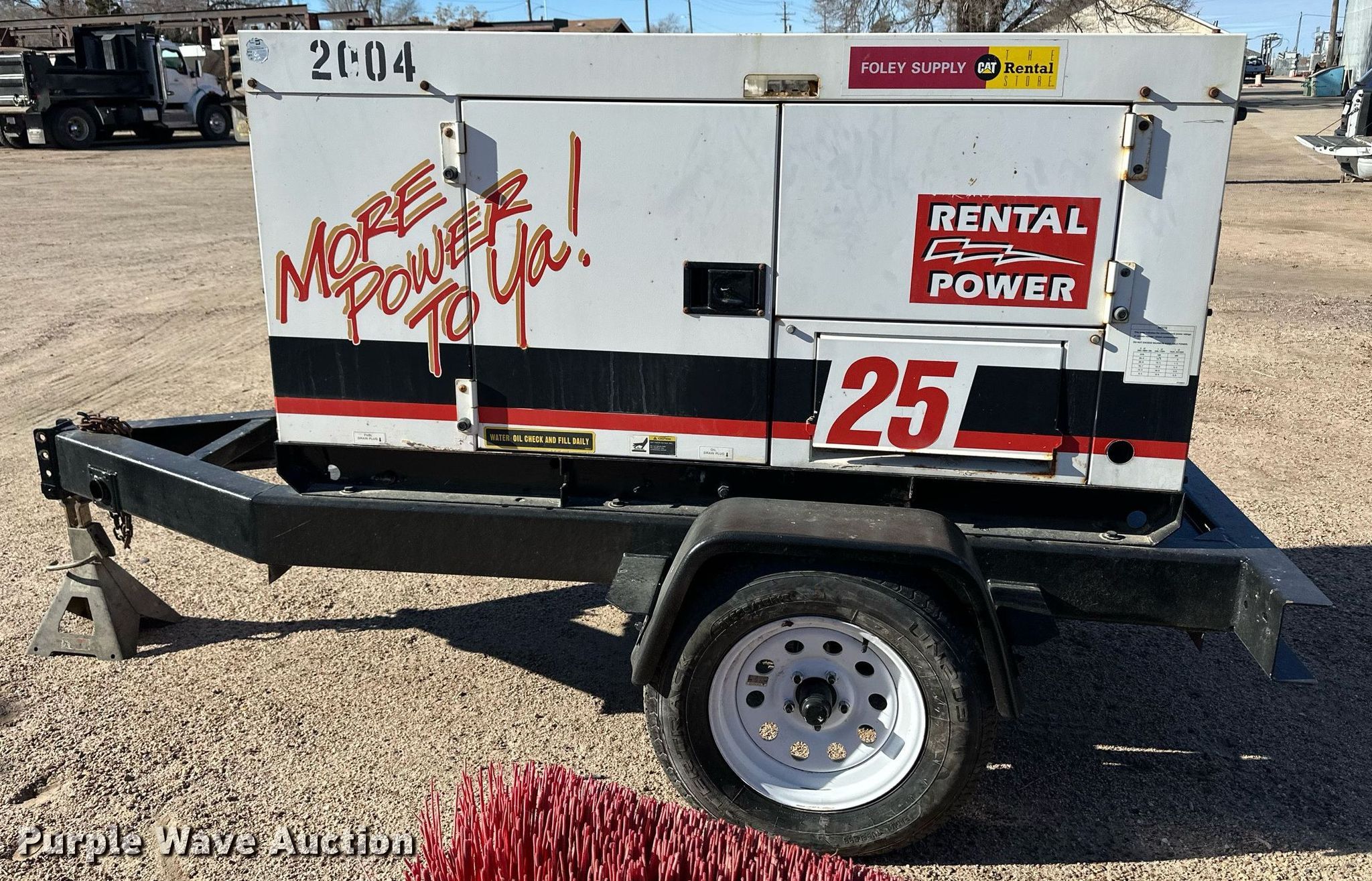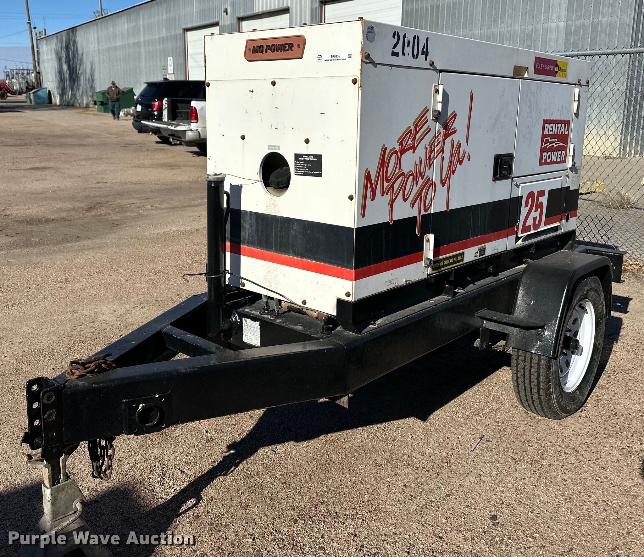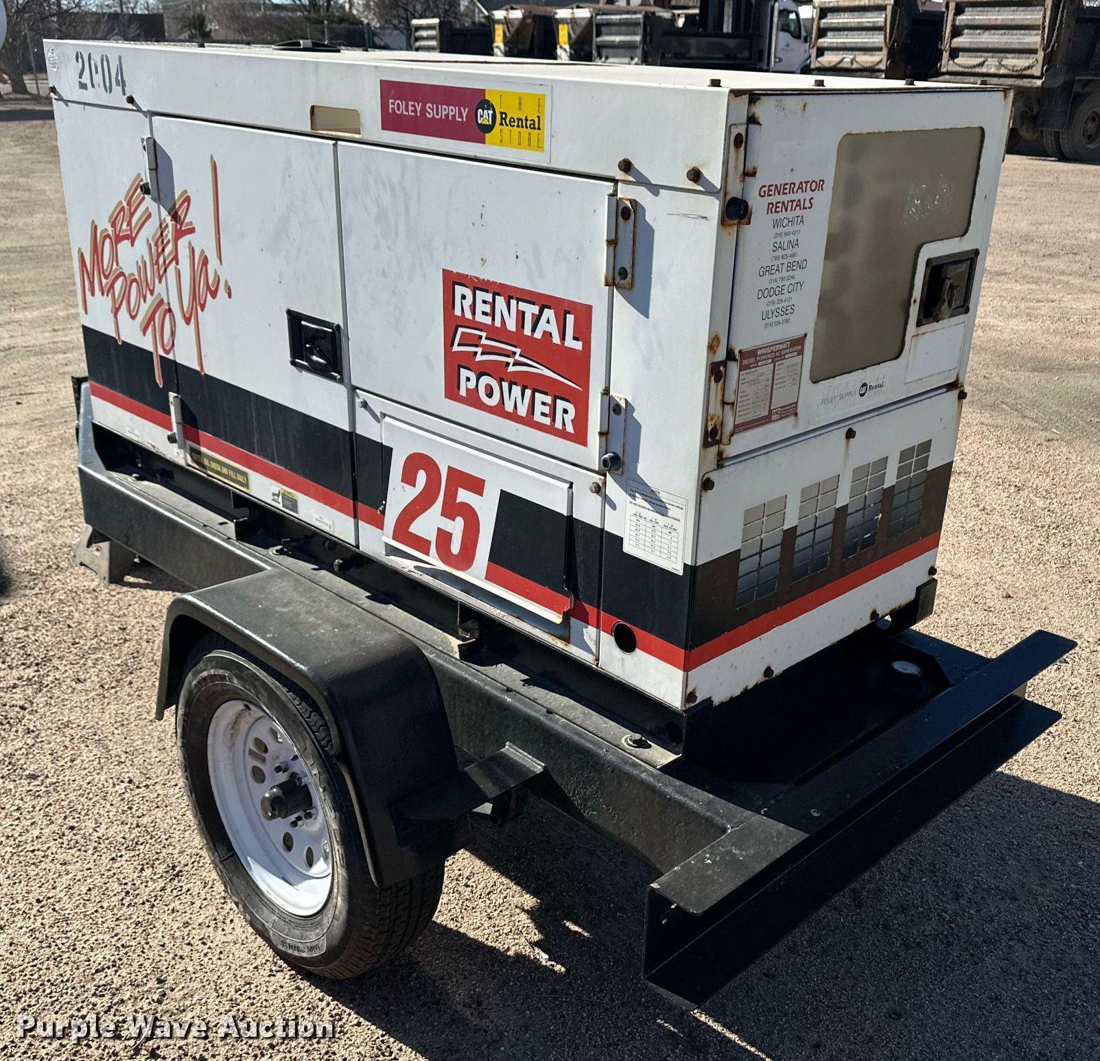 Whisperwatt DCA-25SSIU generator. Hours: 2,029 on meter, Serial: 7102369. Engine Isuzu QD-60 (C240), Displacement: 2,369 cc, Cylinders: 4, Fuel type: Diesel, HP: 30.6. Features Generator Whisperwatt DF-0270I, kVA: 25, kW: 14.4, Phase: Single, Three, Backup start, Electric start, Fuel tank. Trailer 10' L x 54" W, Suspension: Spring, Axles: Single, Tire size: 205/75R15. Notes Dead battery. This is worksite support equipment and will not come with a title. Transfer of ownership documentation will be a bill of sale. Garden City Utilities Department. Garden City, KS 67846