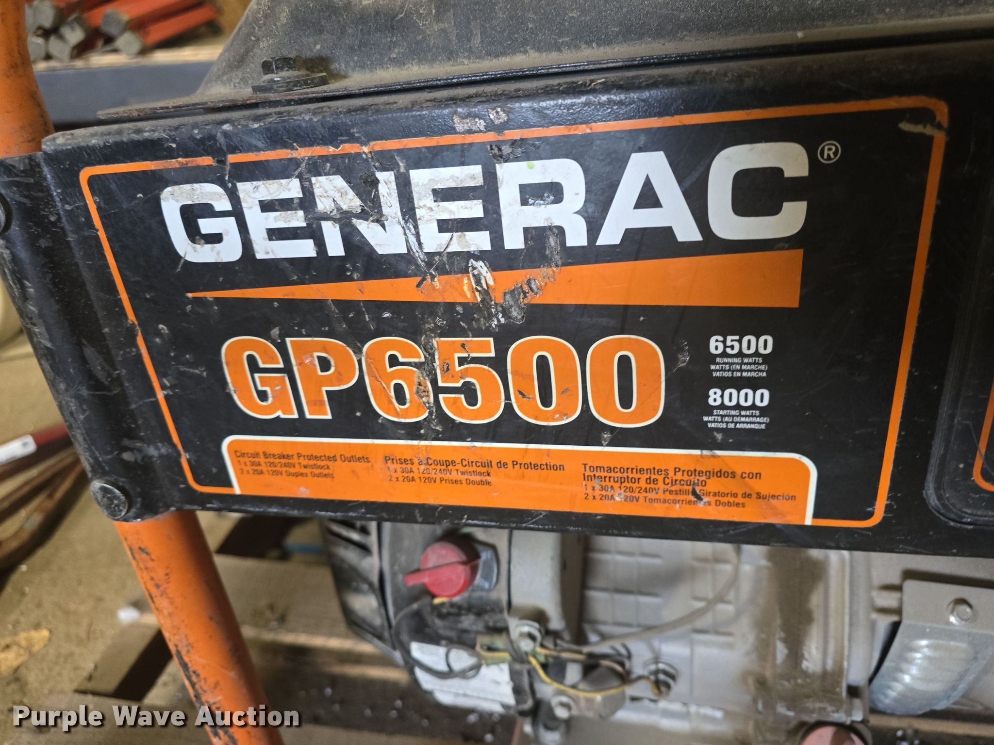 Purple Wave is selling a used Generator Set in Kansas. This item is a Generac GP6500 GEN generator with the following: Hours: Unknown