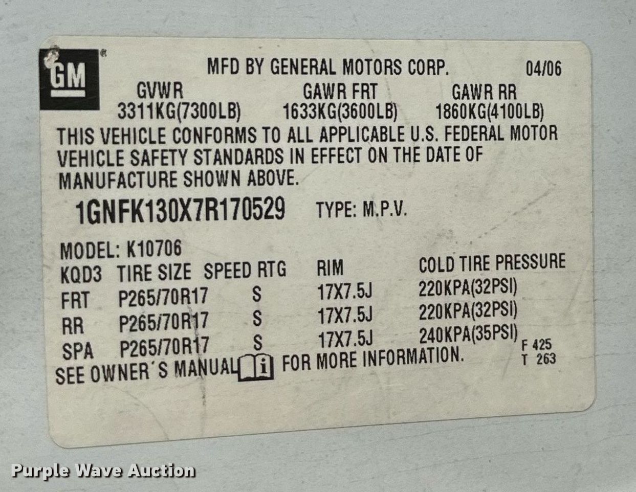 Purple Wave is selling a used Passenger Vehicle in Texas. This item is a 2007 Chevrolet Tahoe SUV with the following: Miles: 200,769 on odometer, VIN: 1GNFK130X7R170529