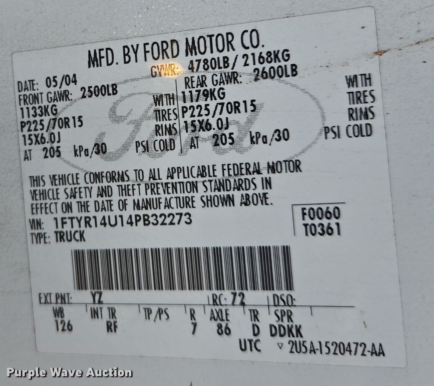 • VIN: 1FTYR14U14PB32273