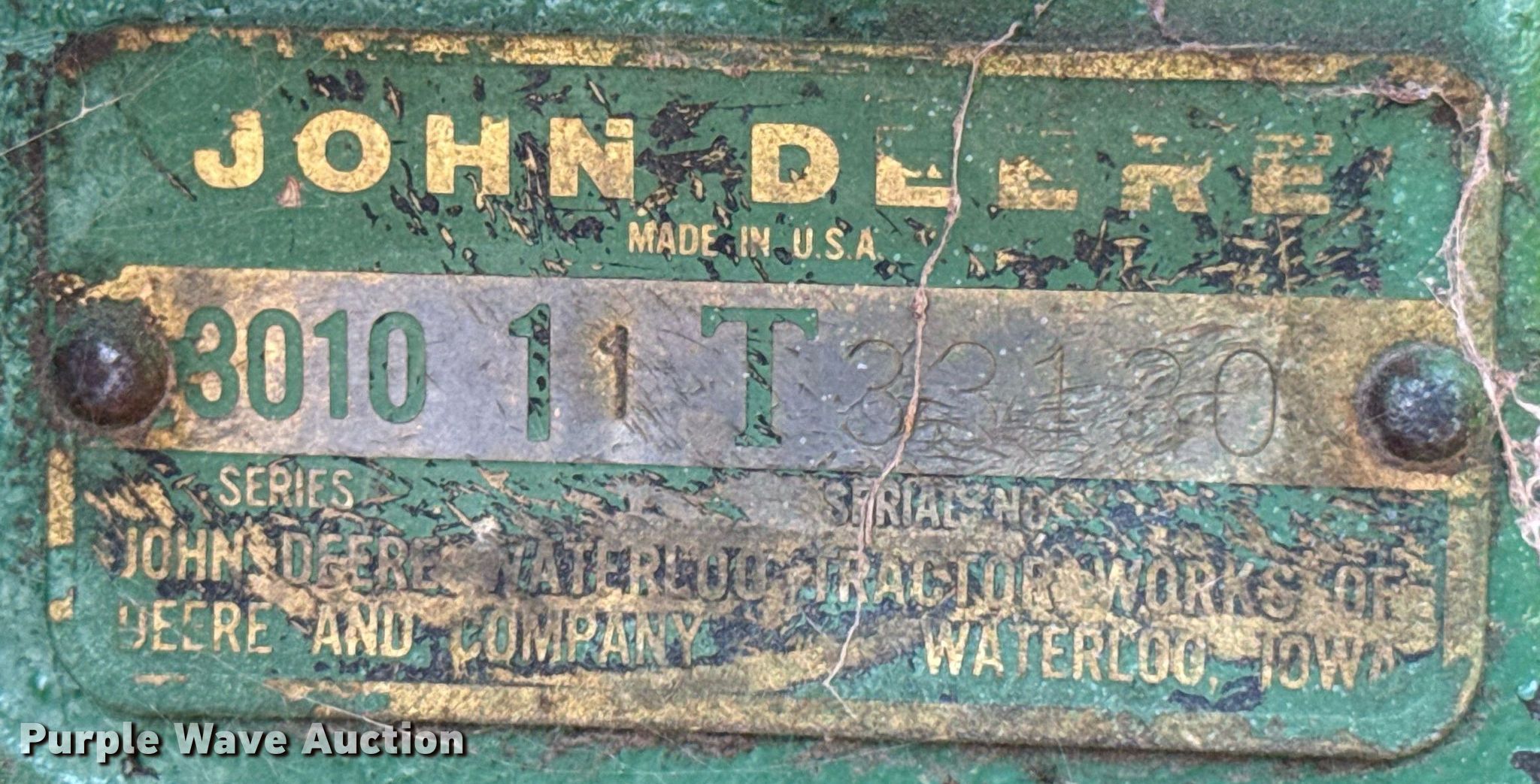 Purple Wave is selling a used Tractor in Missouri. This item is a 1963 John Deere 3010 tractor with the following: Hours: 6,479 on meter, Serial: 11T33130