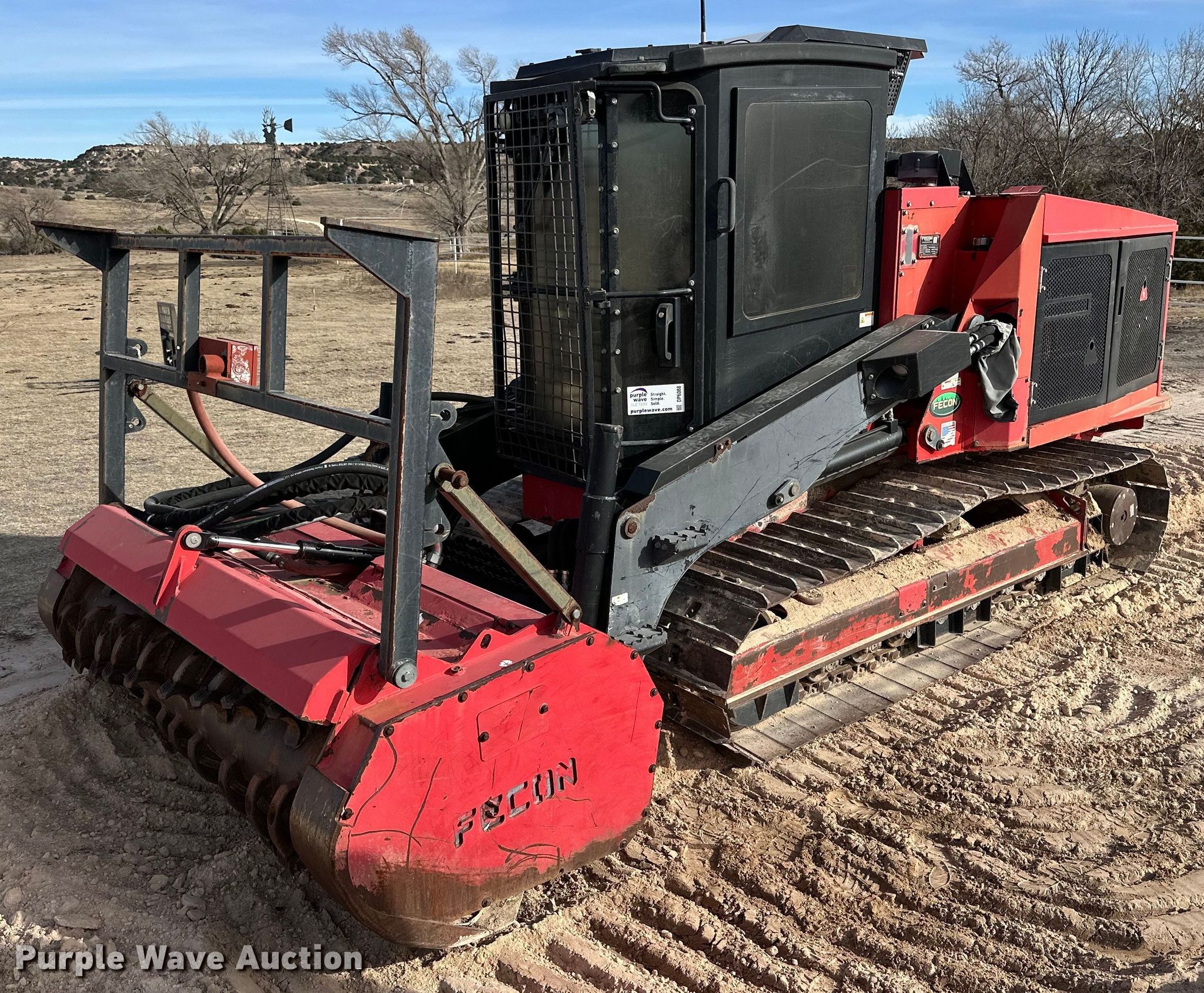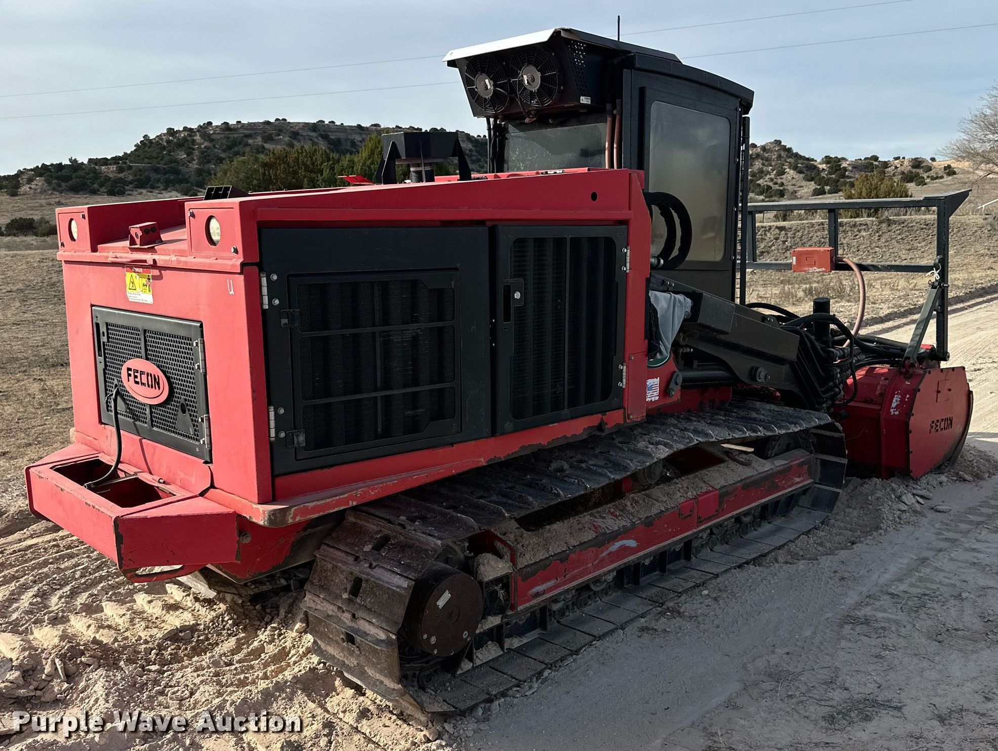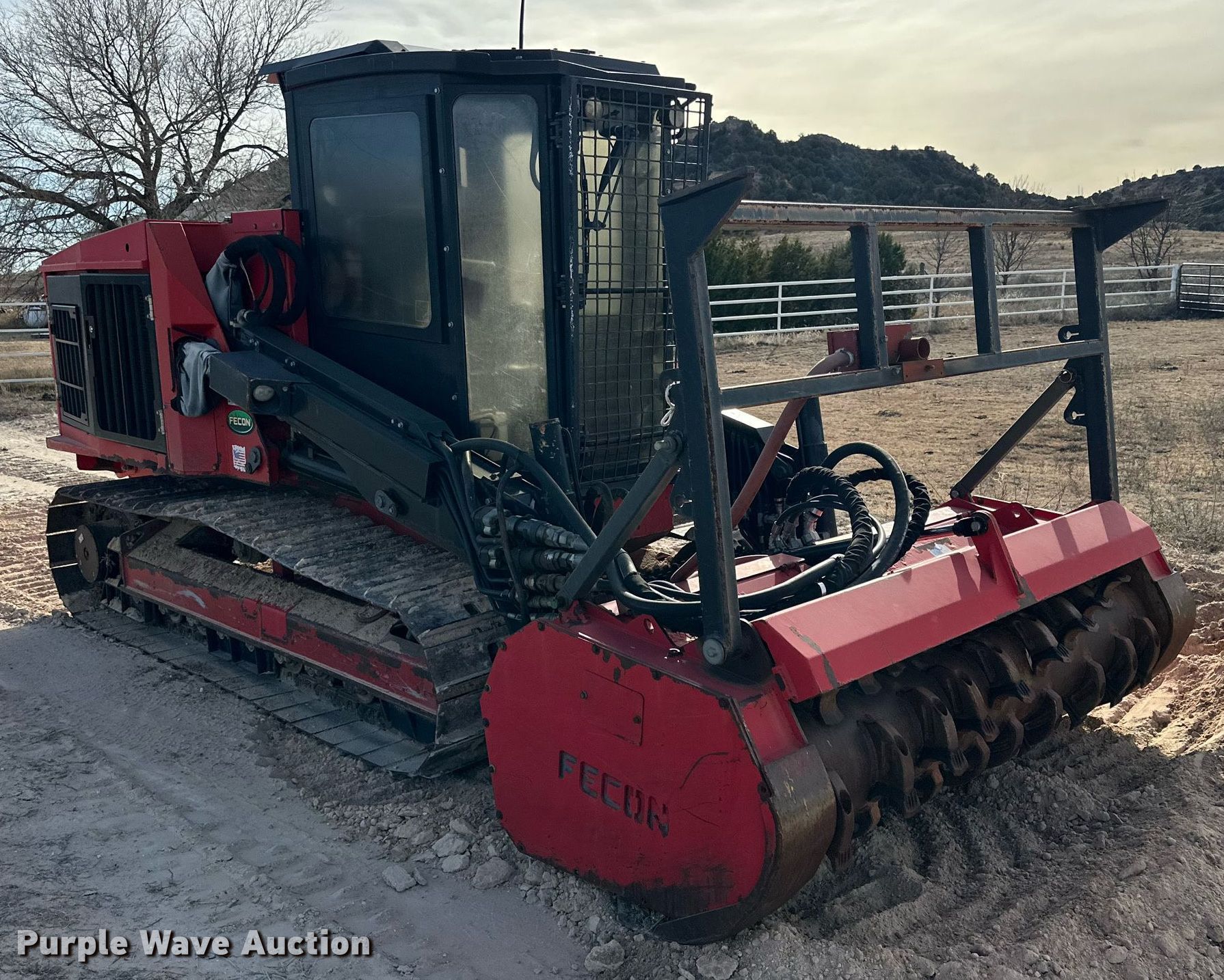 2014 Fecon FTX-128 mulcher. Engine hours: 1,047 on meter, Serial: 0FTX128010105. Engine Cummins, Cylinders: 4, Fuel type: Diesel. Transmission Hydrostatic. Operators station Enclosed cab, AC, Heat. Features Mulcher Fecon, Width: 72". Tracks Width: 20", Steel. Pat Trammell Ranch. Perryton, TX 79070