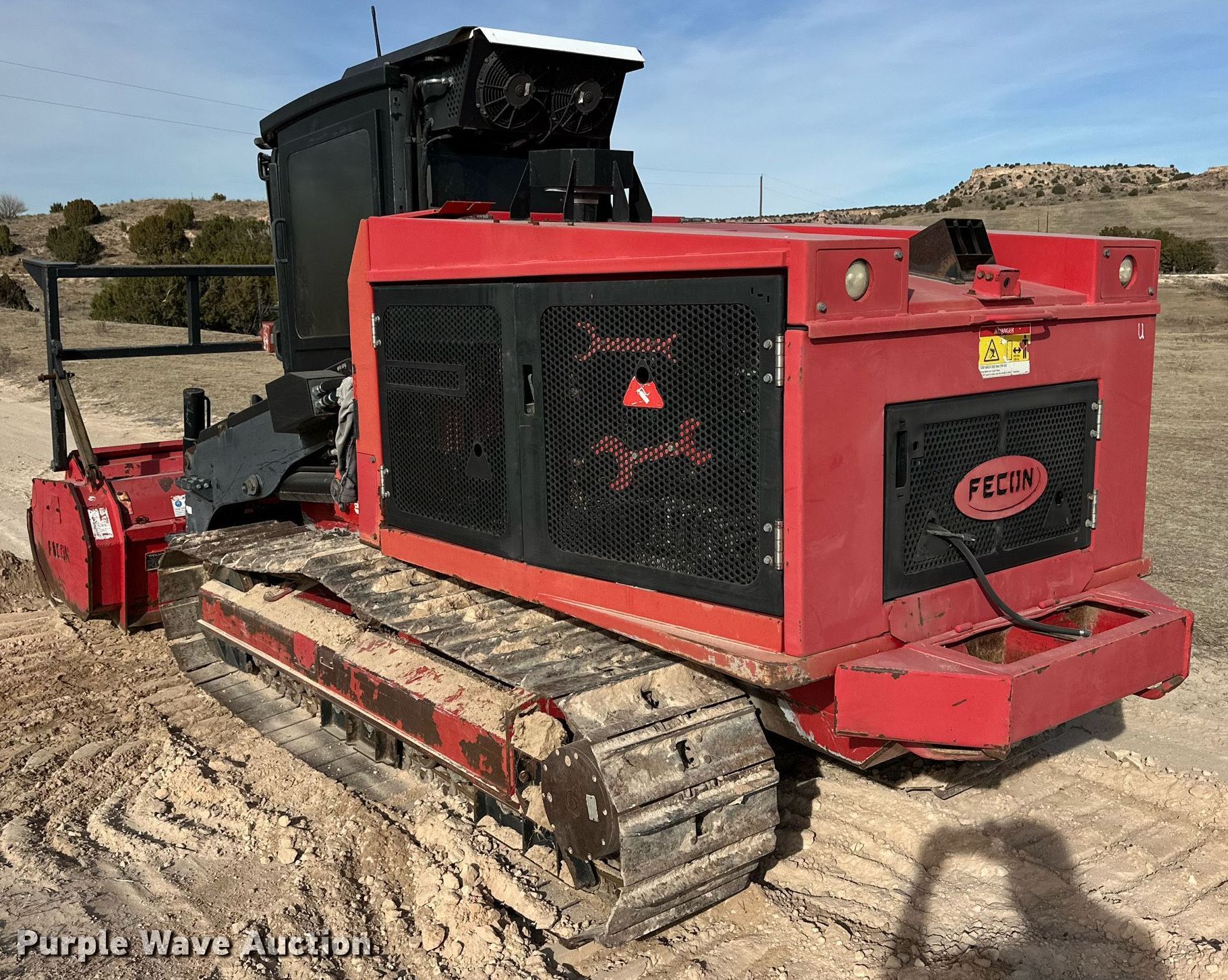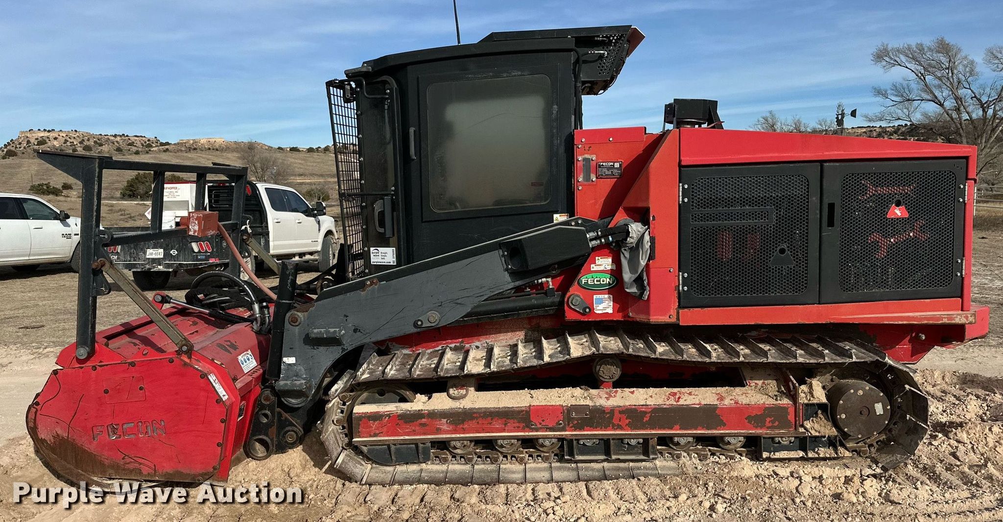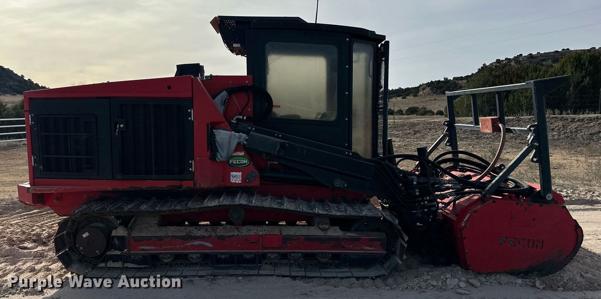 2014 Fecon FTX-128 mulcher. Engine hours: 1,047 on meter, Serial: 0FTX128010105. Engine Cummins, Cylinders: 4, Fuel type: Diesel. Transmission Hydrostatic. Operators station Enclosed cab, AC, Heat. Features Mulcher Fecon, Width: 72". Tracks Width: 20", Steel. Pat Trammell Ranch. Perryton, TX 79070