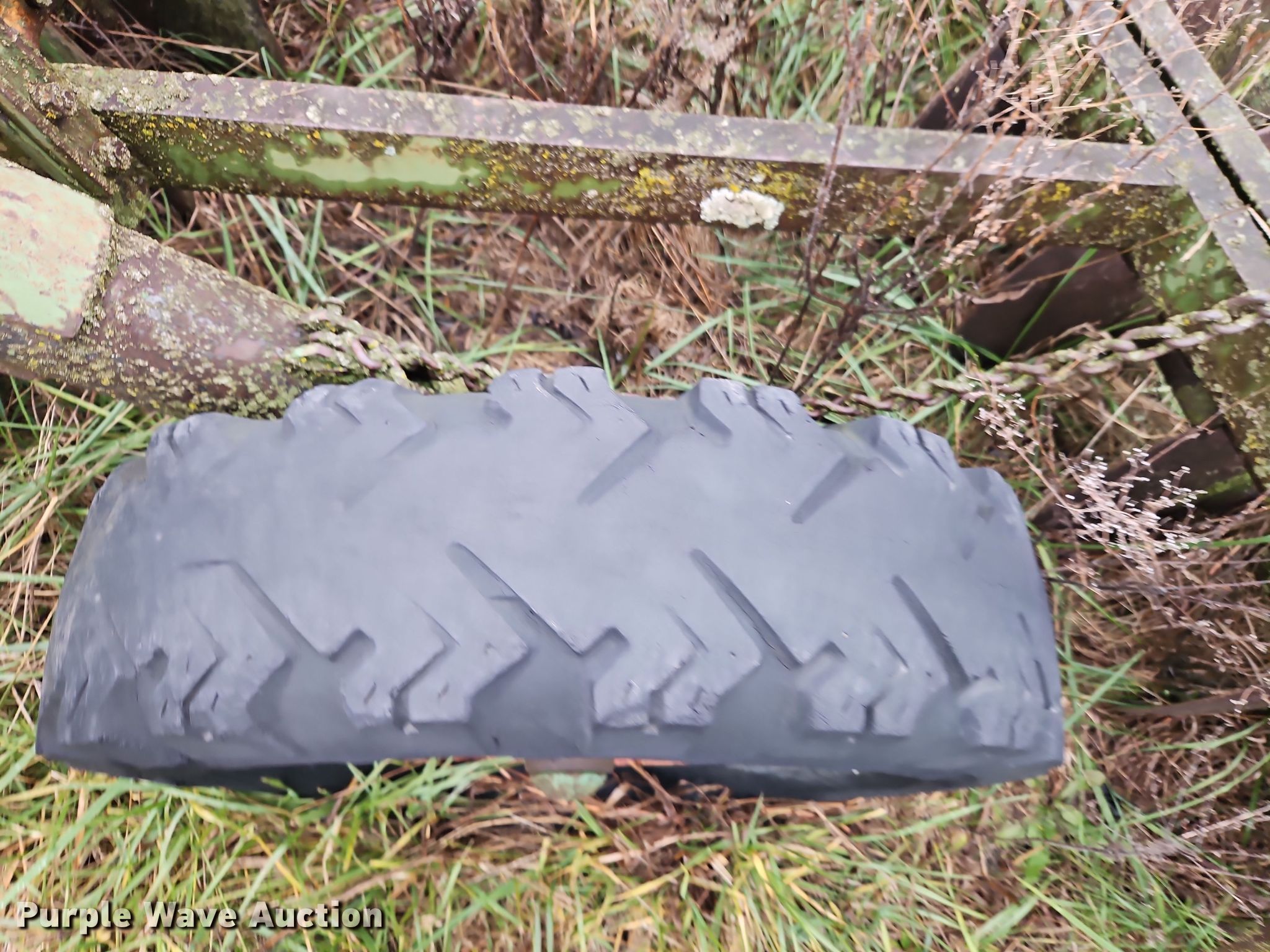 Double off-set disk. Overall width: 10'. Features Front blades Diameter: 20", Spacing: 9", Rear blades Diameter: 20", Spacing: 9", Disk scrapers, Operation Hydraulic lift. Tires Tire size: 7.50-16. Frankie Noel Construction. LaCygne, KS 66040