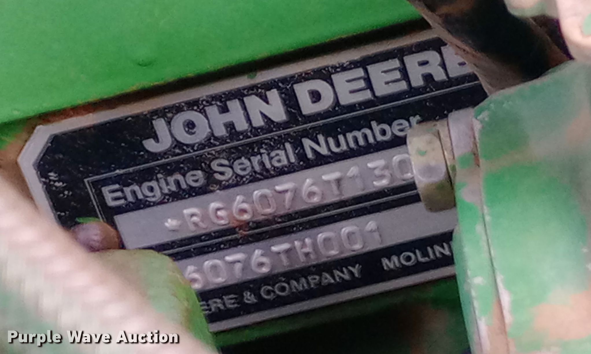 1990 John Deere 9500 combine. Engine hours: 2,676 on meter, Separator hours: 4,861 on meter, Serial: H09500X637154. Engine John Deere 6076TH001, Serial: RG6076T130024, Displacement: 7.6L, Cylinders: 6, Fuel type: Diesel. Transmission Hydrostatic. Operators station AC, Heat. Features Feederhouse: Reverser, Multi-speed, Straw chopper, Unloading auger length: 16' 6". Tires Front: 30.5-32, Rear: 14.9-24. Notes Feederhouse damaged, Front tire damaged Will not hold air. Oklahoma Farm Bureau. Alva, OK 73717